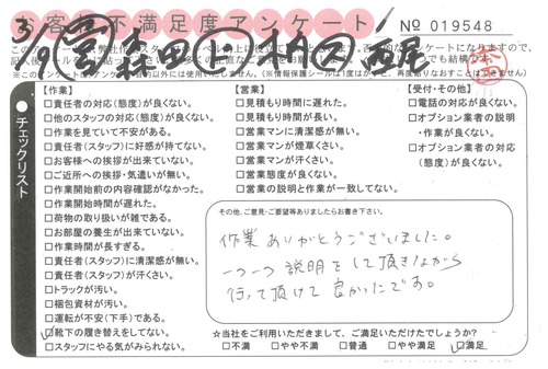 3/9 引越 営業:森田 ドライバー:伊能 スタッフ:小林・小峯