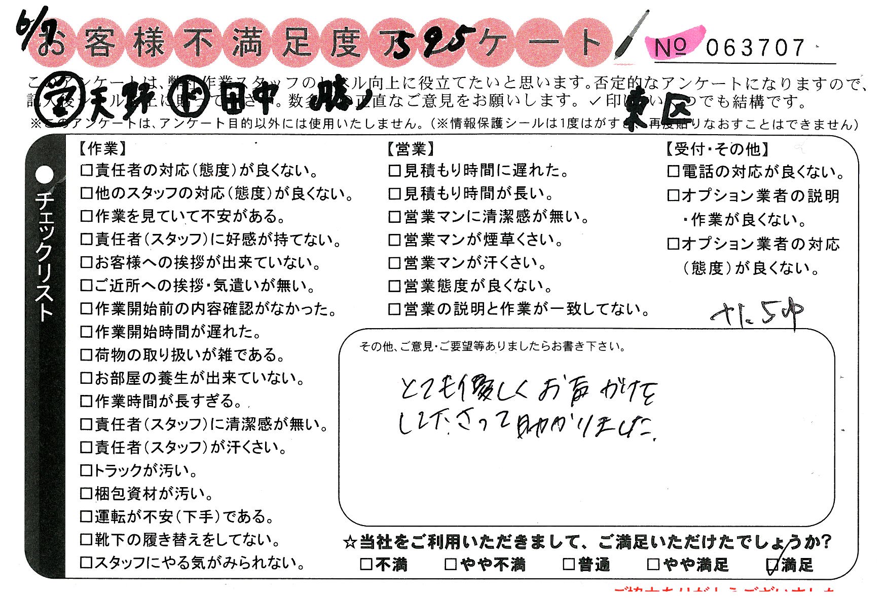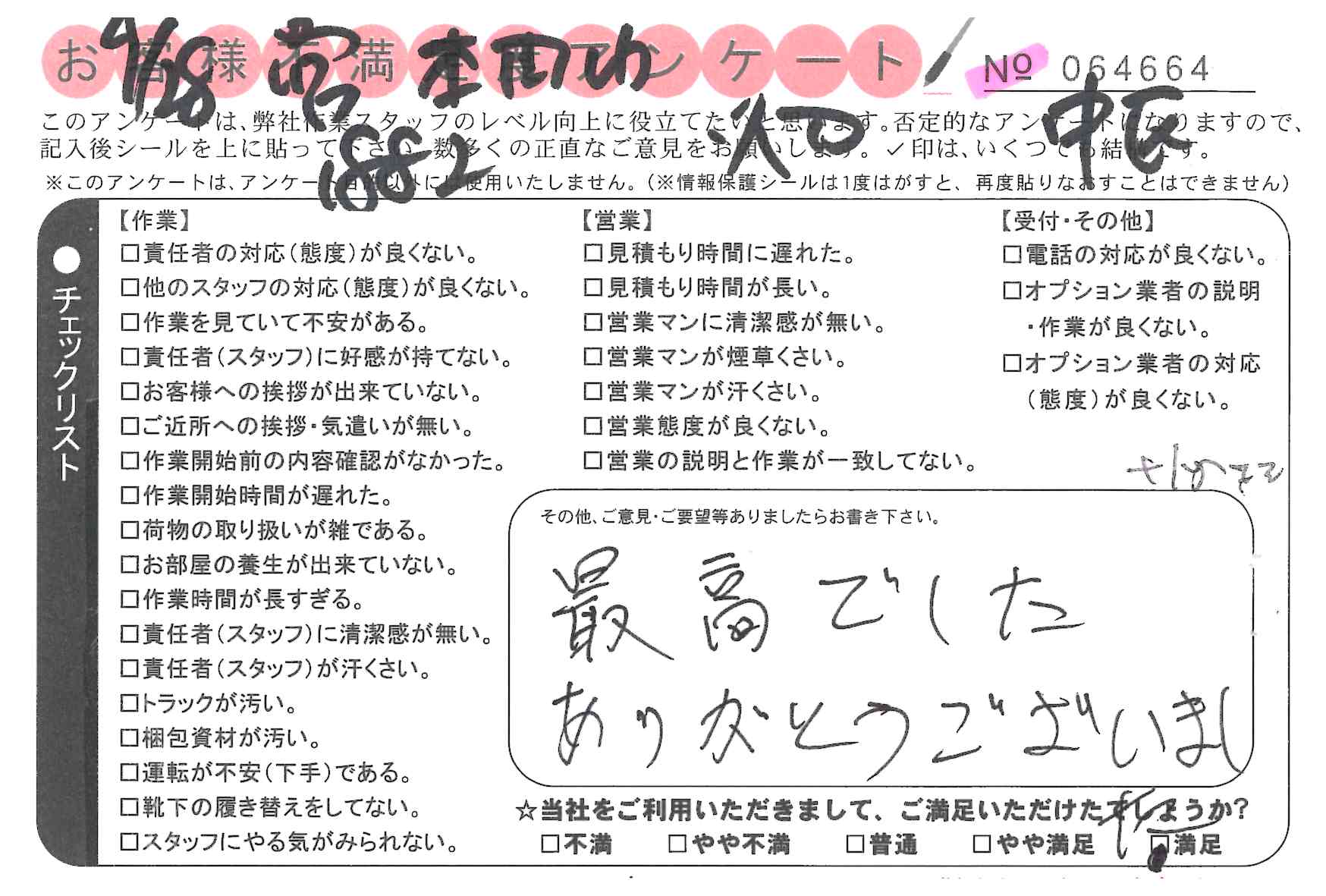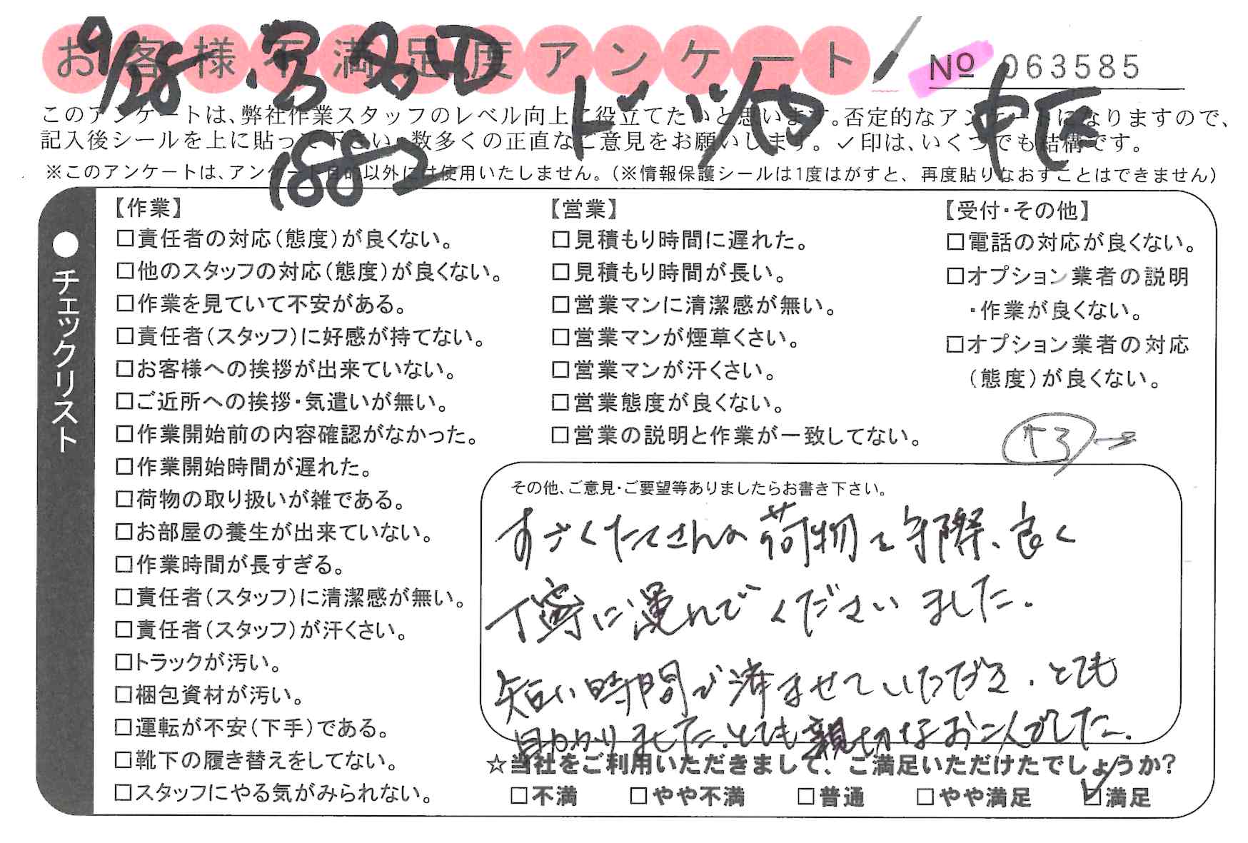 引越一番でお引越しをしていただいたお客様のうち、コメントいただいたアンケートを全て掲載しています。