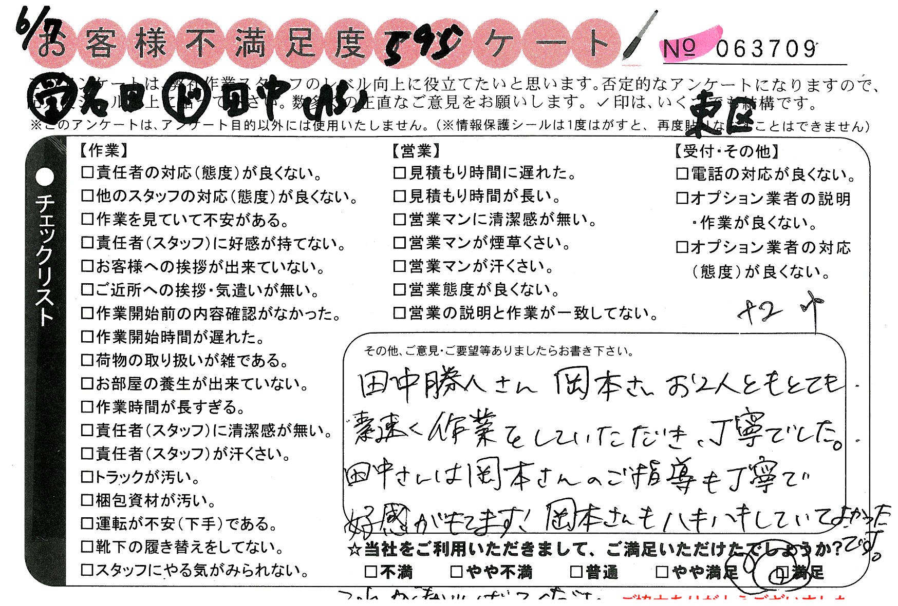 作業していただき、丁寧でした。田中さんは岡本さんの