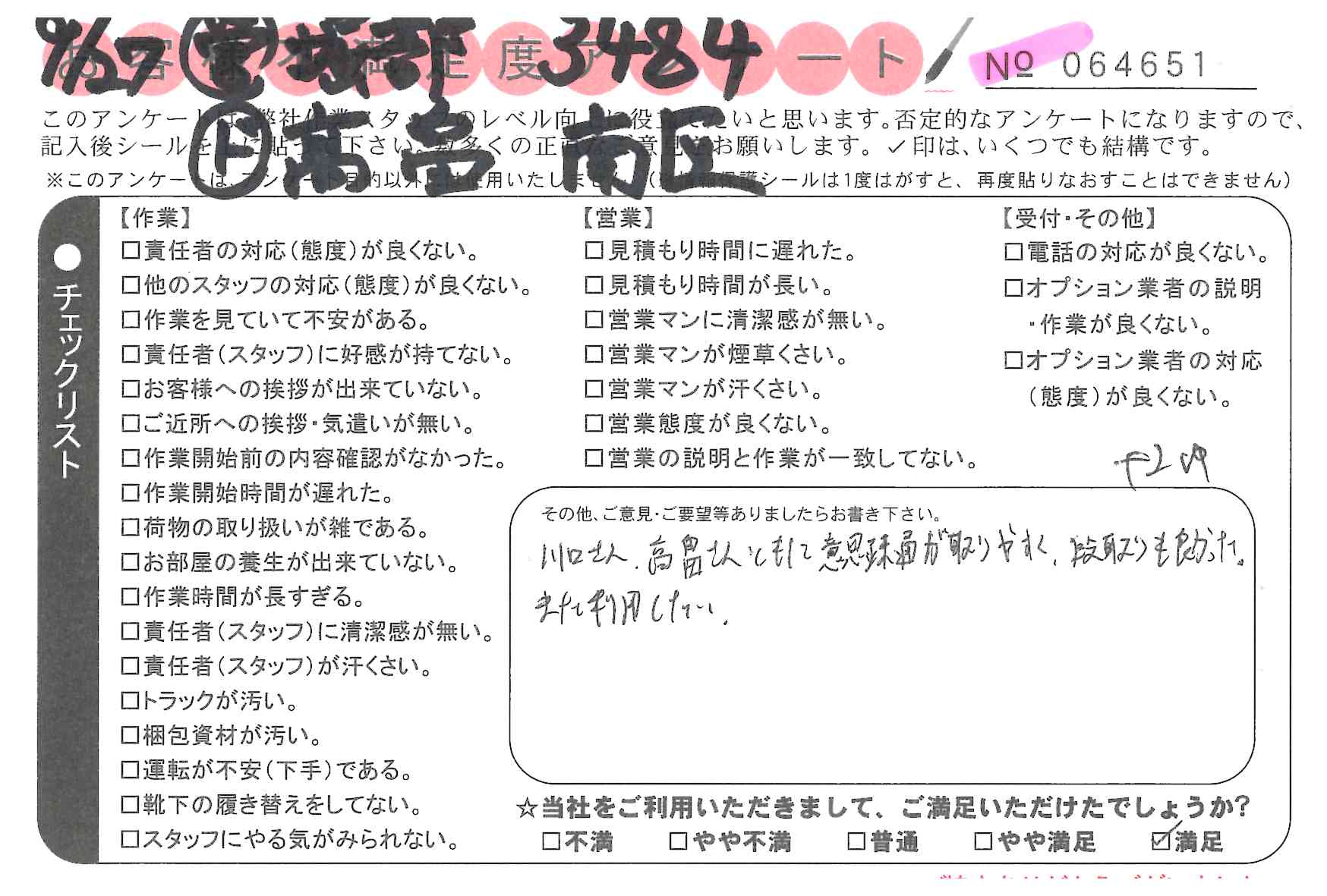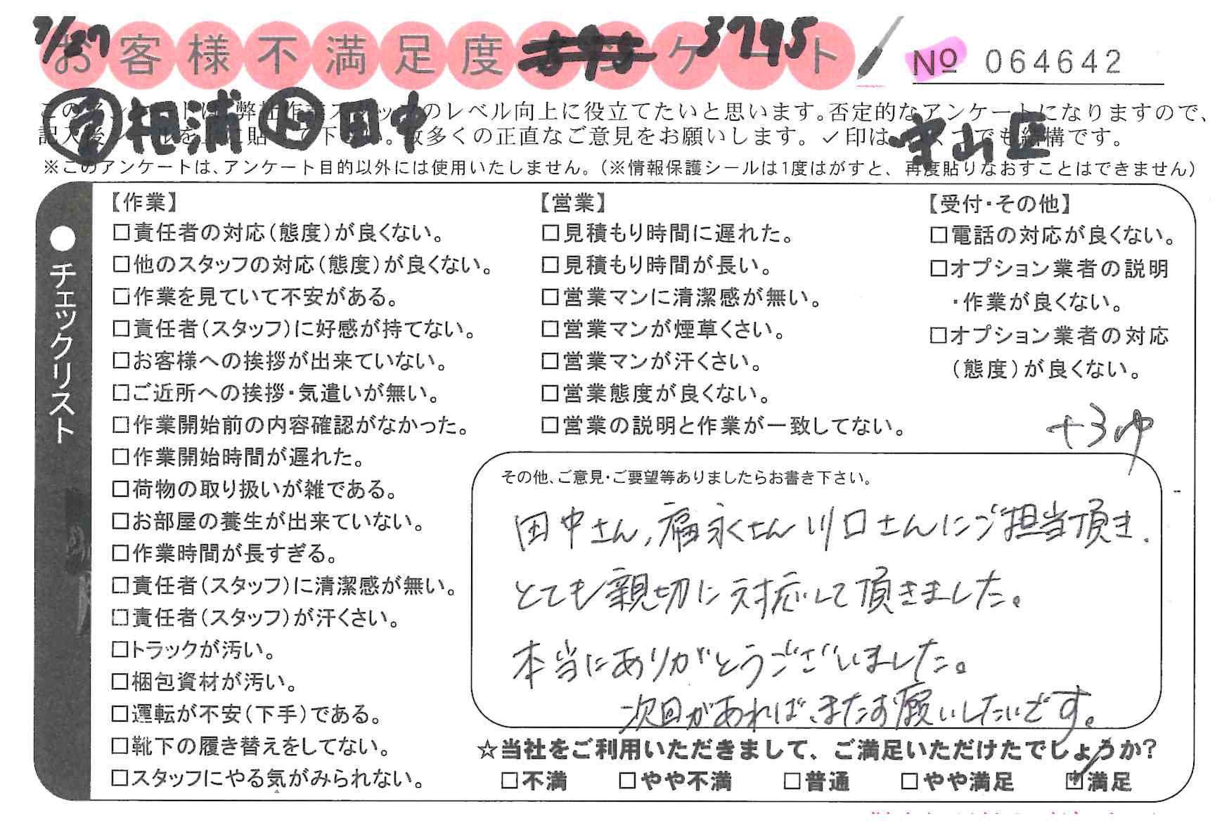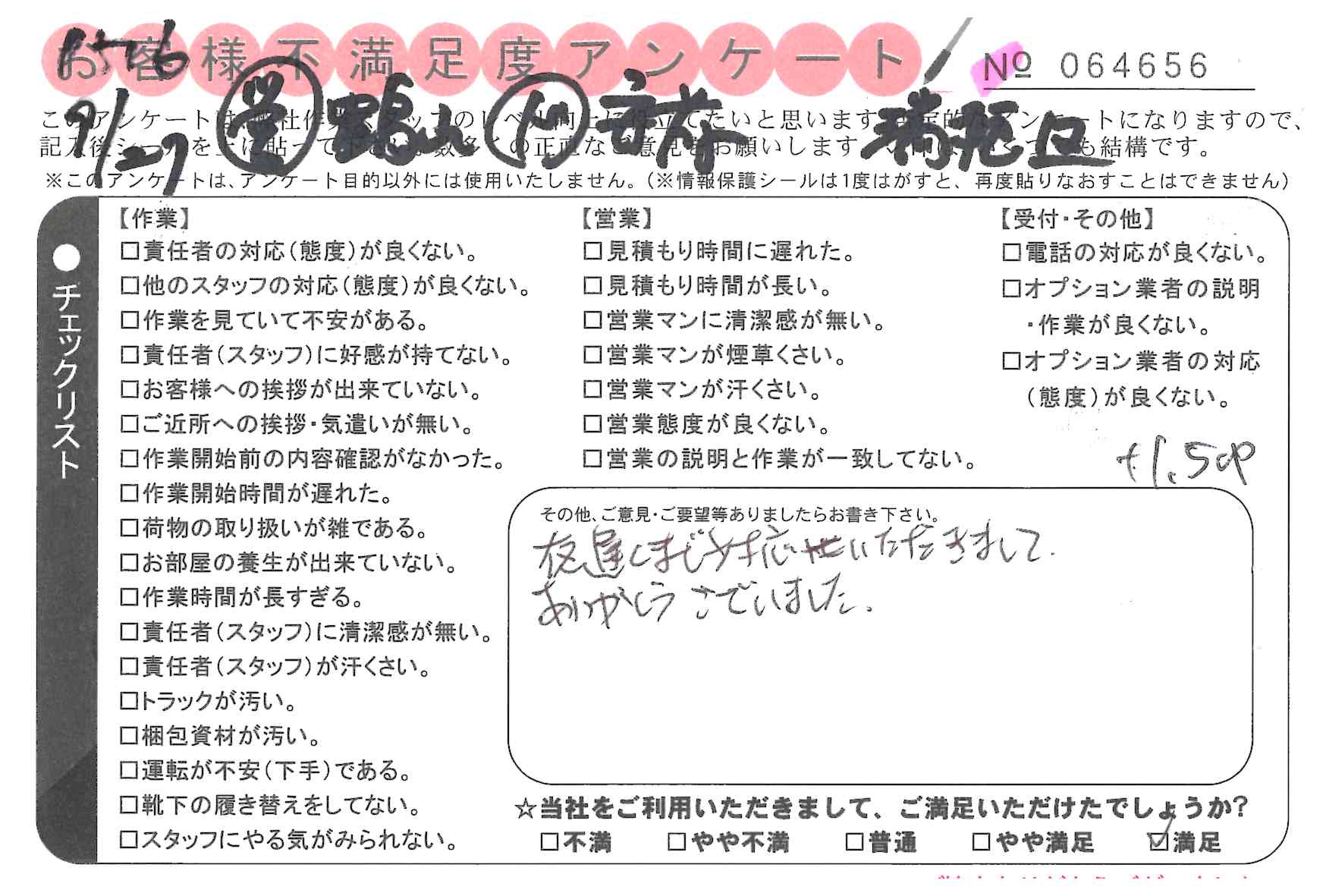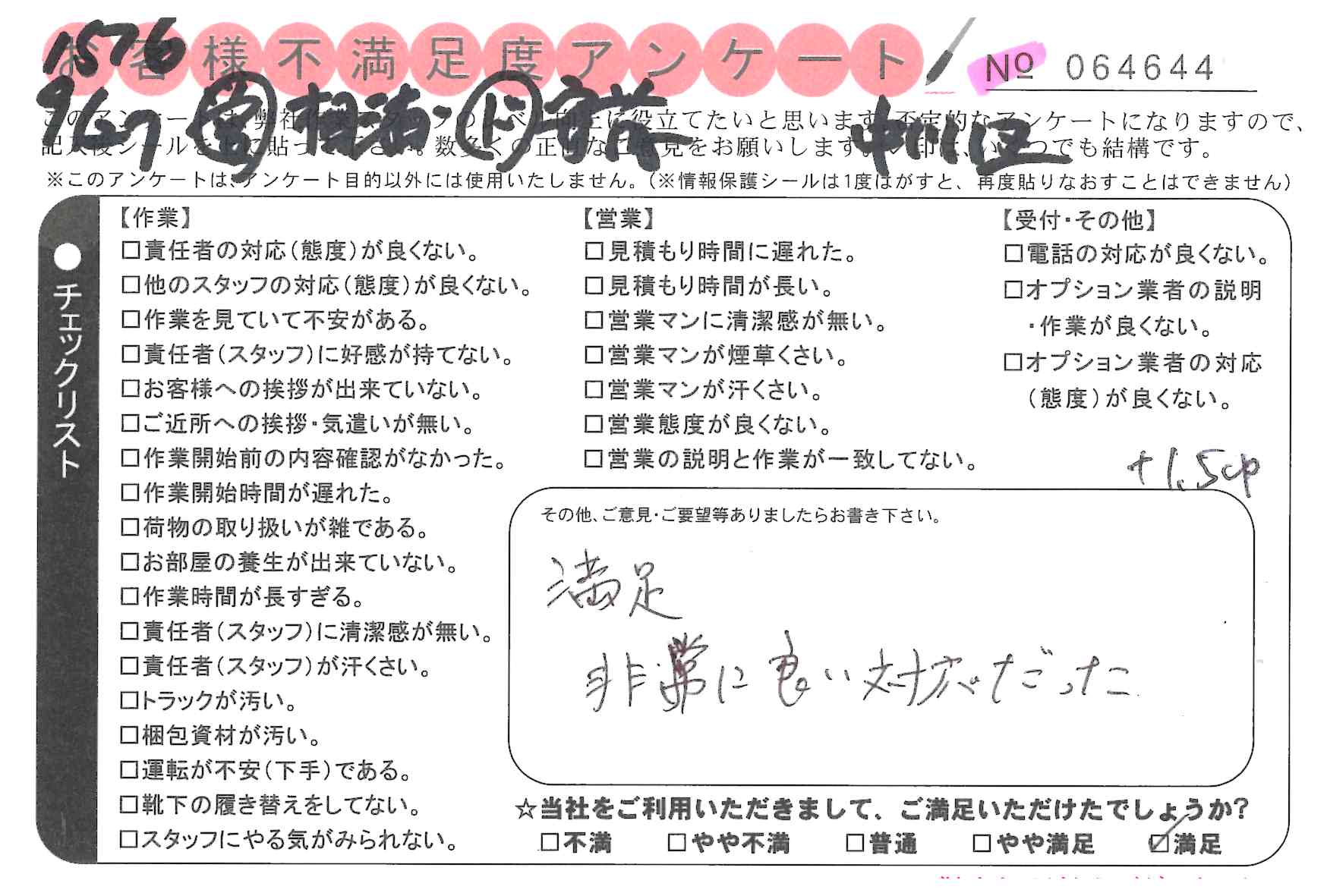 * 満足 非常に良い対応だった