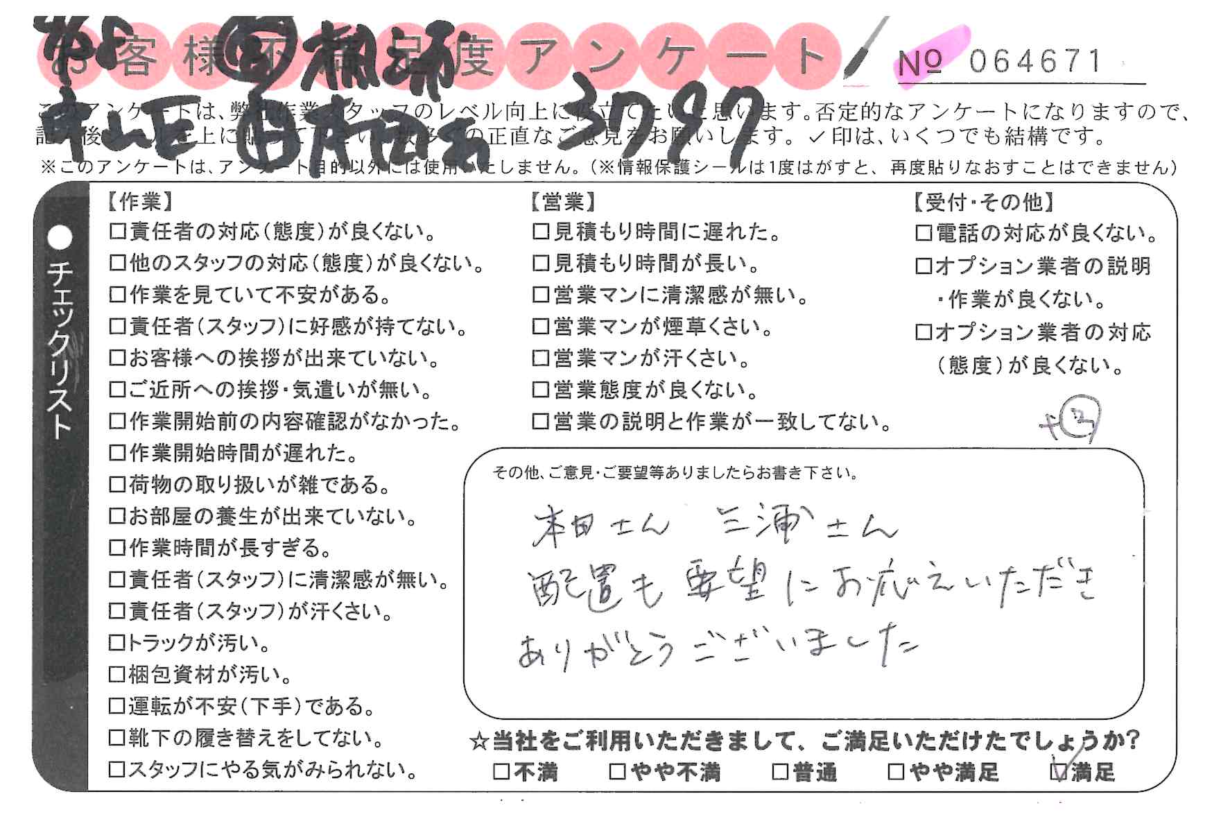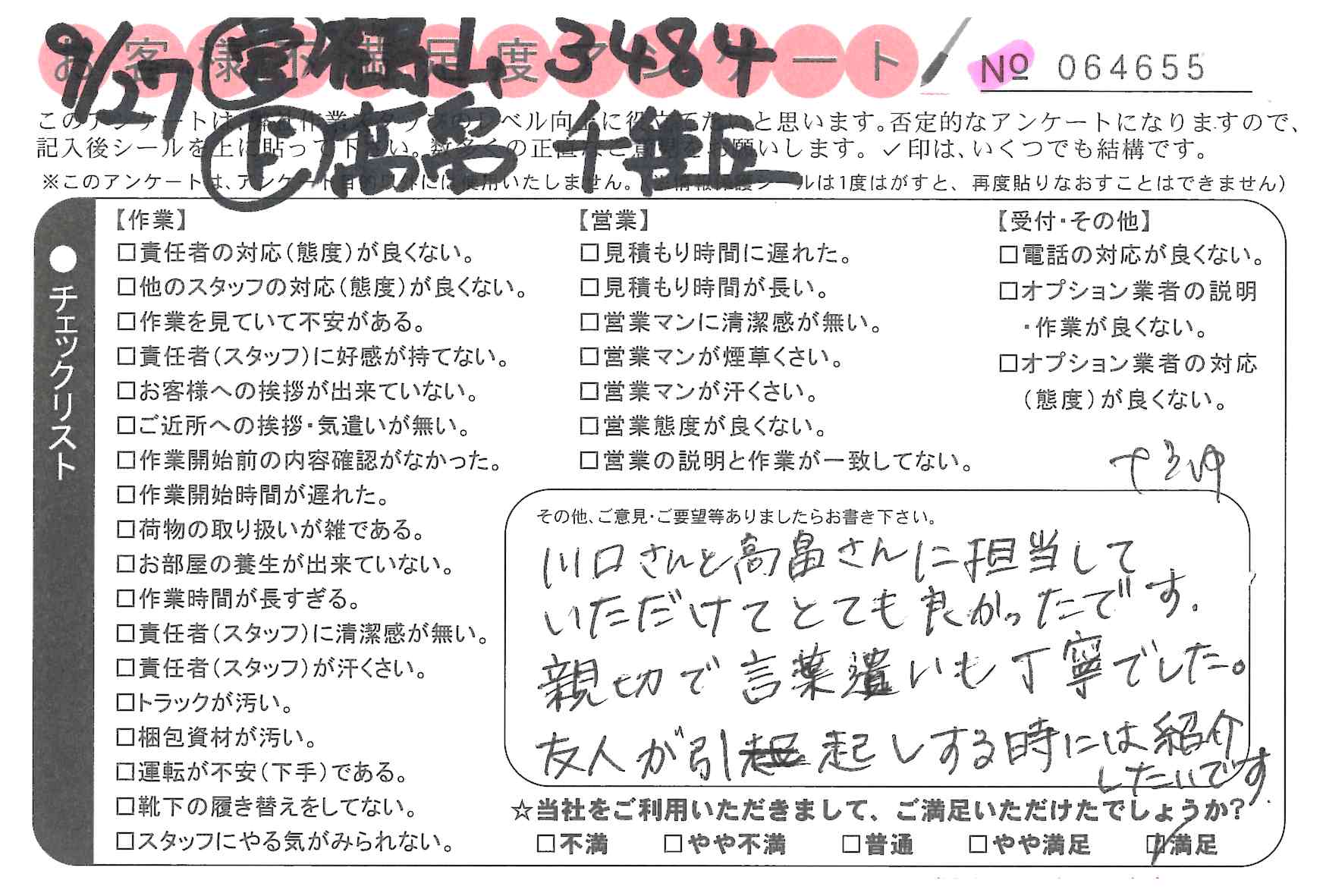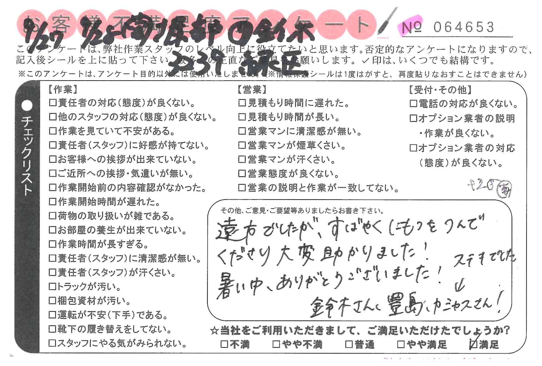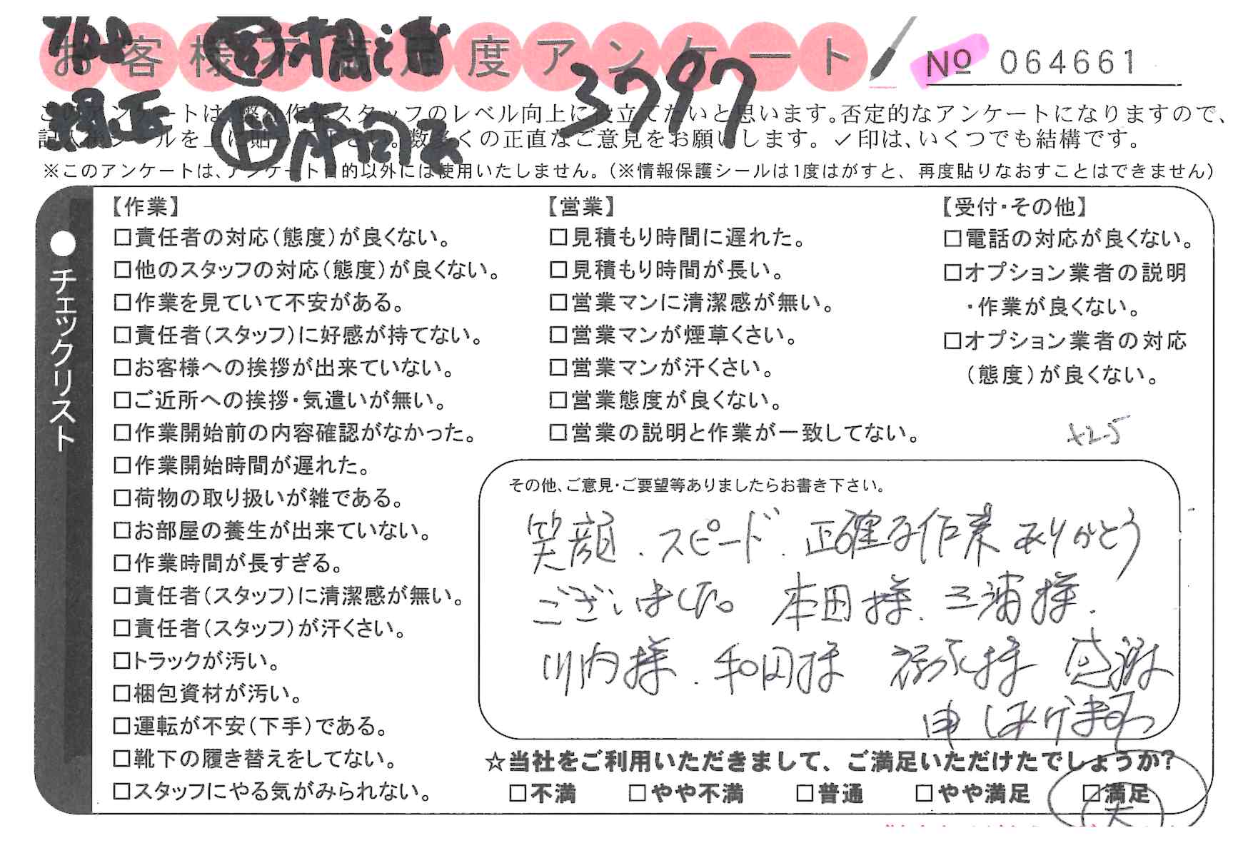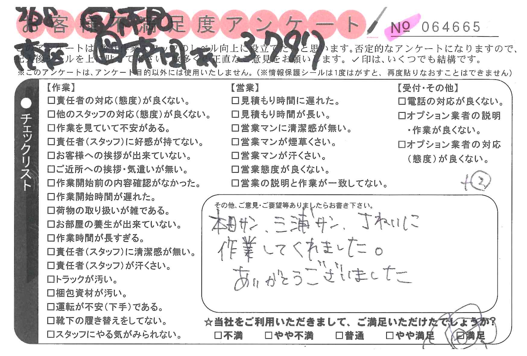 * 笑顔、スピード、正確な作業ありがとうございました。