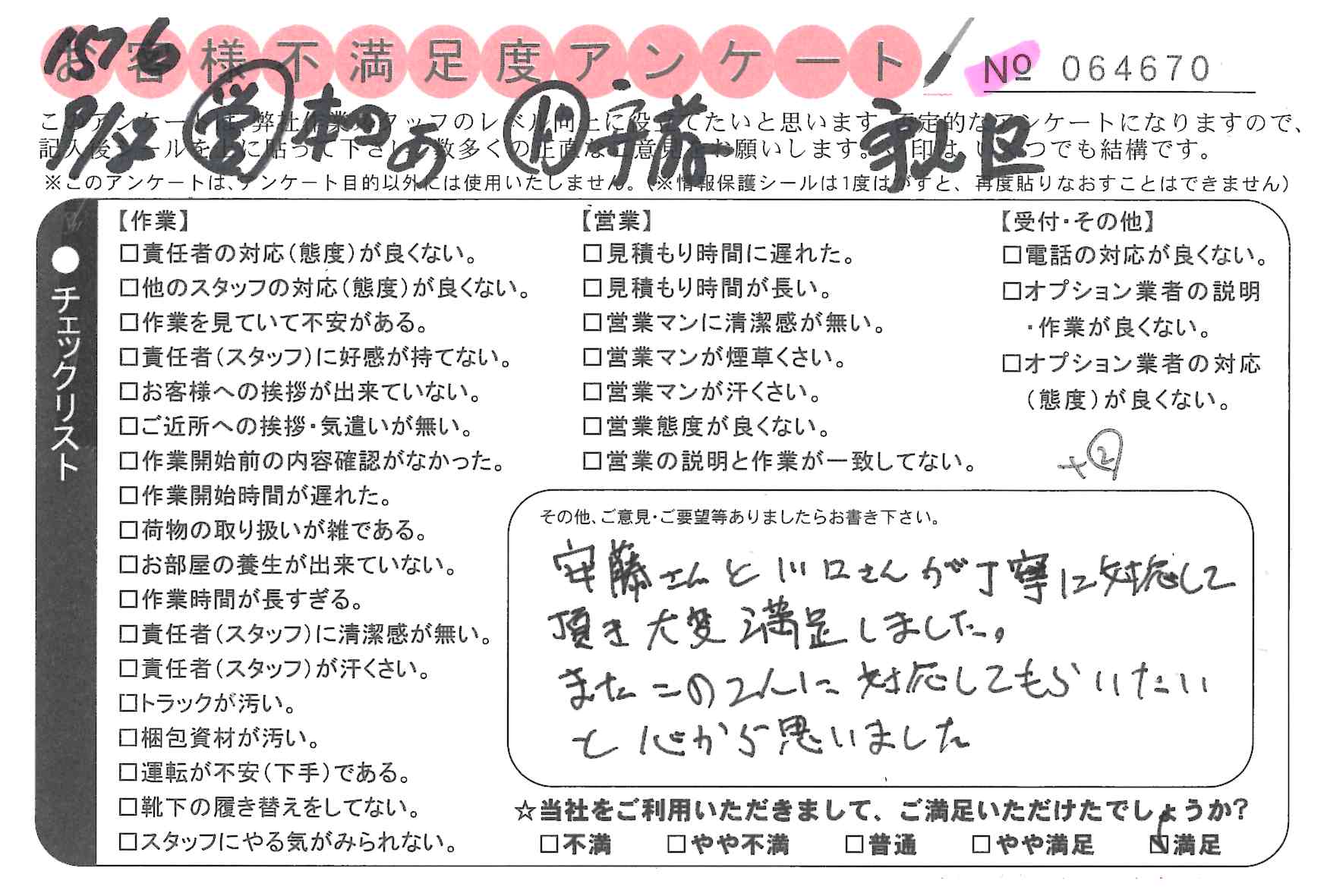 大変満足しました。またこの2人に対応