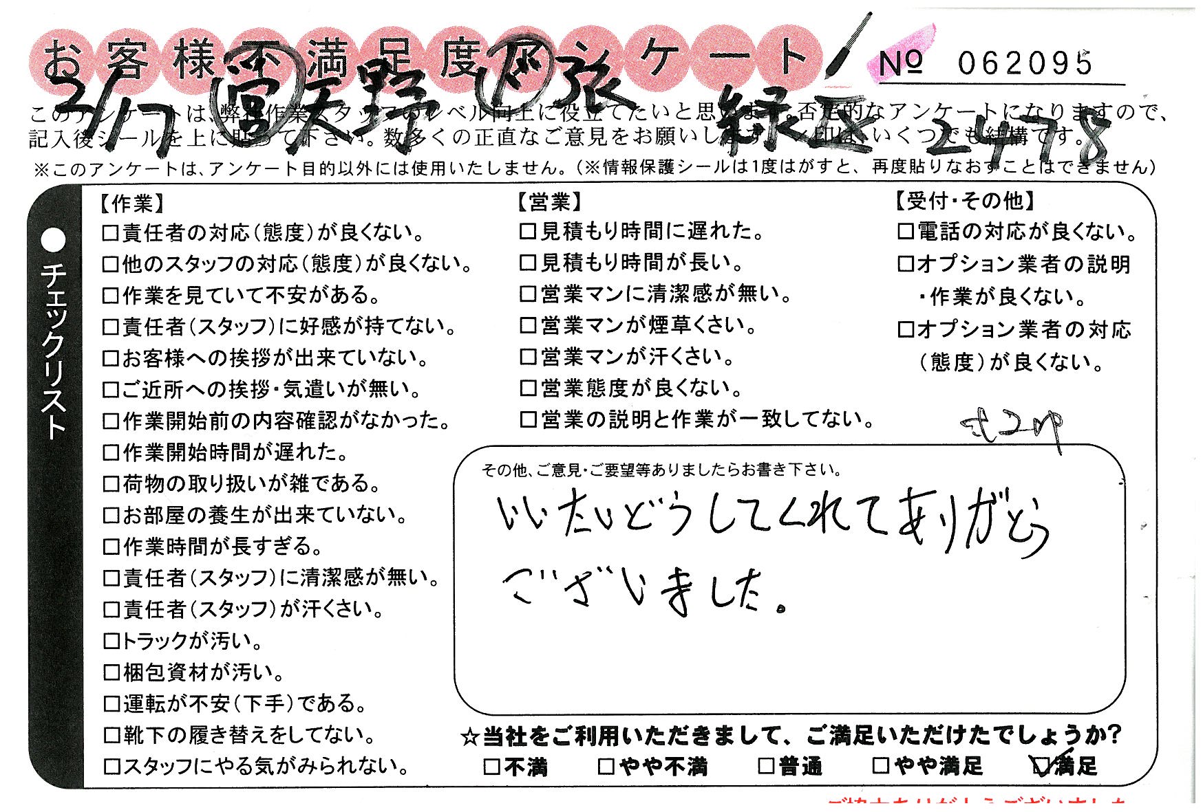 引越一番でお引越しをしていただいたお客様のうち、コメントいただいたアンケートを全て掲載しています。