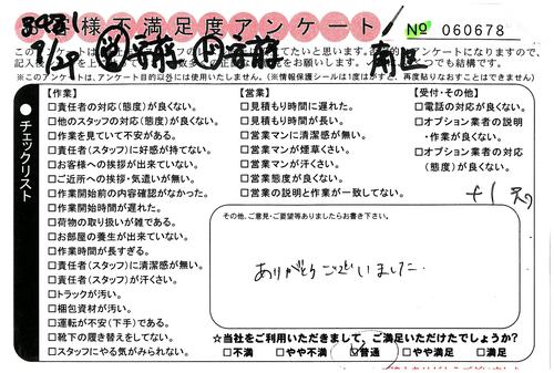 引越一番でお引越しをしていただいたお客様のうち、コメントいただいたアンケートを全て掲載しています。