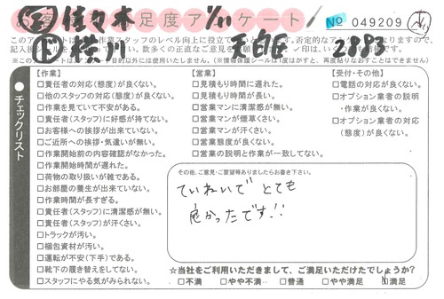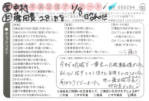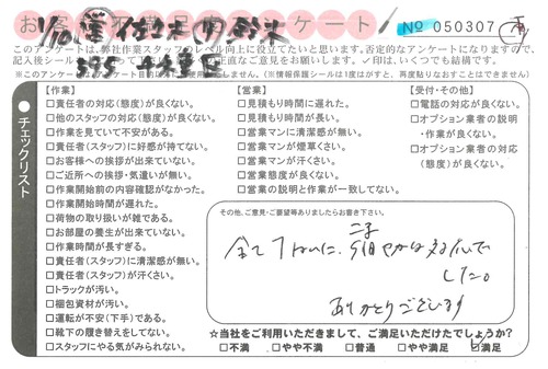 引越一番でお引越しをしていただいたお客様のうち、コメントいただいたアンケートを全て掲載しています。