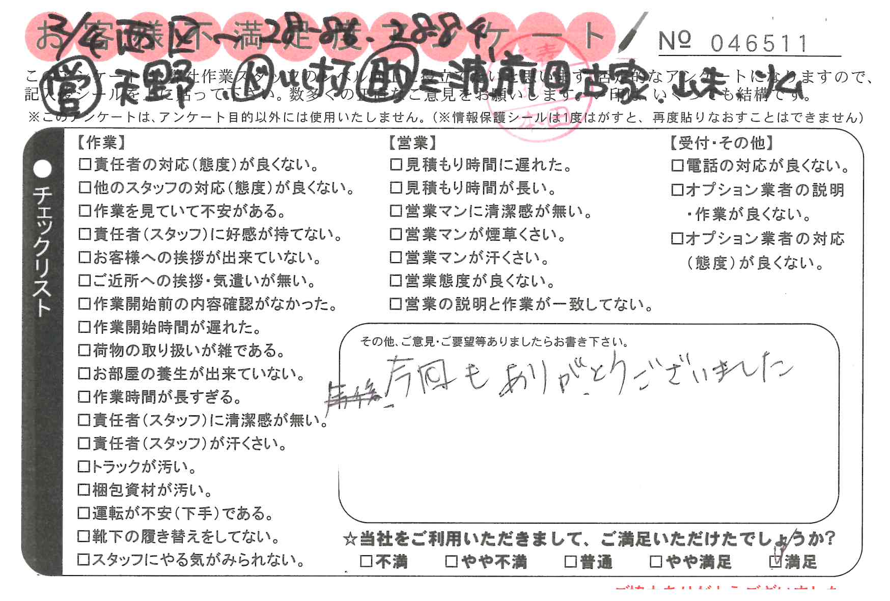 引越一番でお引越しをしていただいたお客様のうち、コメントいただいたアンケートを全て掲載しています。