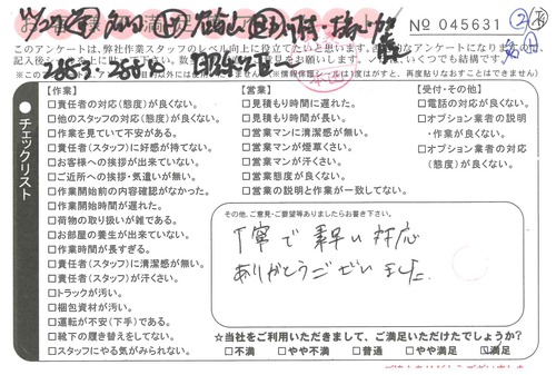 引越一番でお引越しをしていただいたお客様のうち、コメントいただいたアンケートを全て掲載しています。