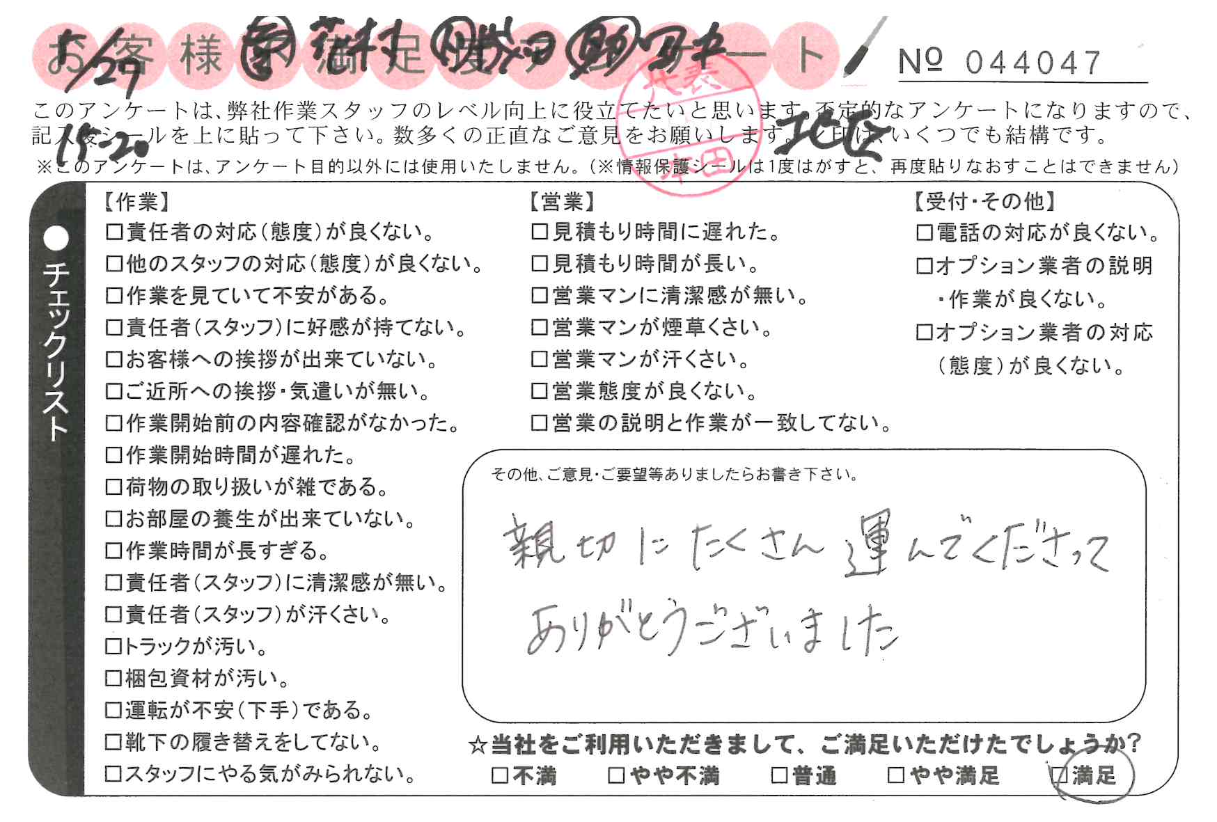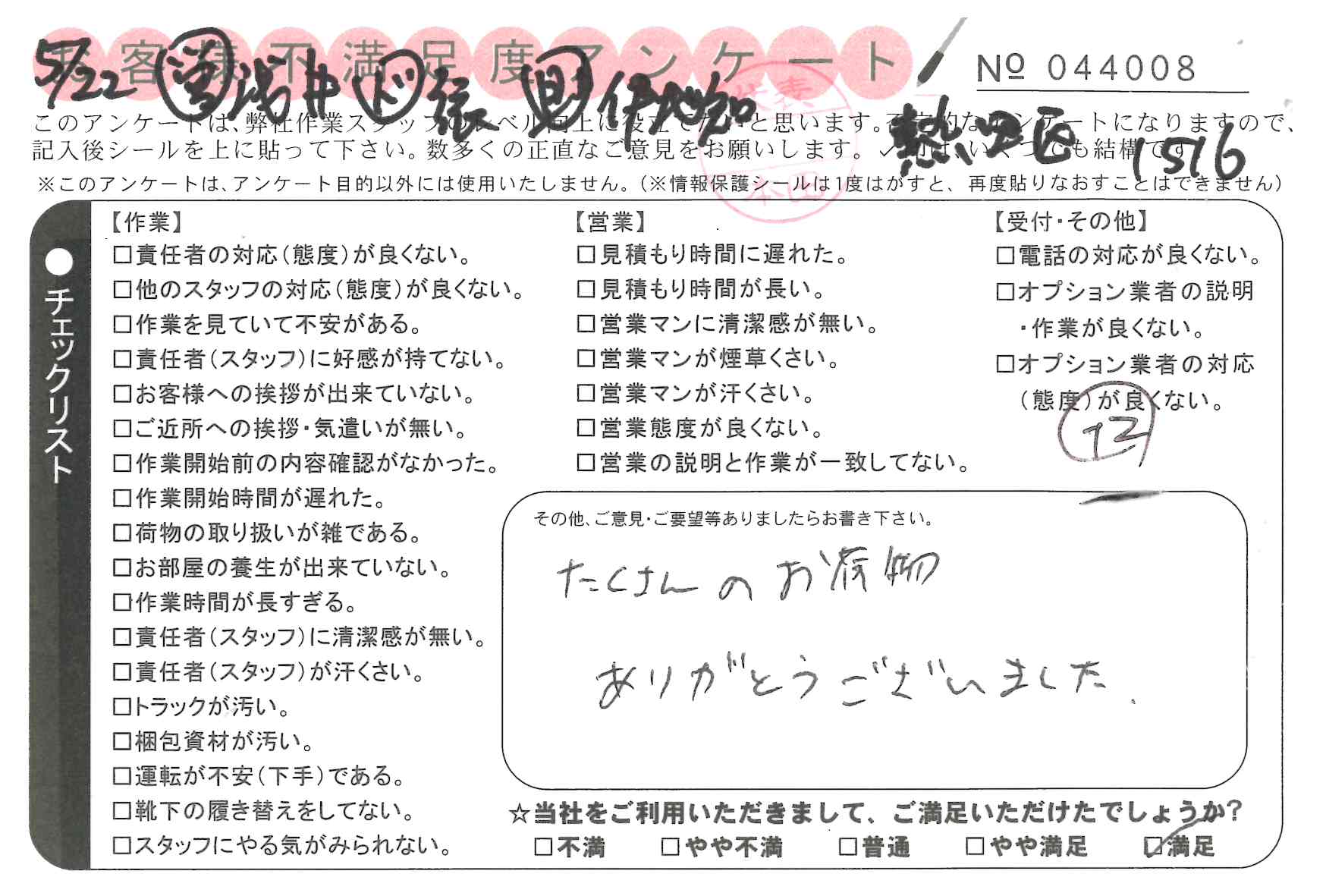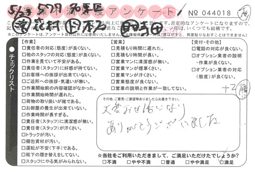 引越一番でお引越しをしていただいたお客様のうち、コメントいただいたアンケートを全て掲載しています。