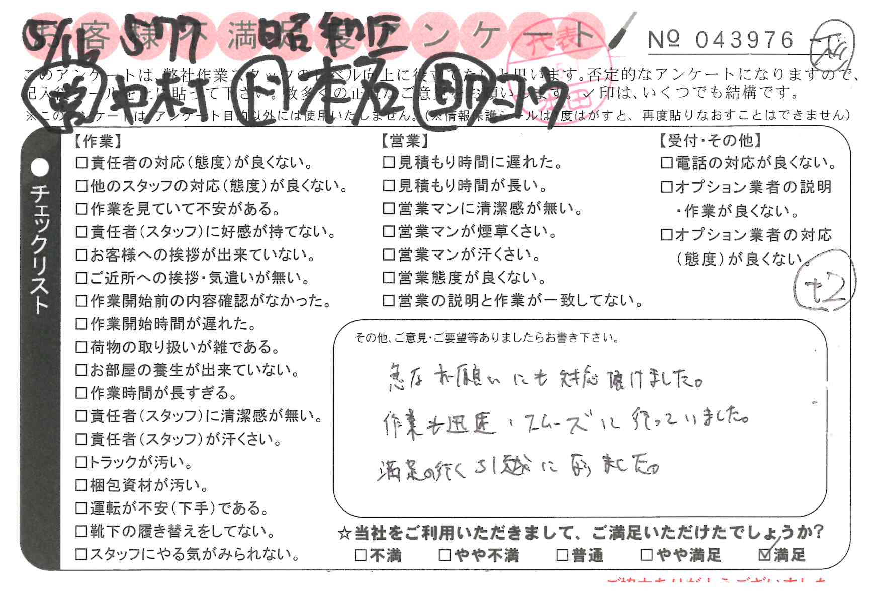 2/9 引越 営業:天野 ドライバー:川村 スタッフ:三浦・望月* 助かりました。