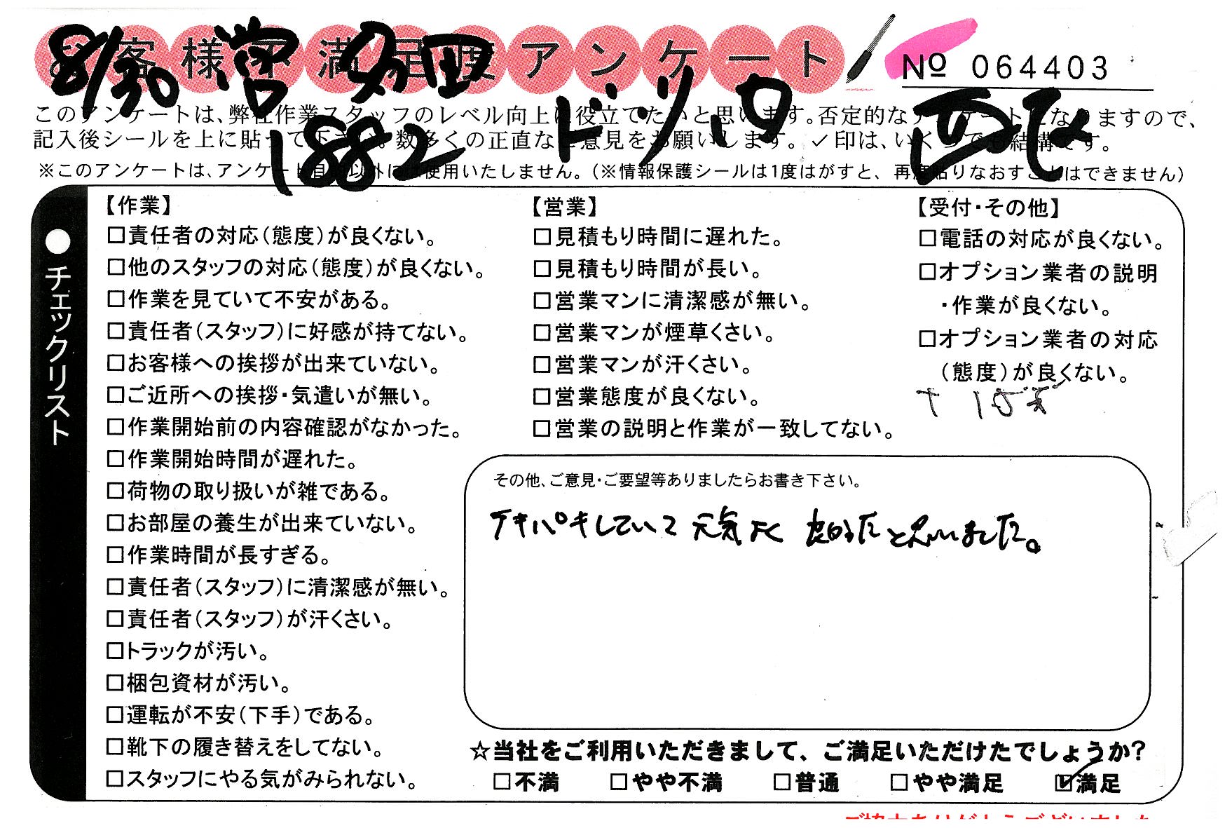 不満足度アンケートを行っている引越一番では、不評なアンケートも、好評なアンケートも全て掲載しています。