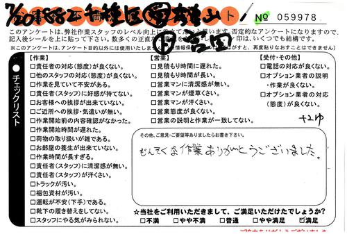 引越一番でお引越しをしていただいたお客様のうち、コメントいただいたアンケートを全て掲載しています。