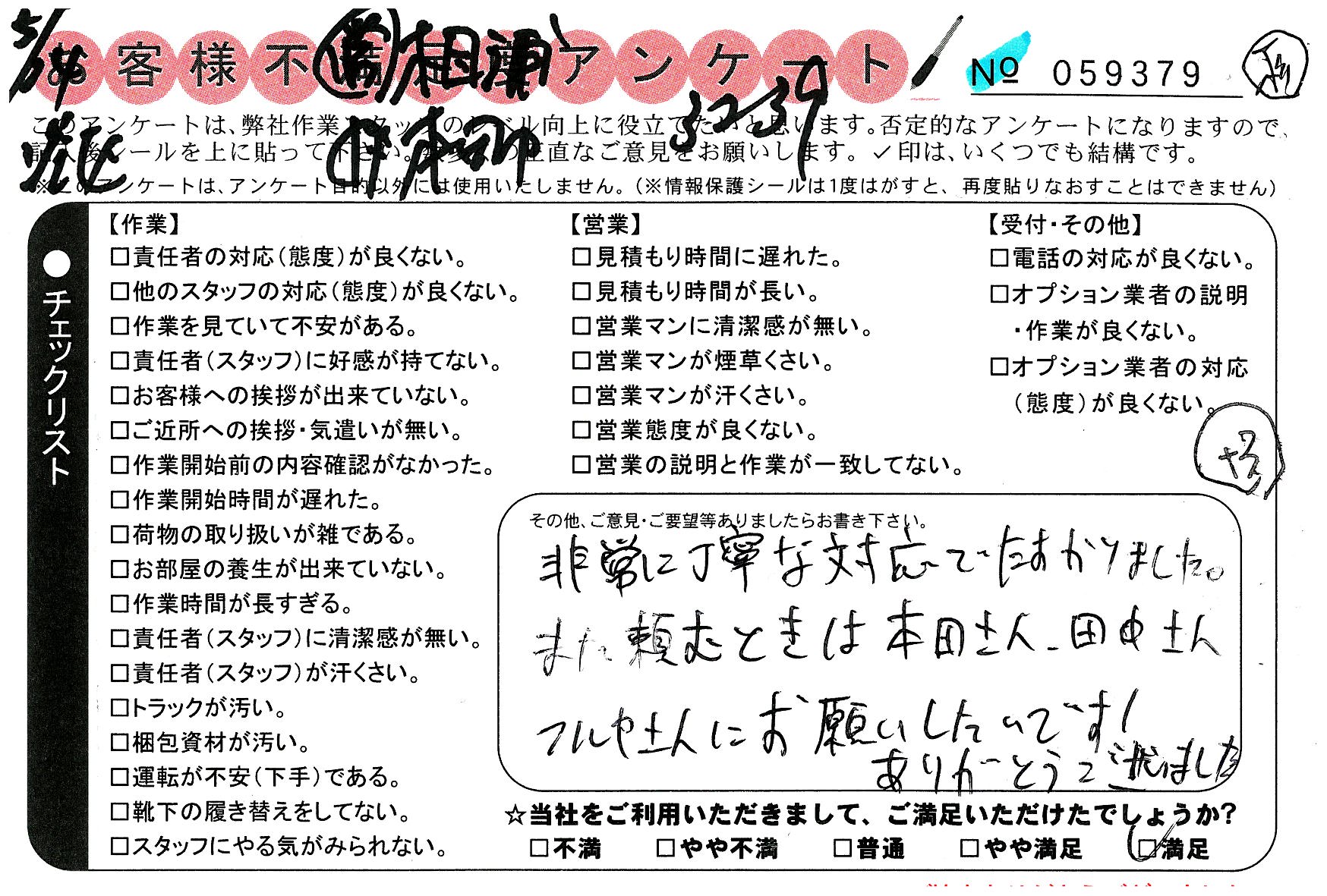 引越一番でお引越しをしていただいたお客様のうち、コメントいただいたアンケートを全て掲載しています。