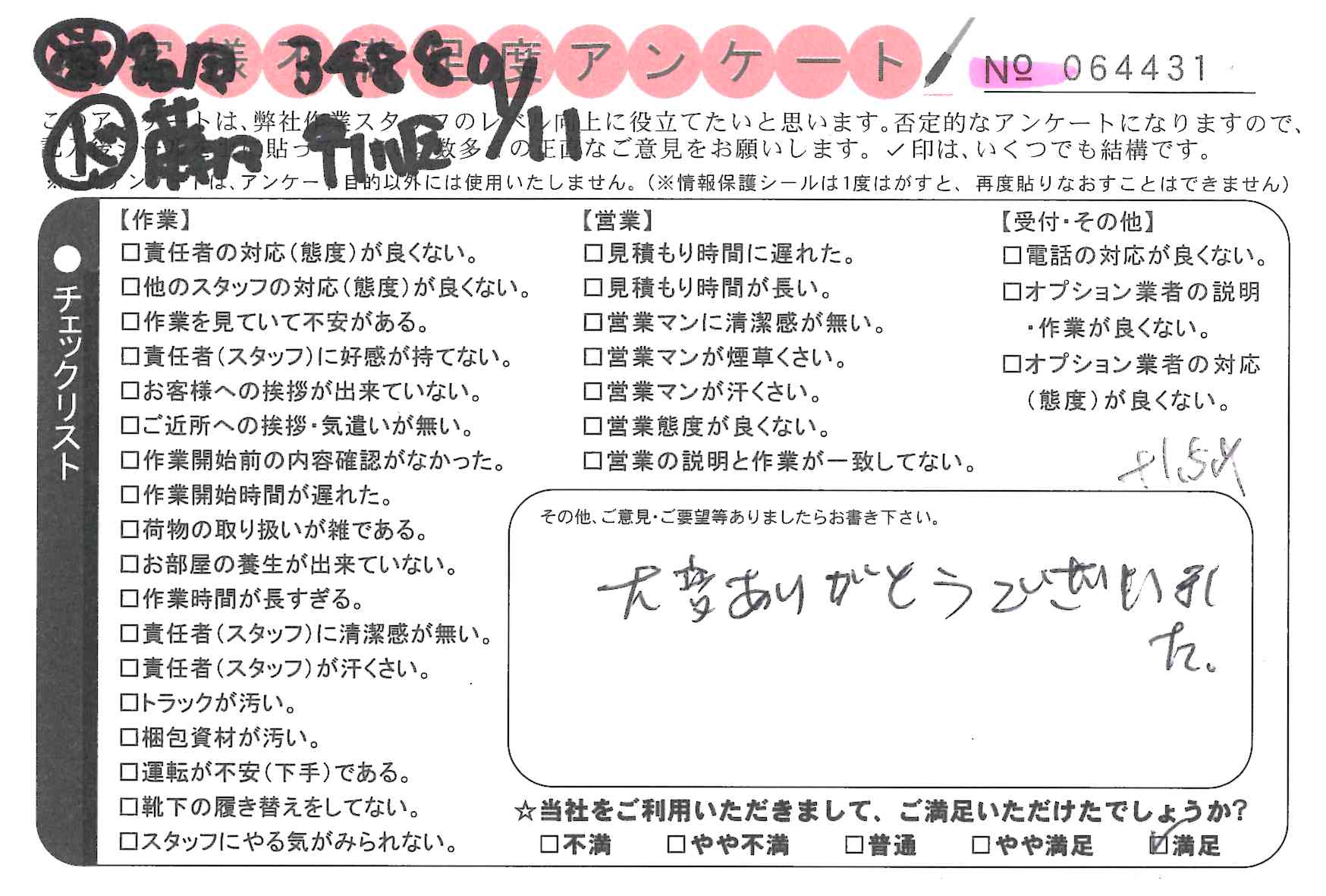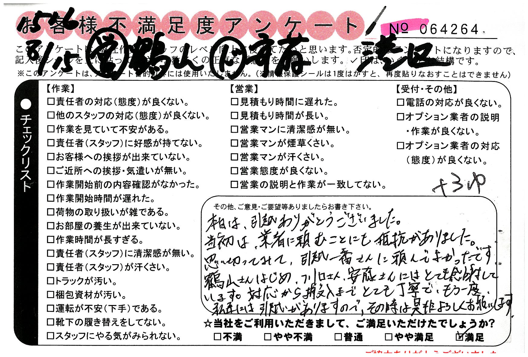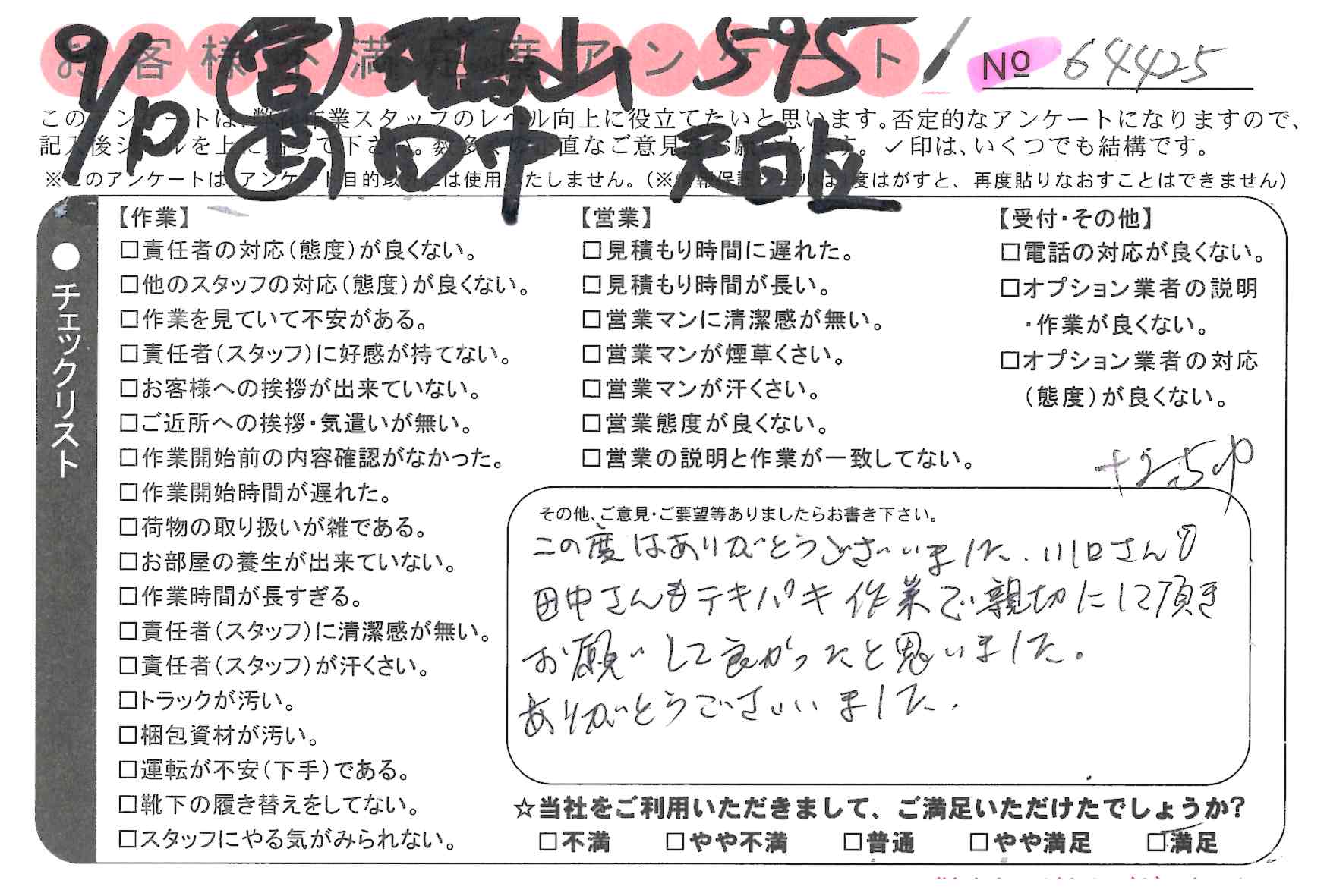 引越一番でお引越しをしていただいたお客様のうち、コメントいただいたアンケートを全て掲載しています。