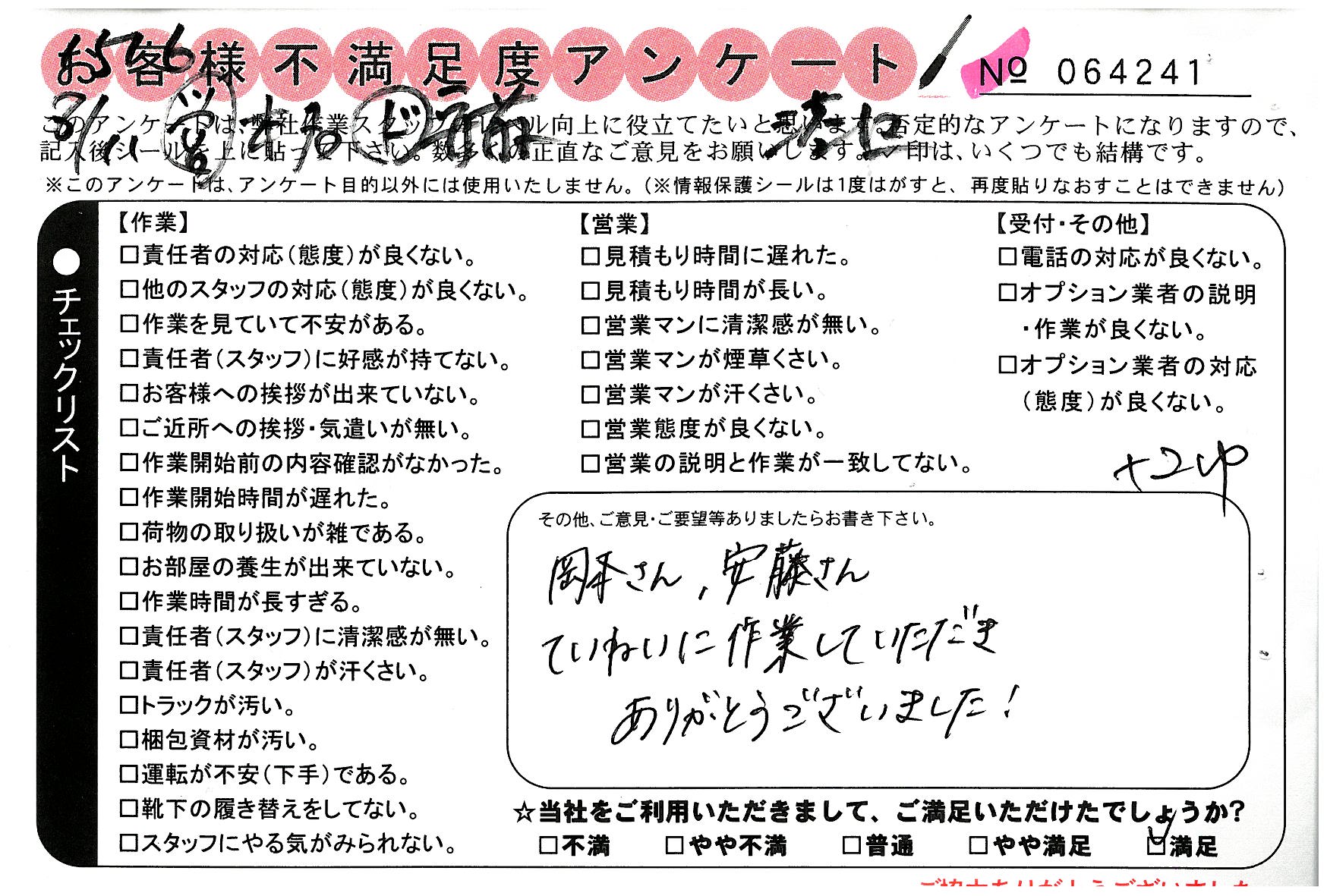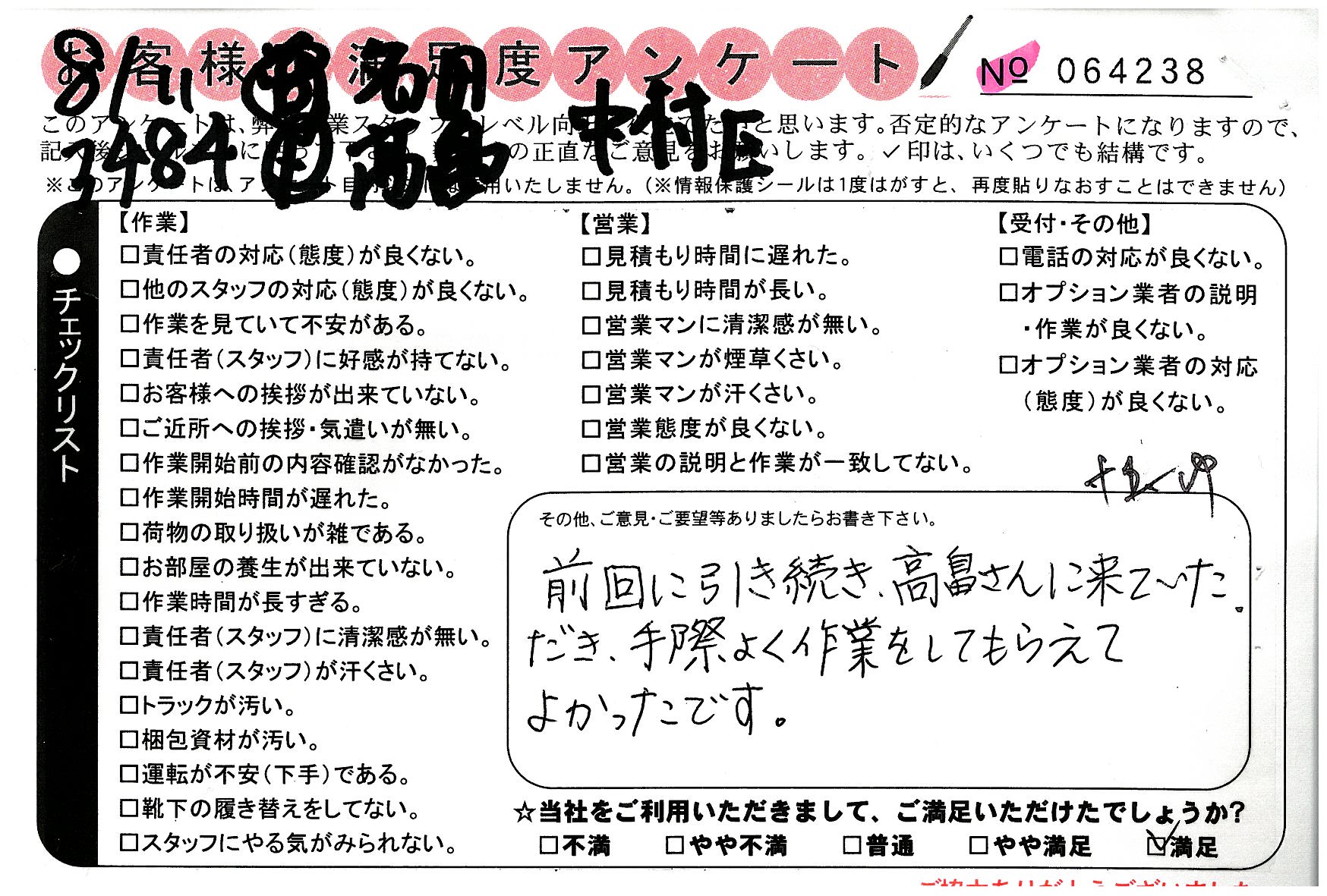 * すごくテキパキとていねいな作業をして頂きました。