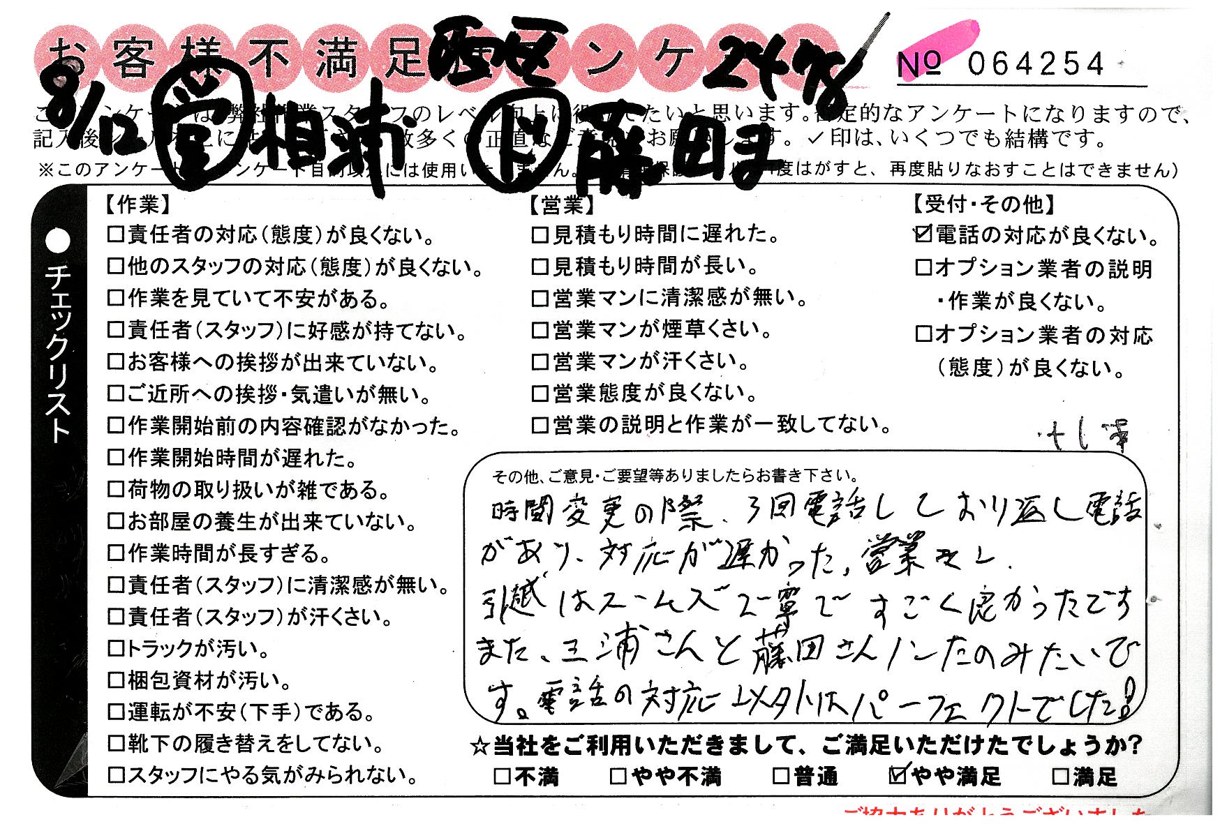 電話の対応以外はパーフェクトでした!