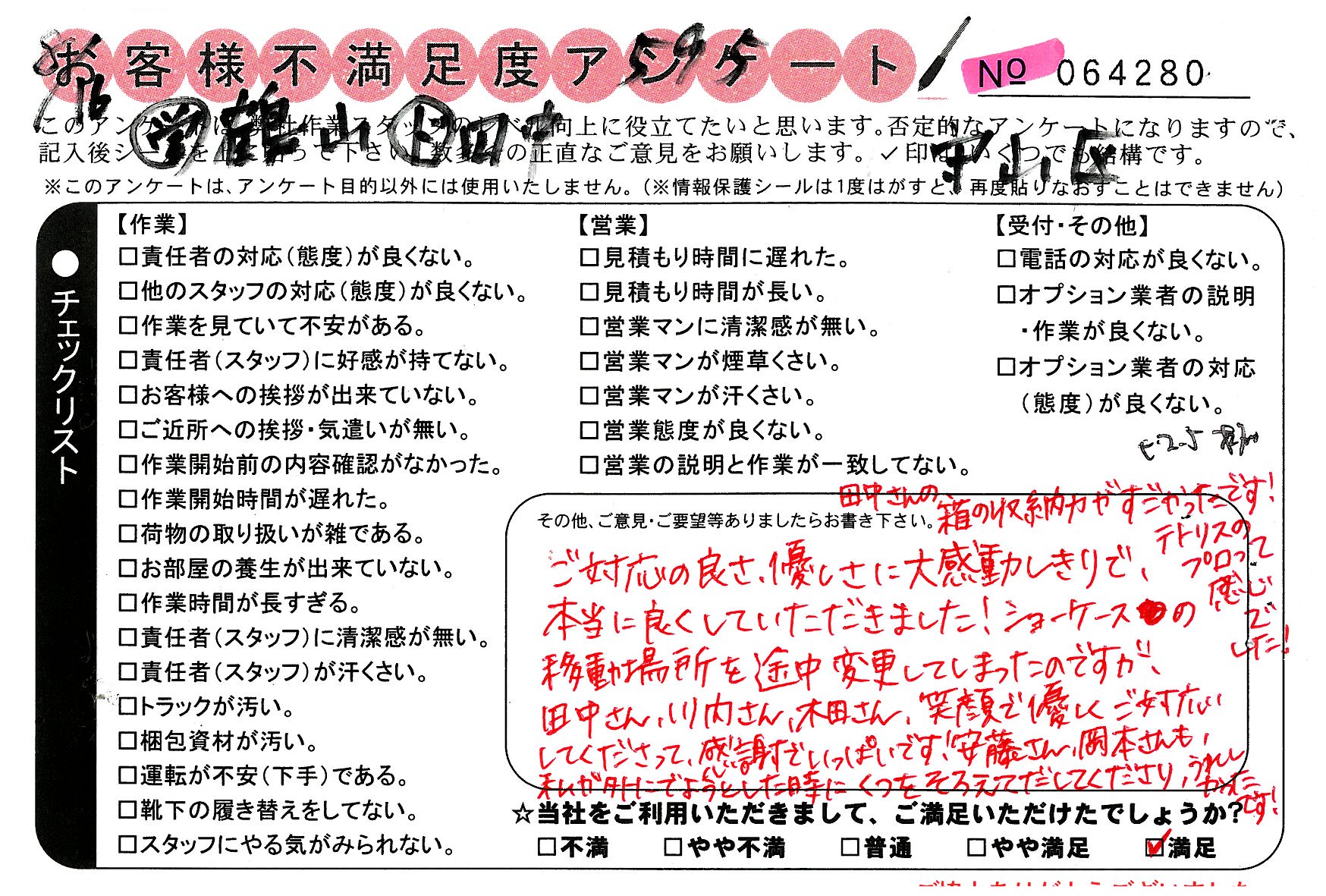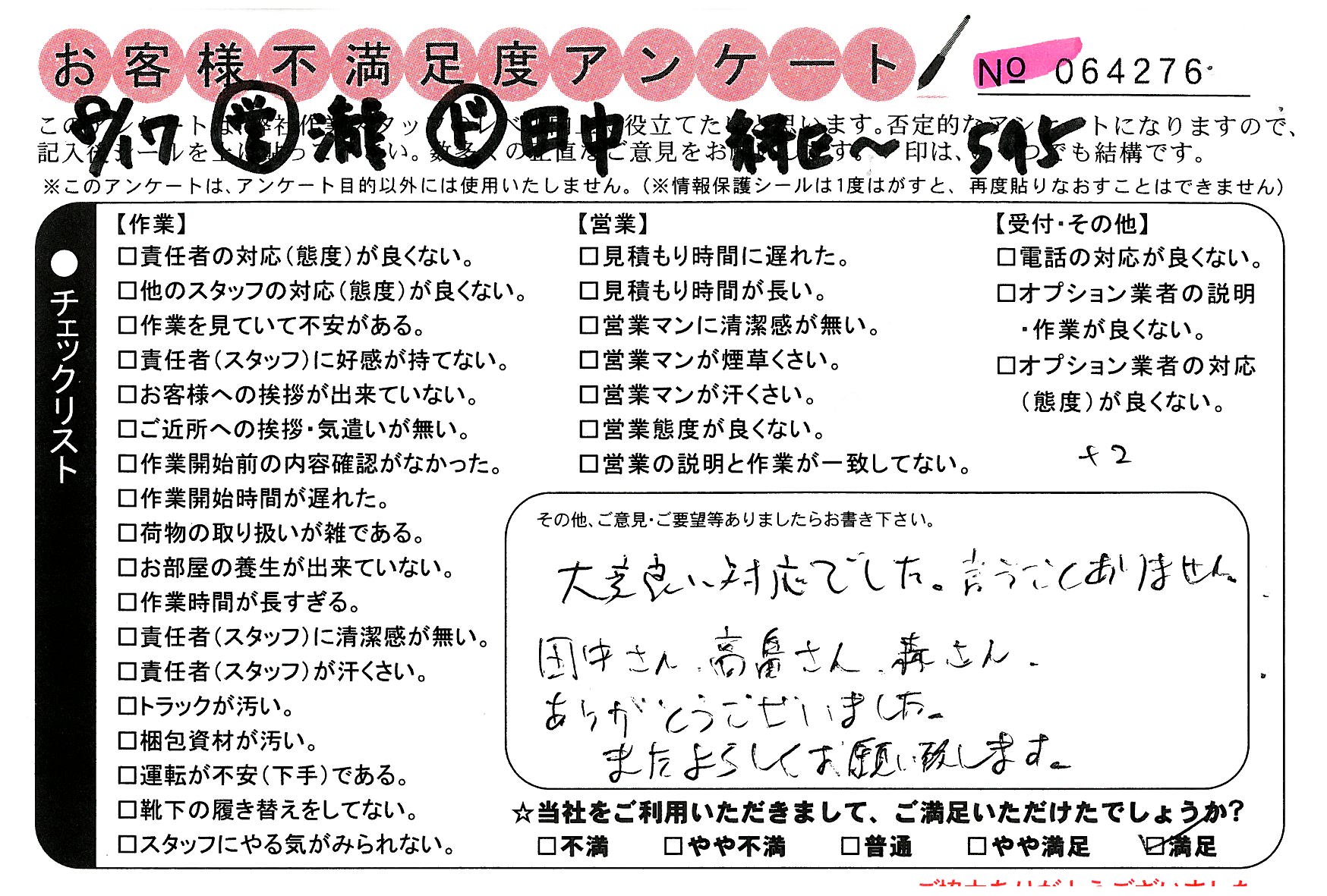 * 大変良い対応でした。言うことありません。