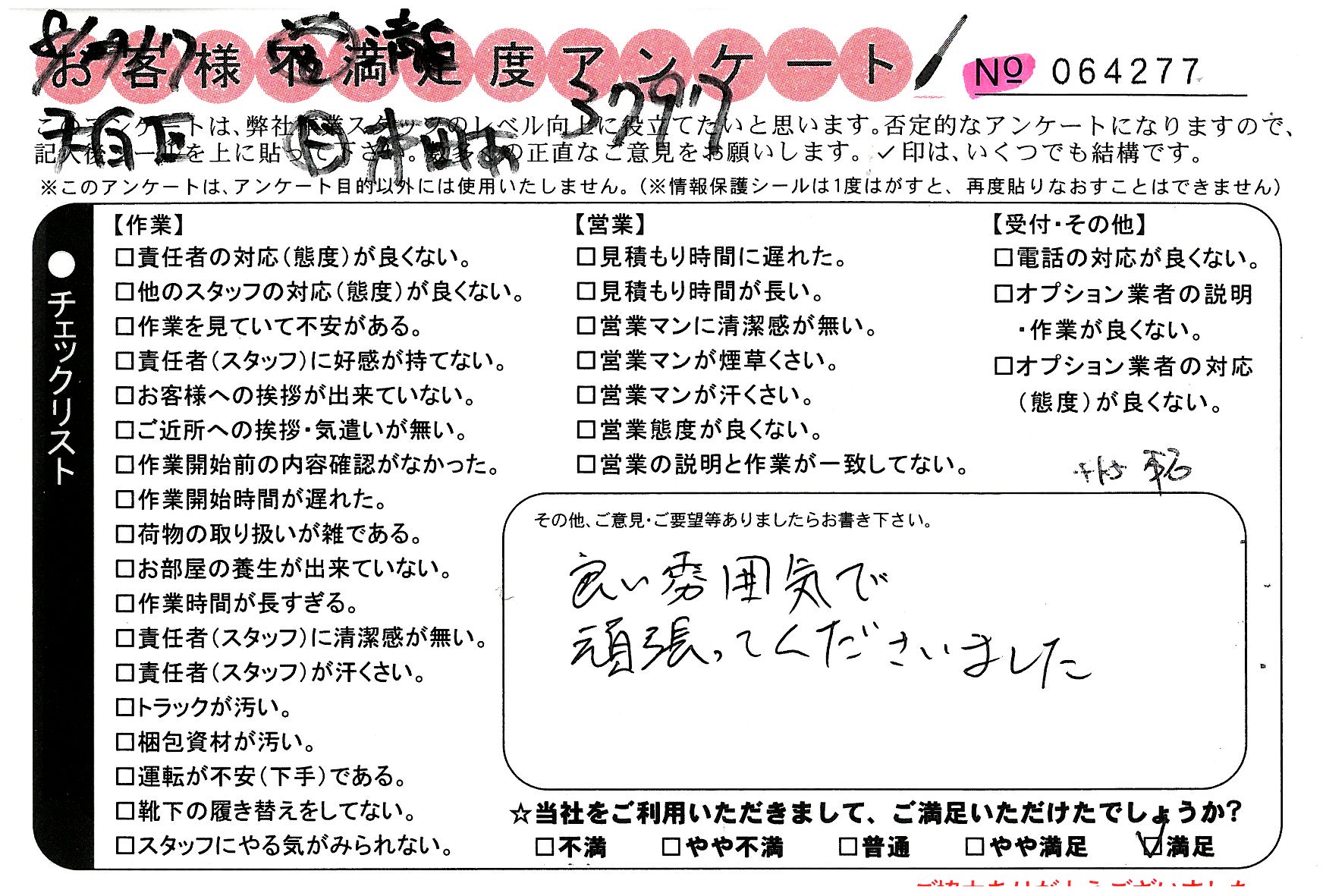 大変気持ち良く作業していただきました。