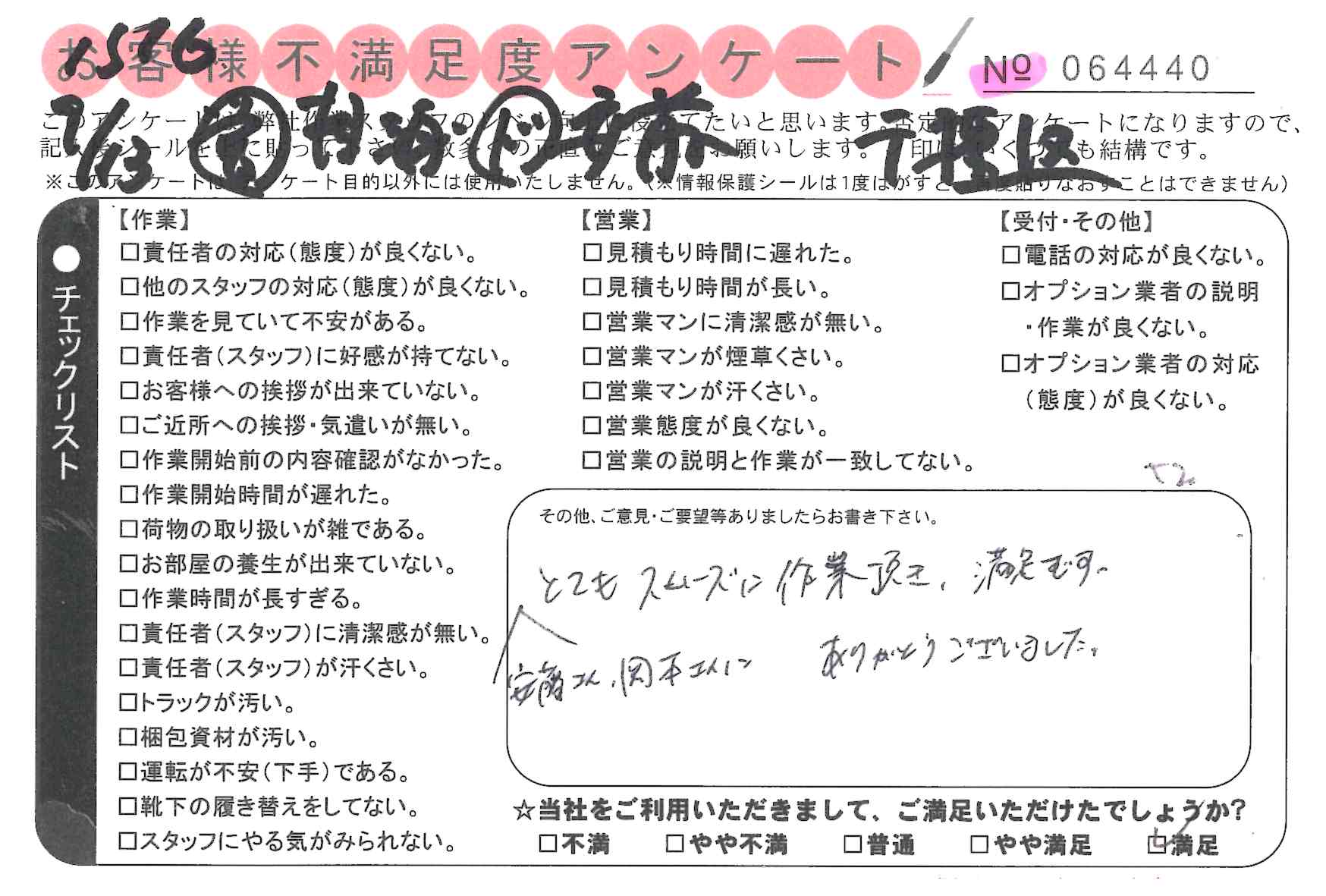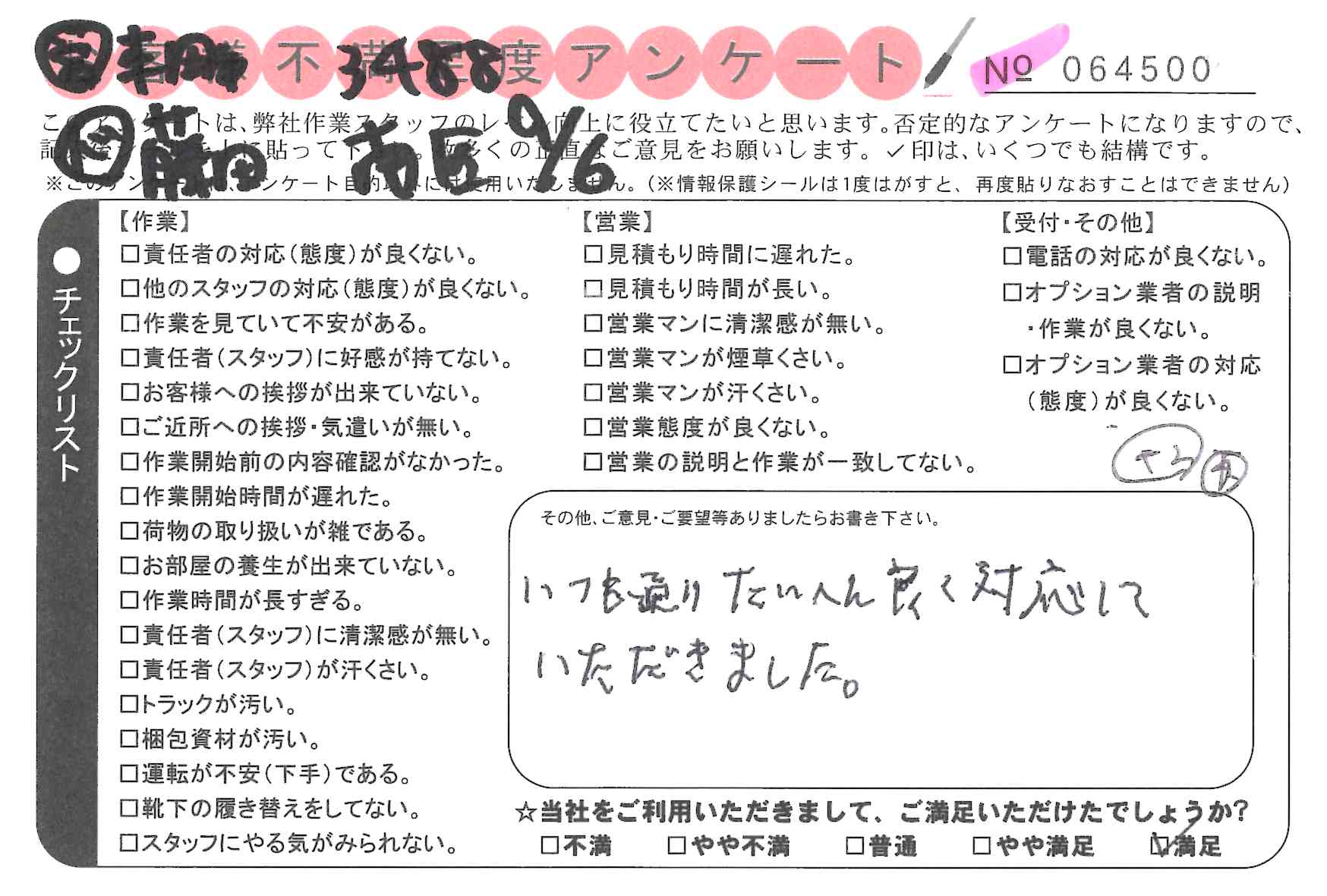* いつも通りたいへん良く対応していただきました。