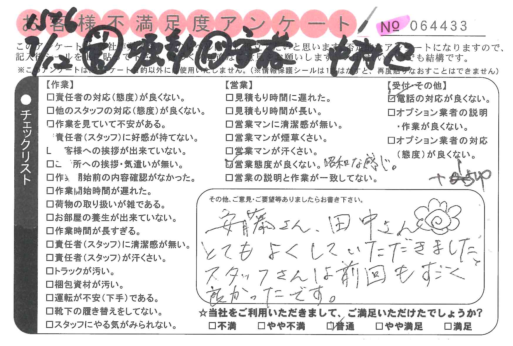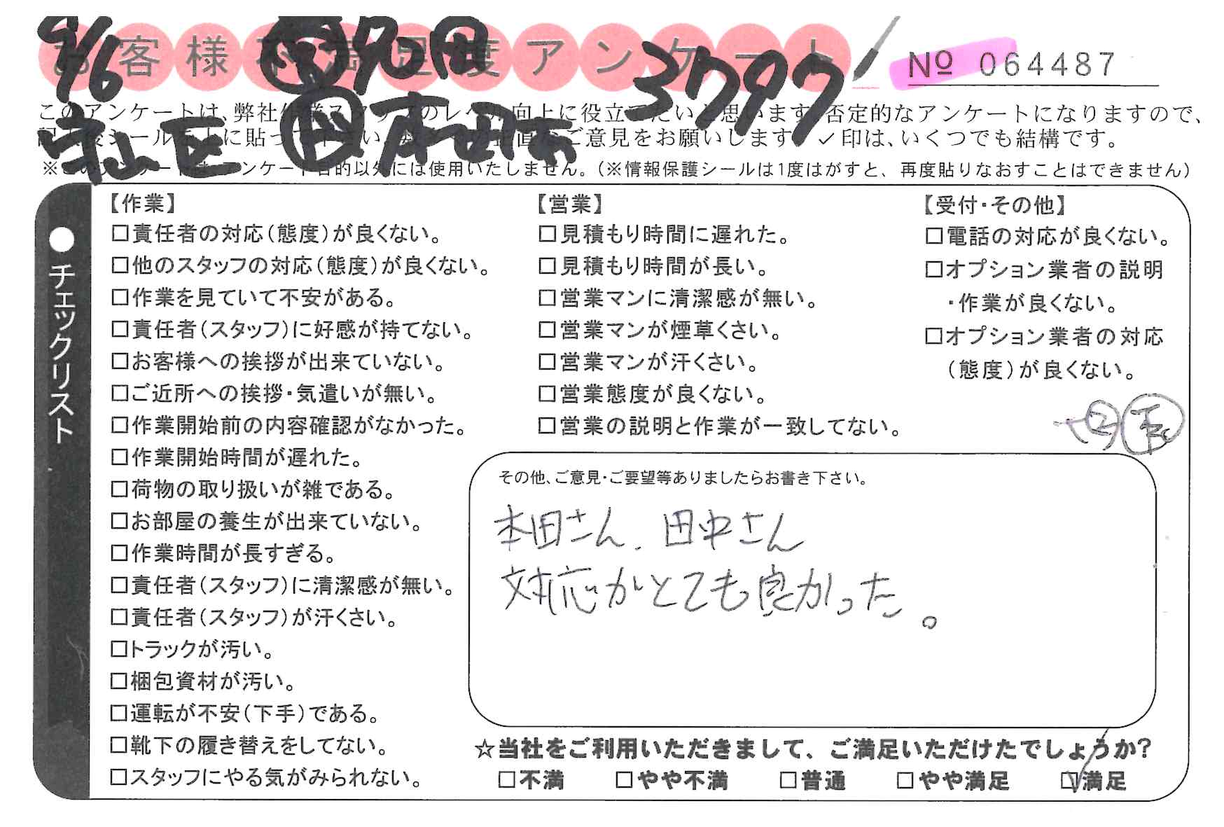 * 本田さん、田中さん 対応がとても良かった。