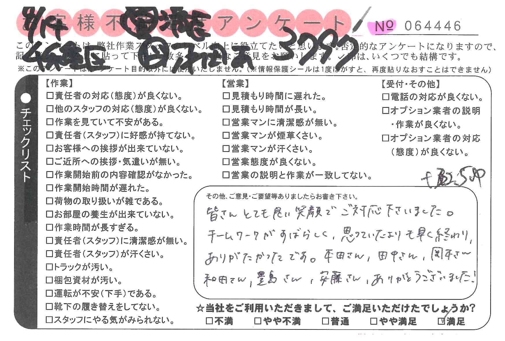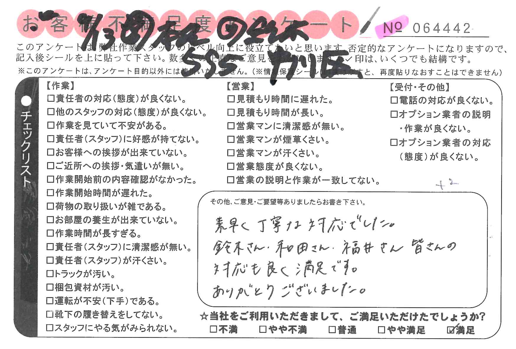 * 素早く丁寧な対応でした。鈴木さん、和田さん、福井さん