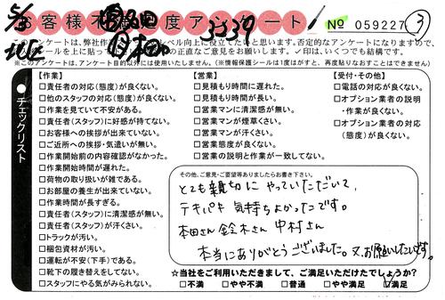 引越一番でお引越しをしていただいたお客様のうち、コメントいただいたアンケートを全て掲載しています。