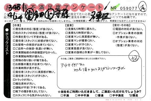 引越一番でお引越しをしていただいたお客様のうち、コメントいただいたアンケートを全て掲載しています。