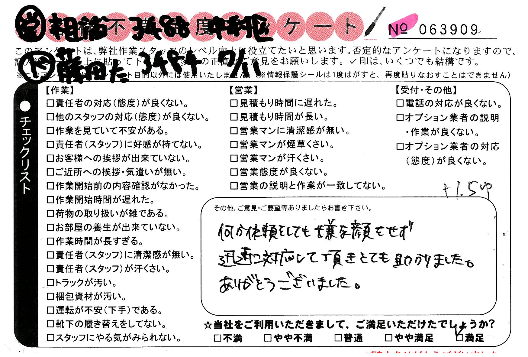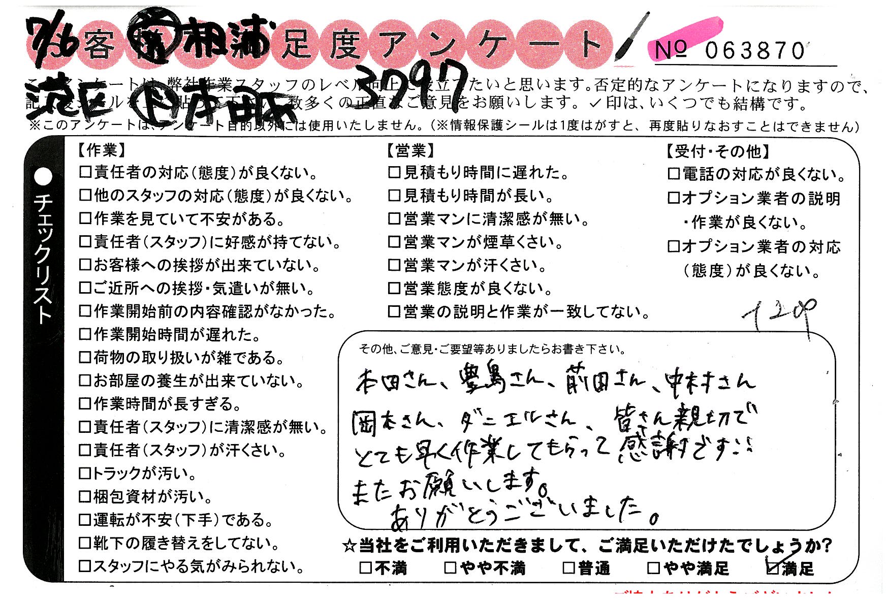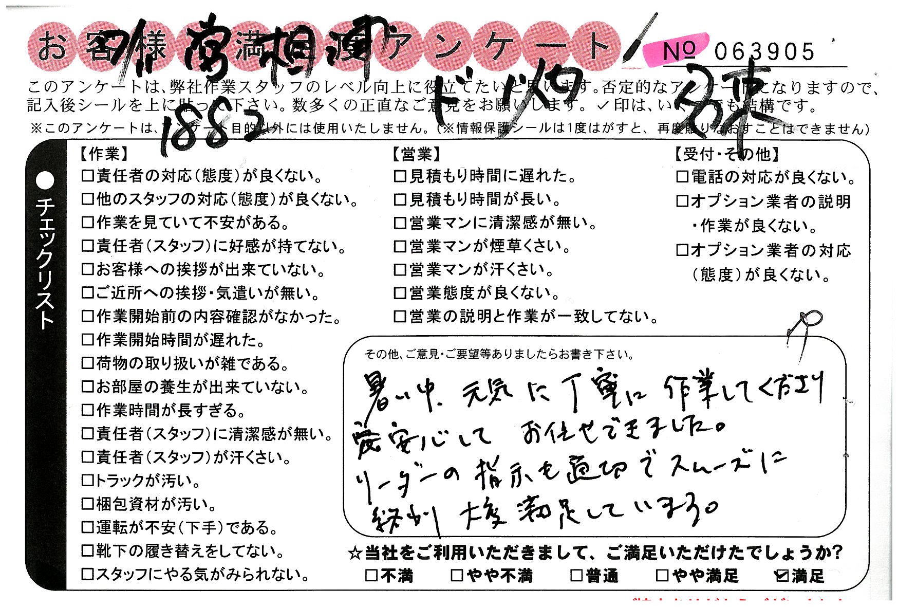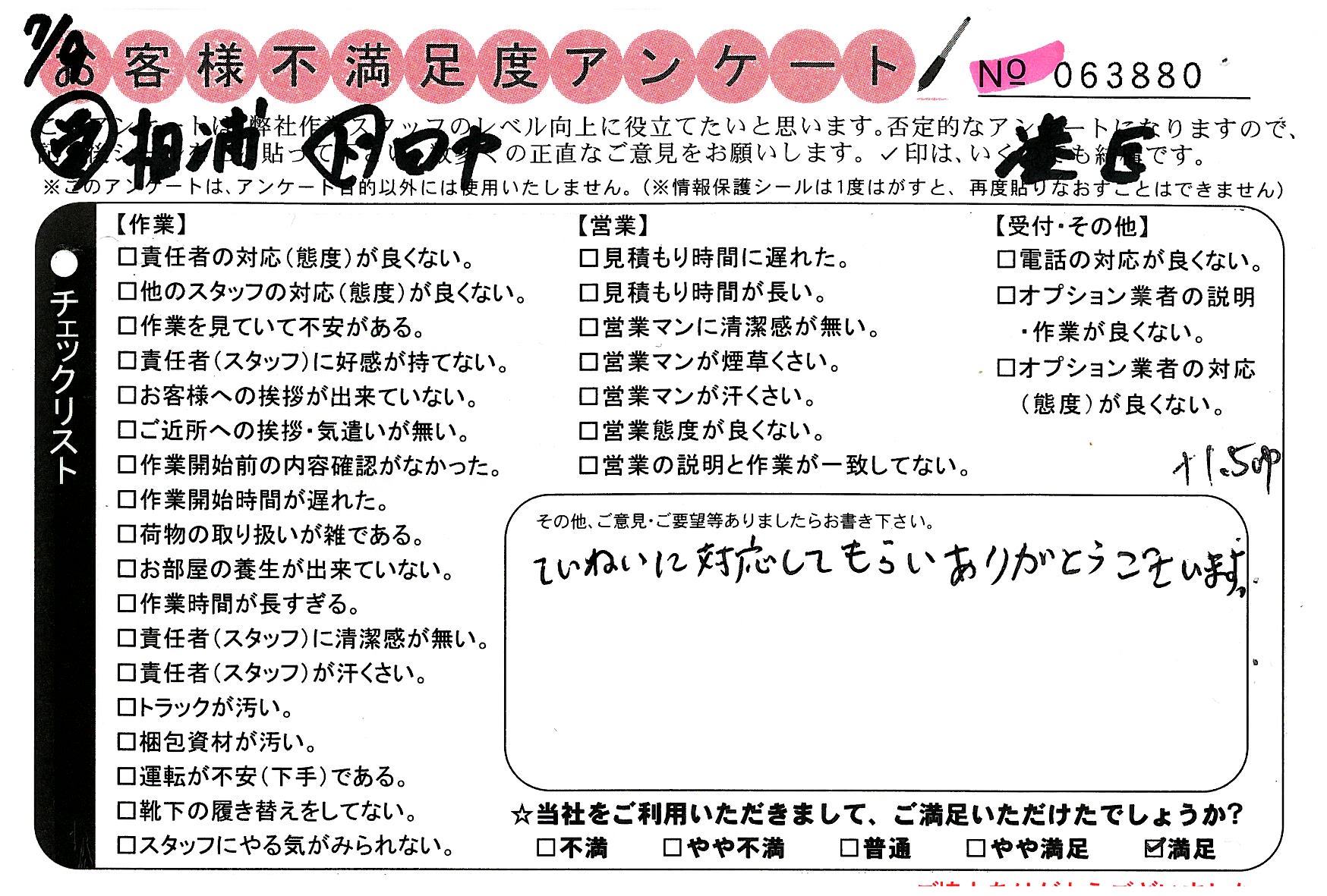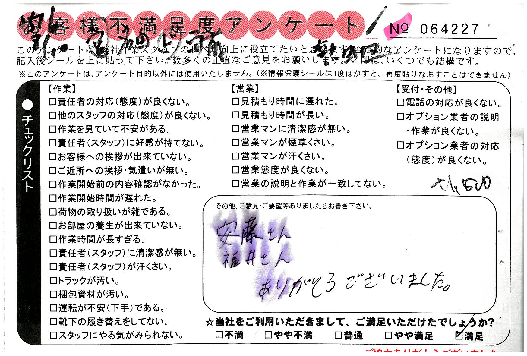 引越一番でお引越しをしていただいたお客様のうち、コメントいただいたアンケートを全て掲載しています。