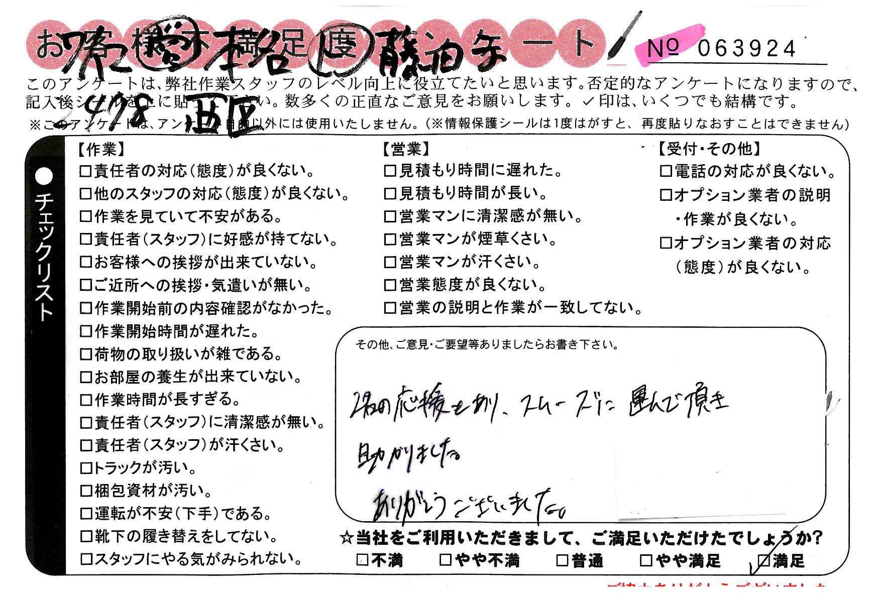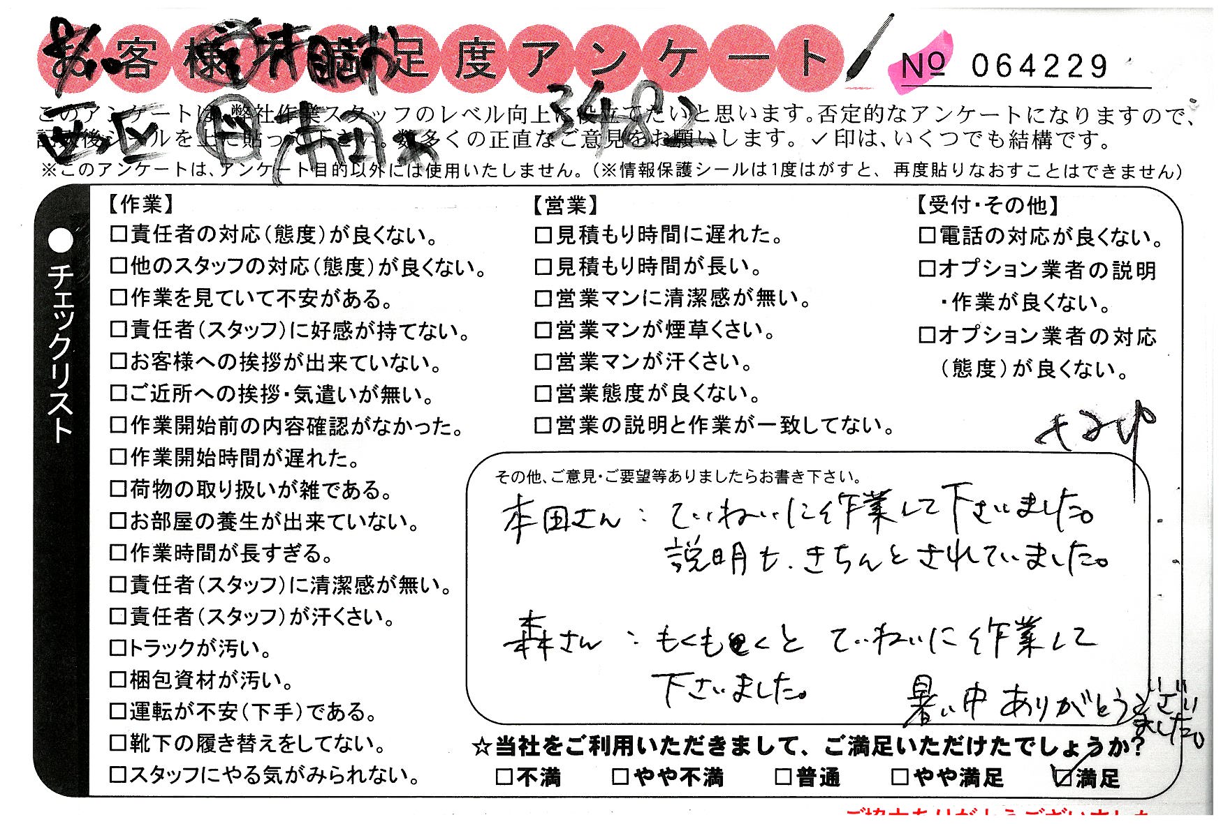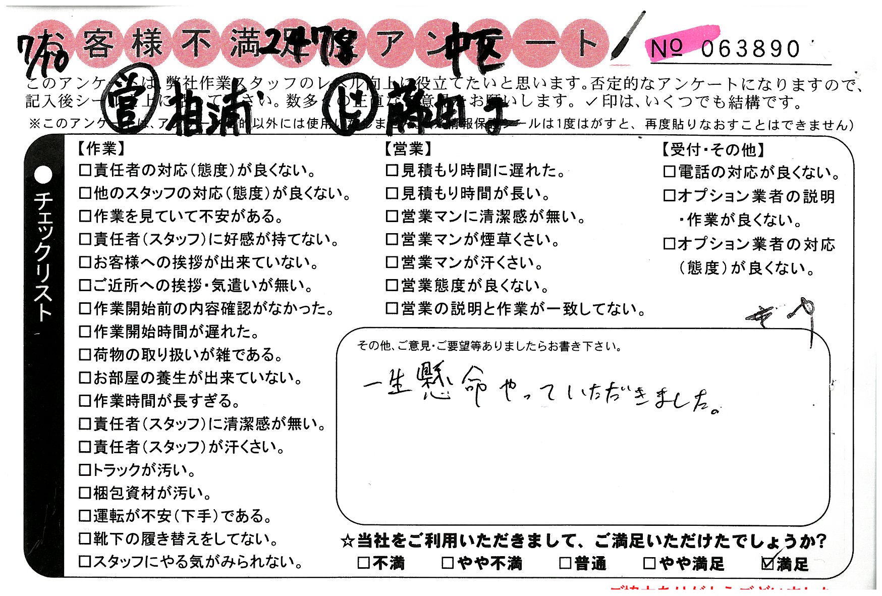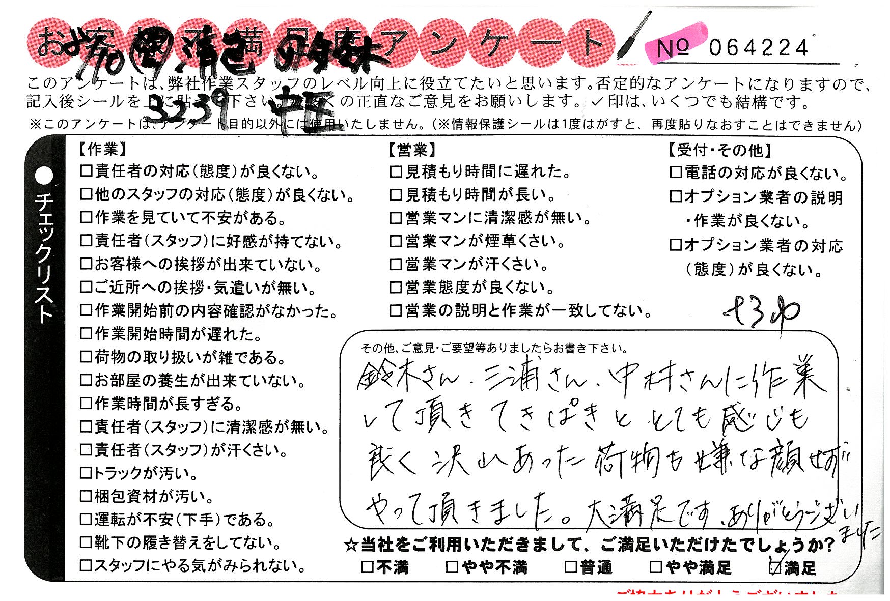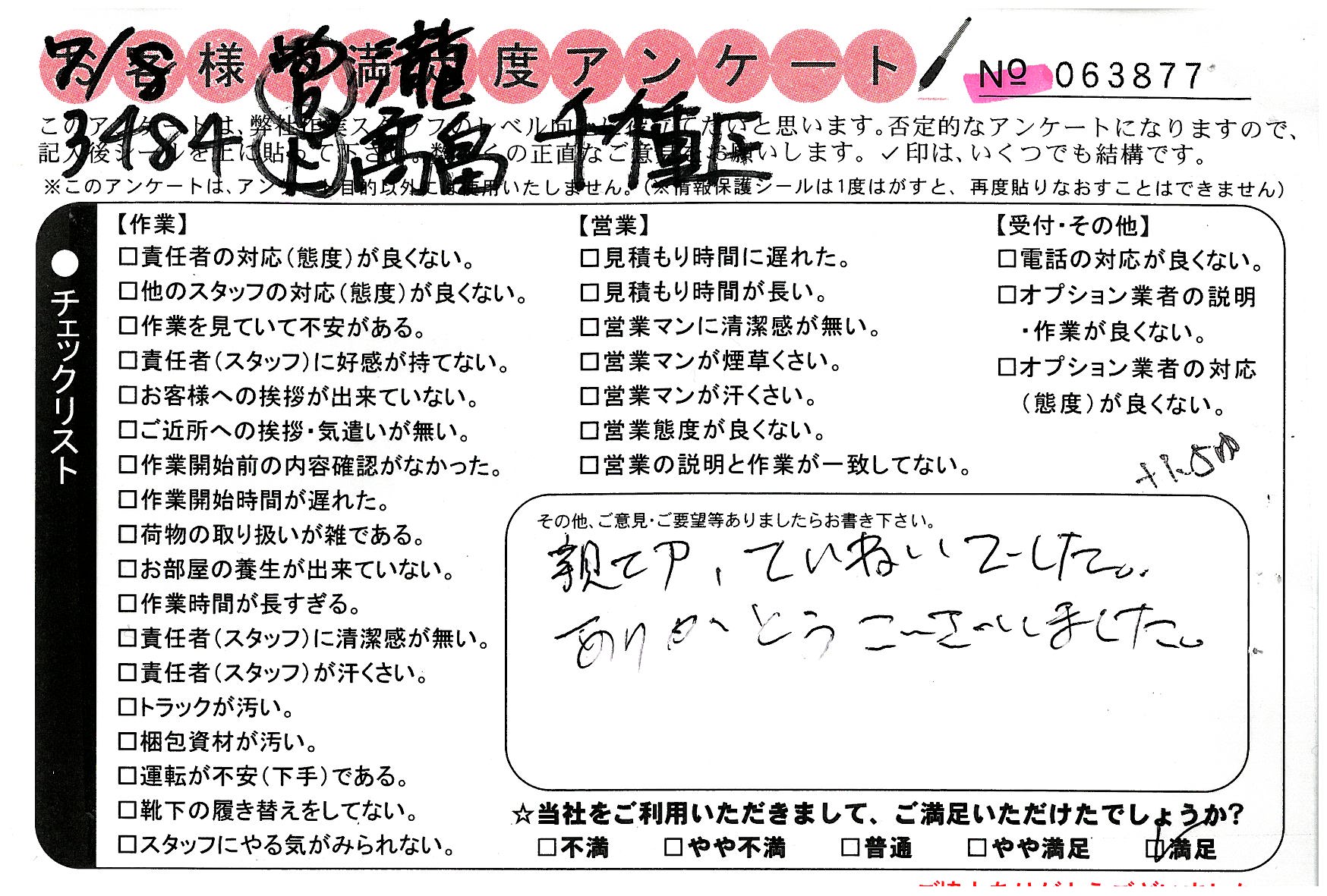 引越一番でお引越しをしていただいたお客様のうち、コメントいただいたアンケートを全て掲載しています。