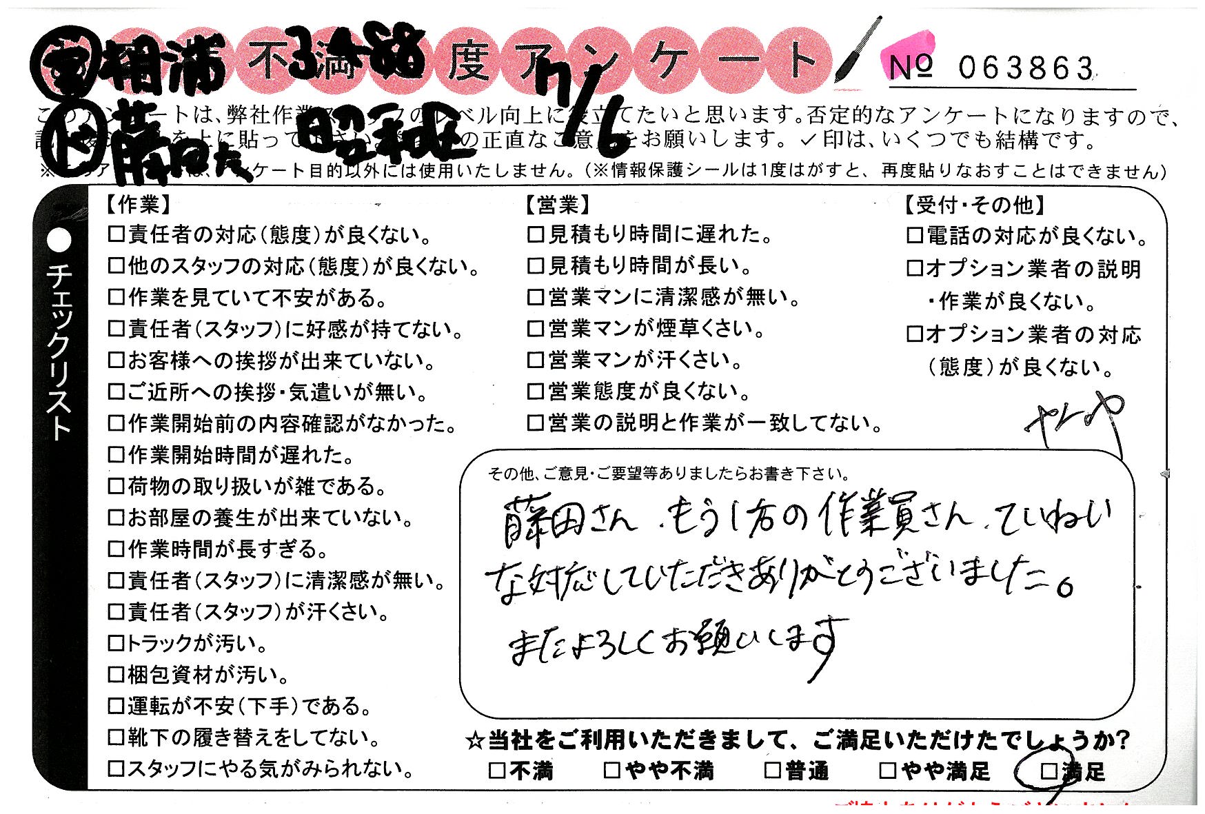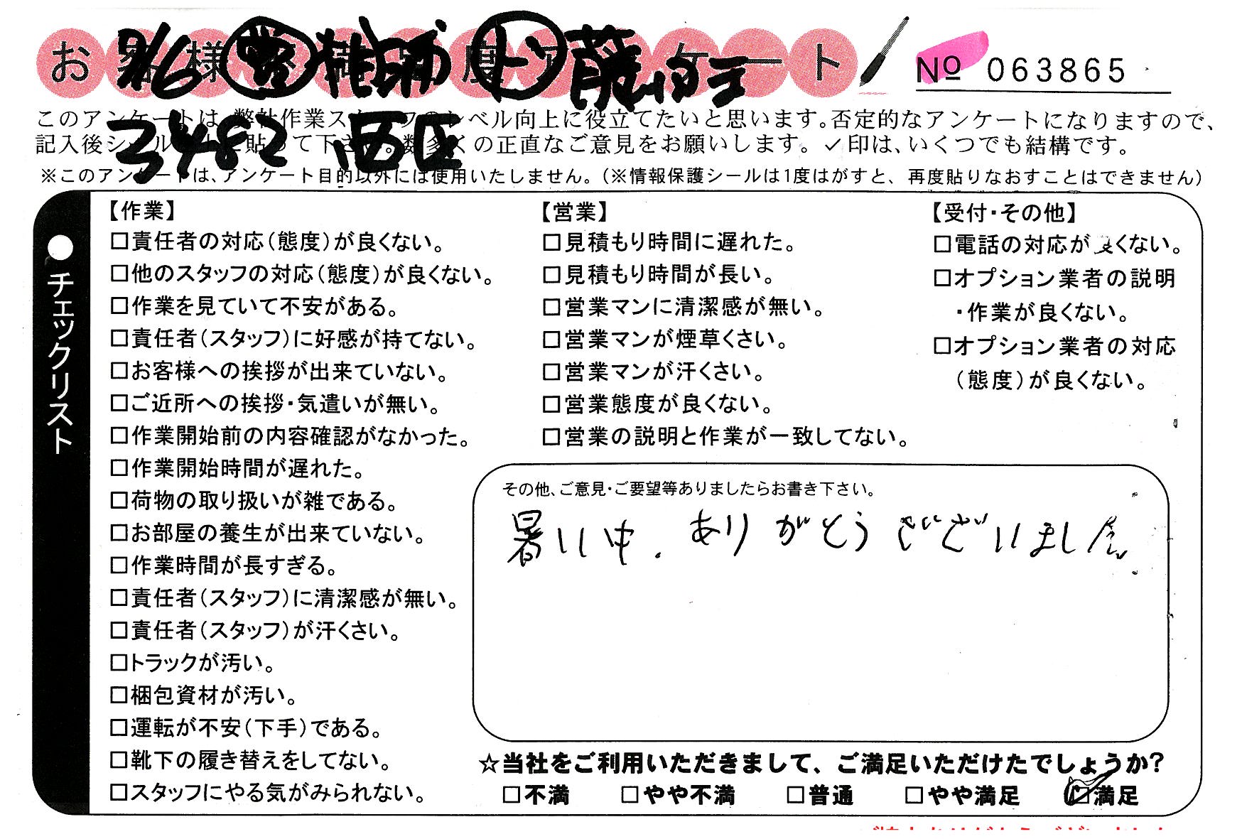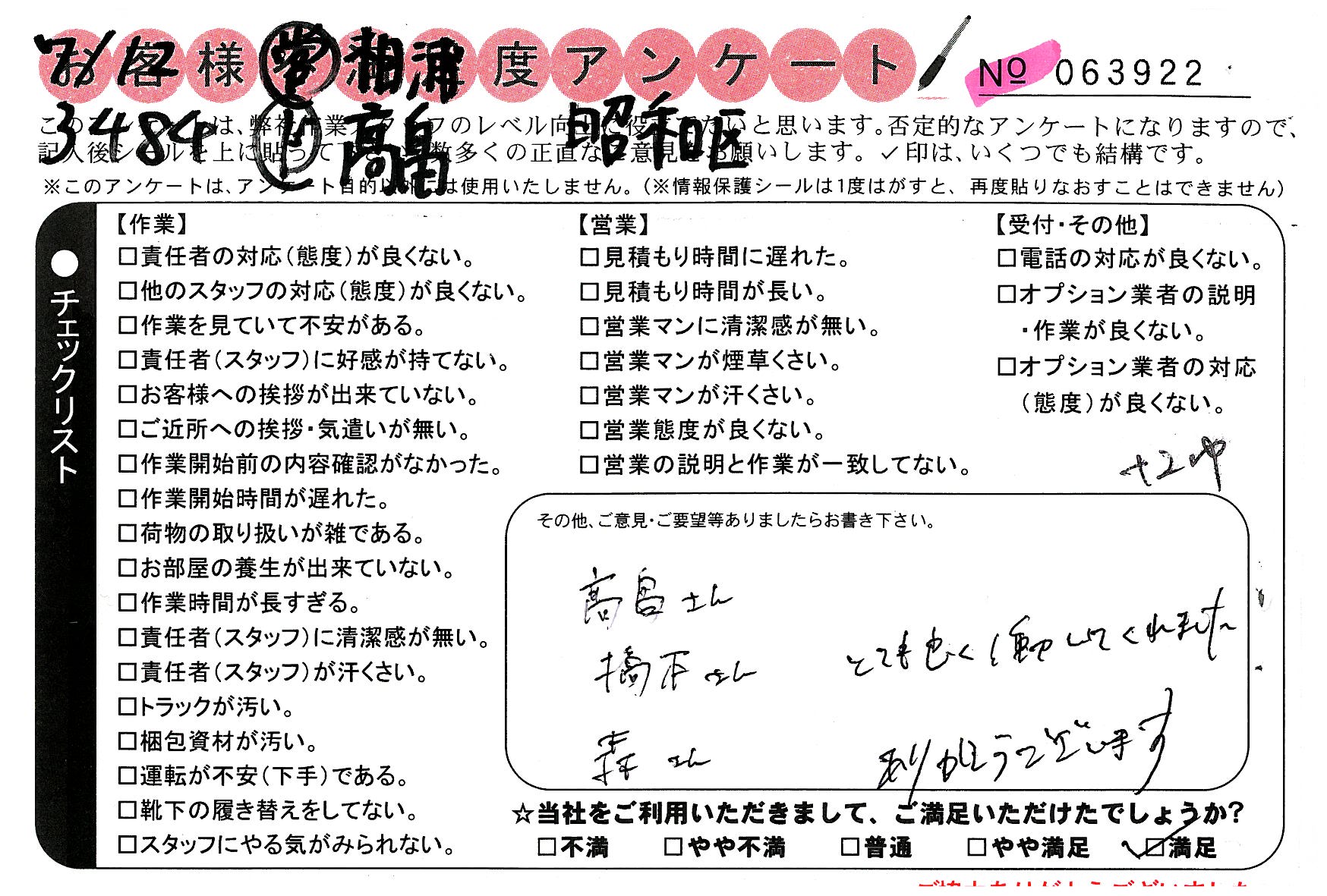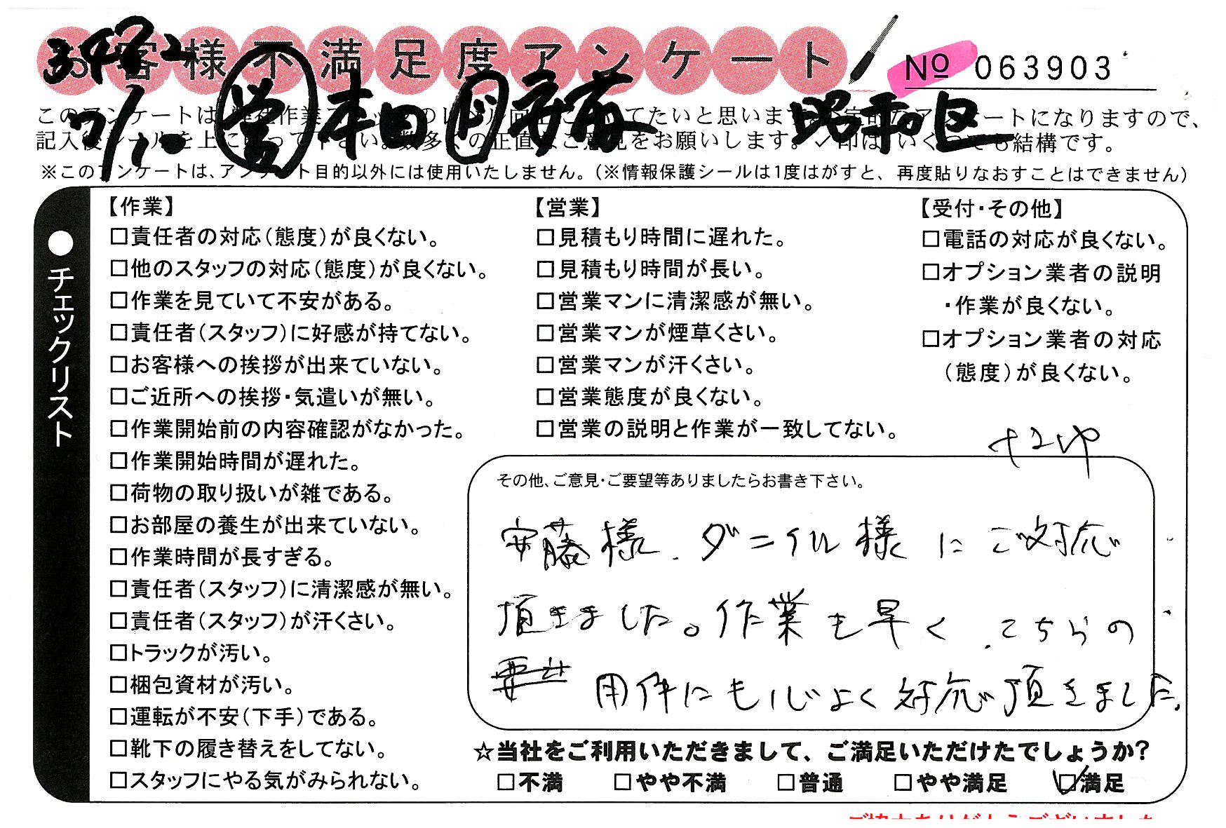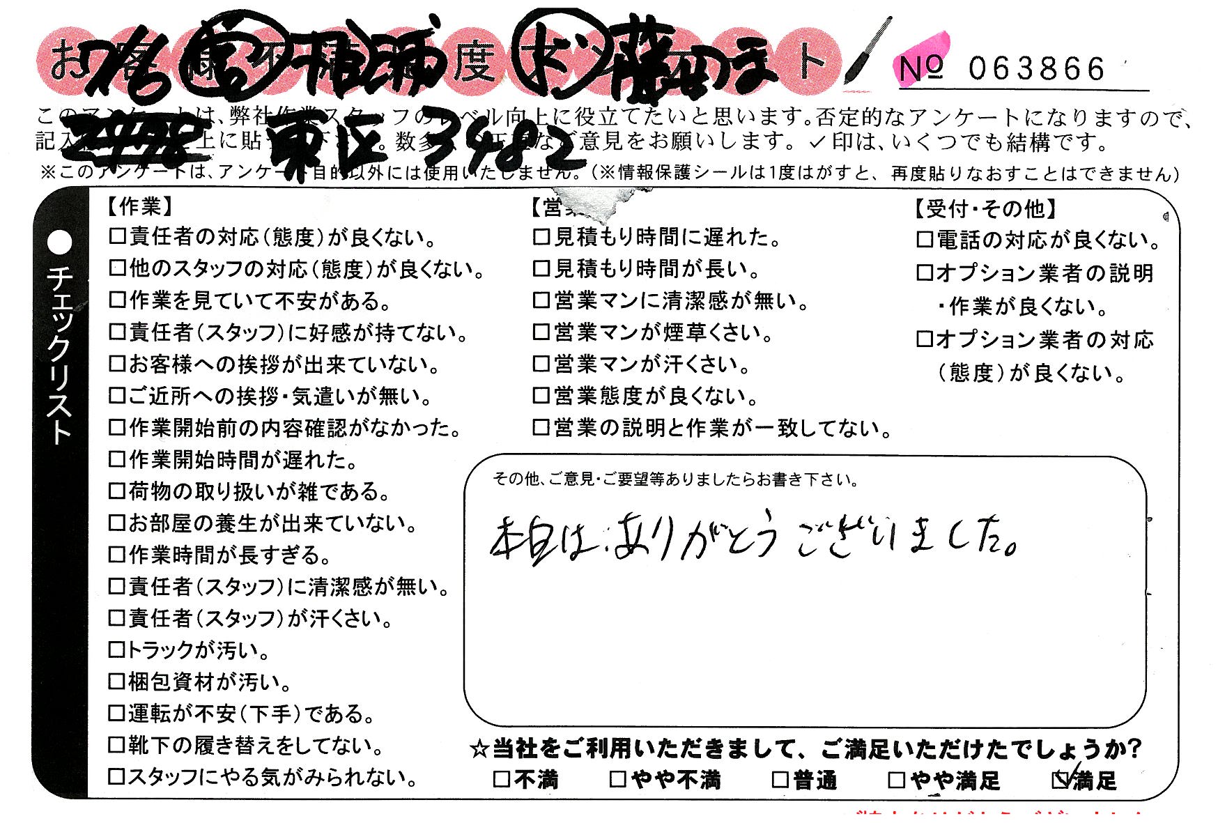 引越一番でお引越しをしていただいたお客様のうち、コメントいただいたアンケートを全て掲載しています。