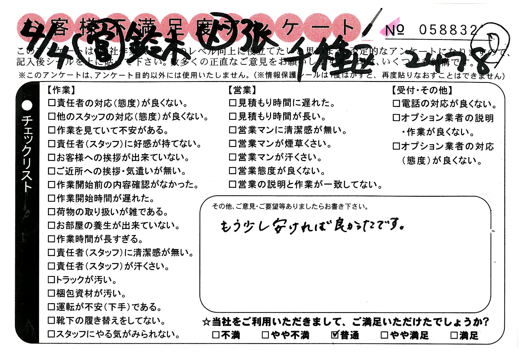不満足度アンケートを行っている引越一番では、不評なアンケートも、好評なアンケートも全て掲載しています。