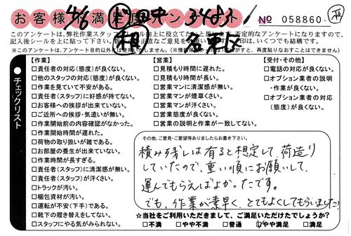 引越一番でお引越しをしていただいたお客様のうち、コメントいただいたアンケートを全て掲載しています。