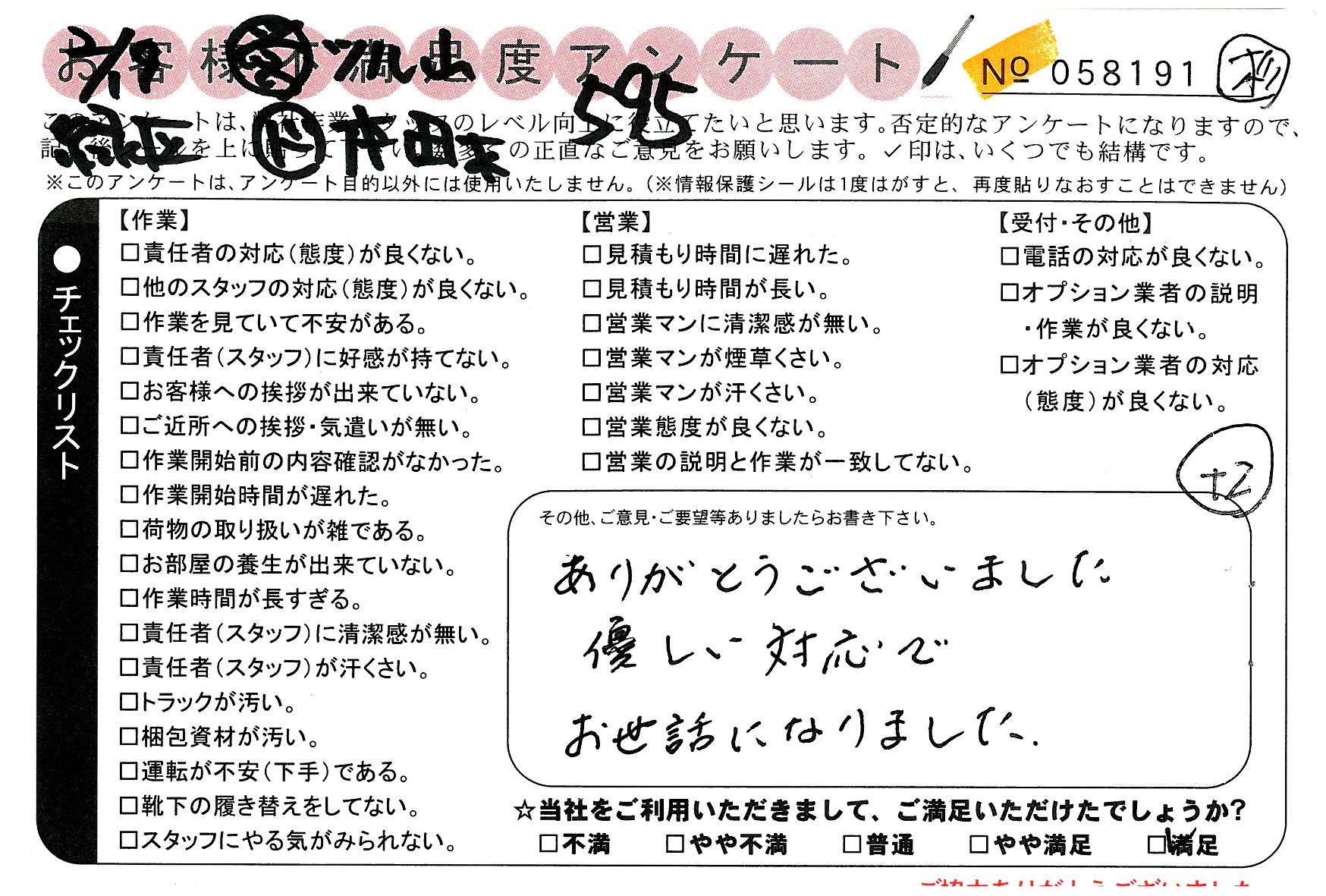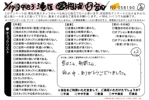 引越一番でお引越しをしていただいたお客様のうち、コメントいただいたアンケートを全て掲載しています。