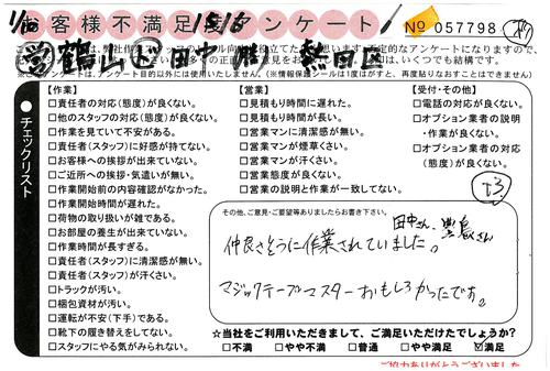 引越一番でお引越しをしていただいたお客様のうち、コメントいただいたアンケートを全て掲載しています。