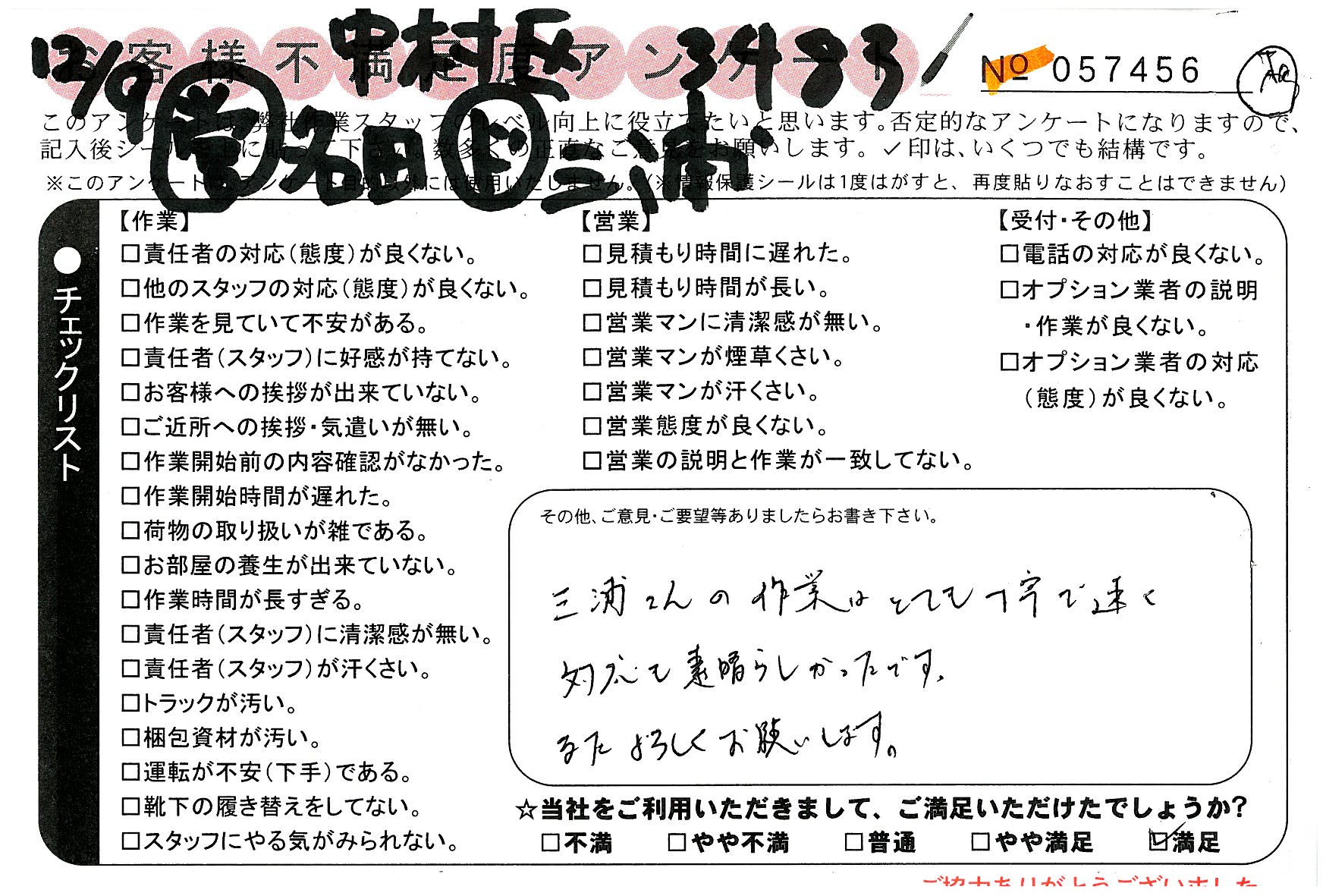 不満足度アンケートを行っている引越一番では、不評なアンケートも、好評なアンケートも全て掲載しています。