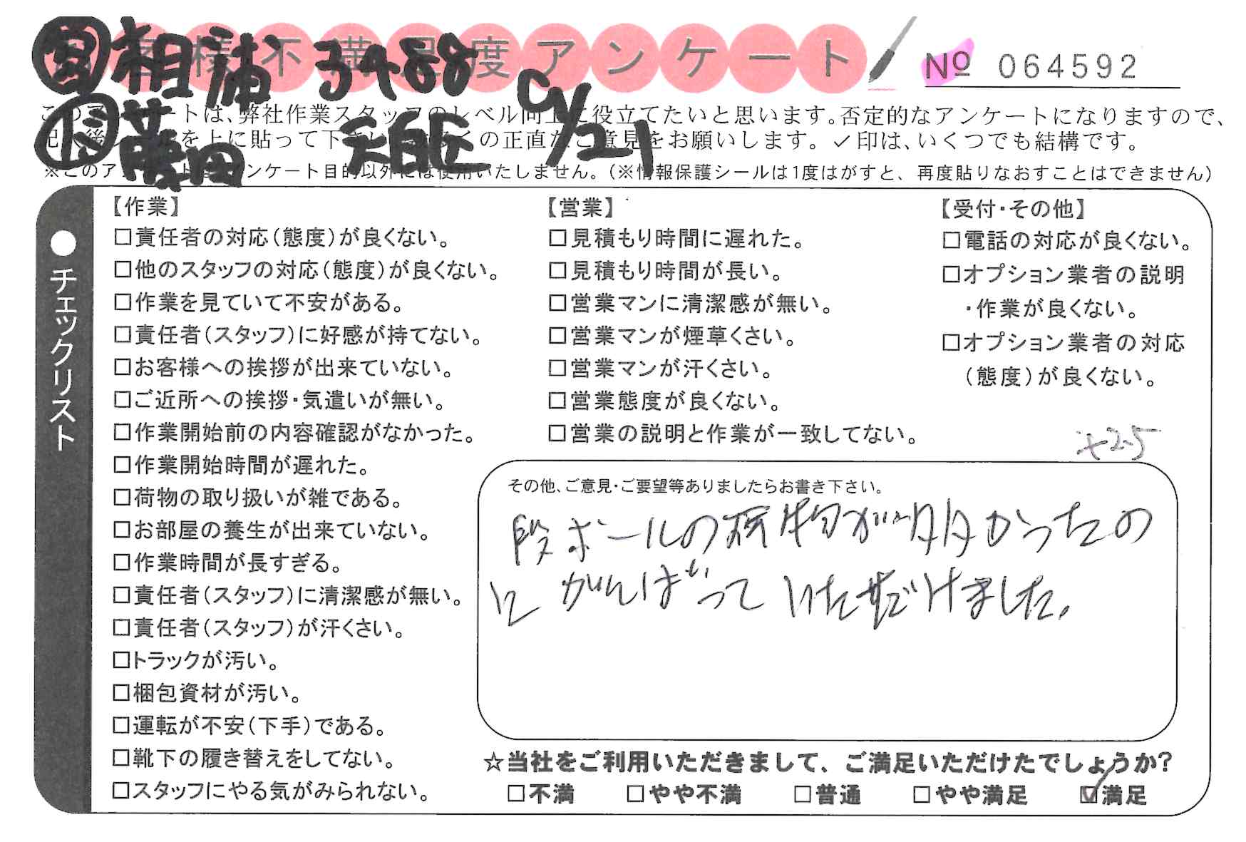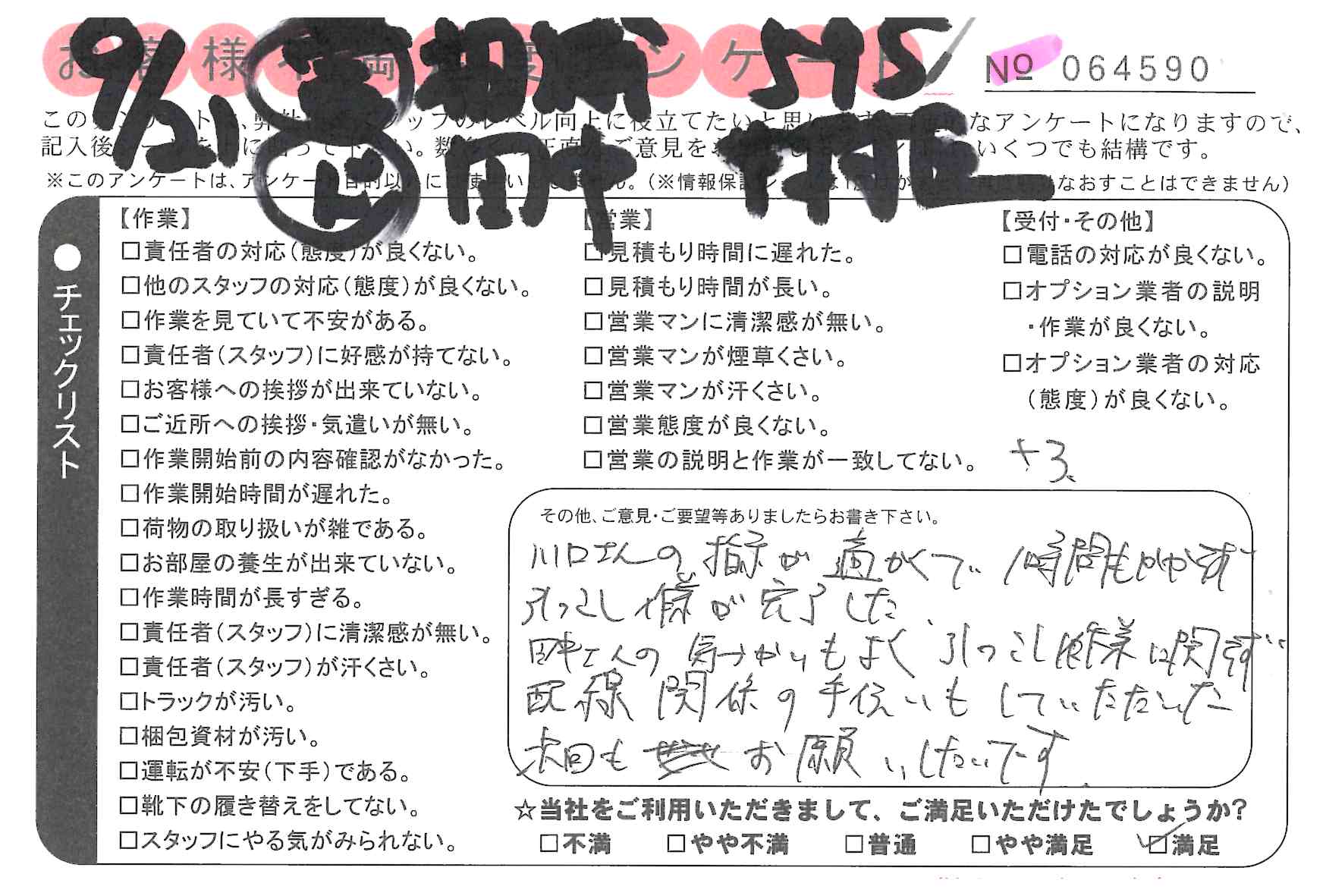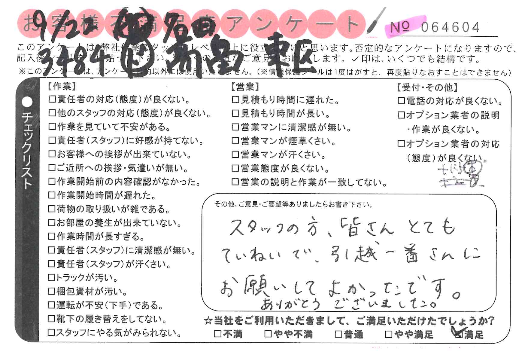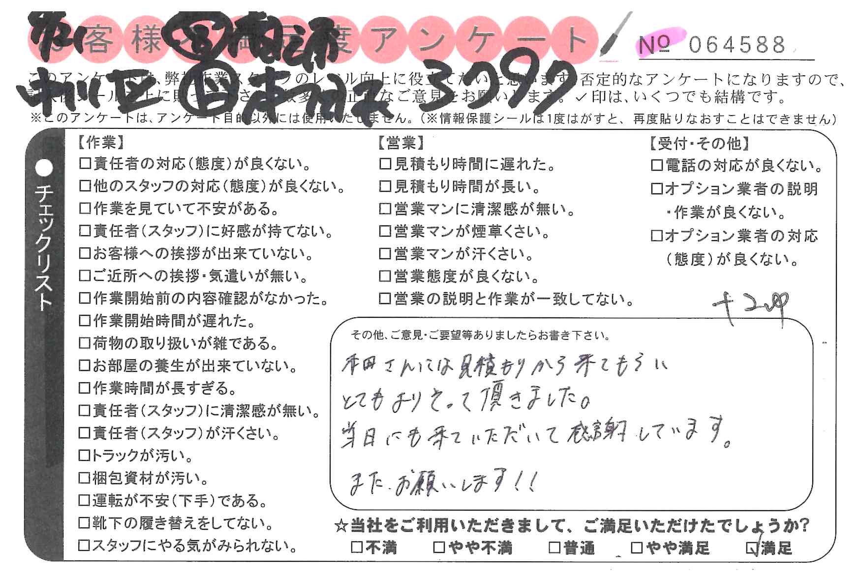 引越一番でお引越しをしていただいたお客様のうち、コメントいただいたアンケートを全て掲載しています。