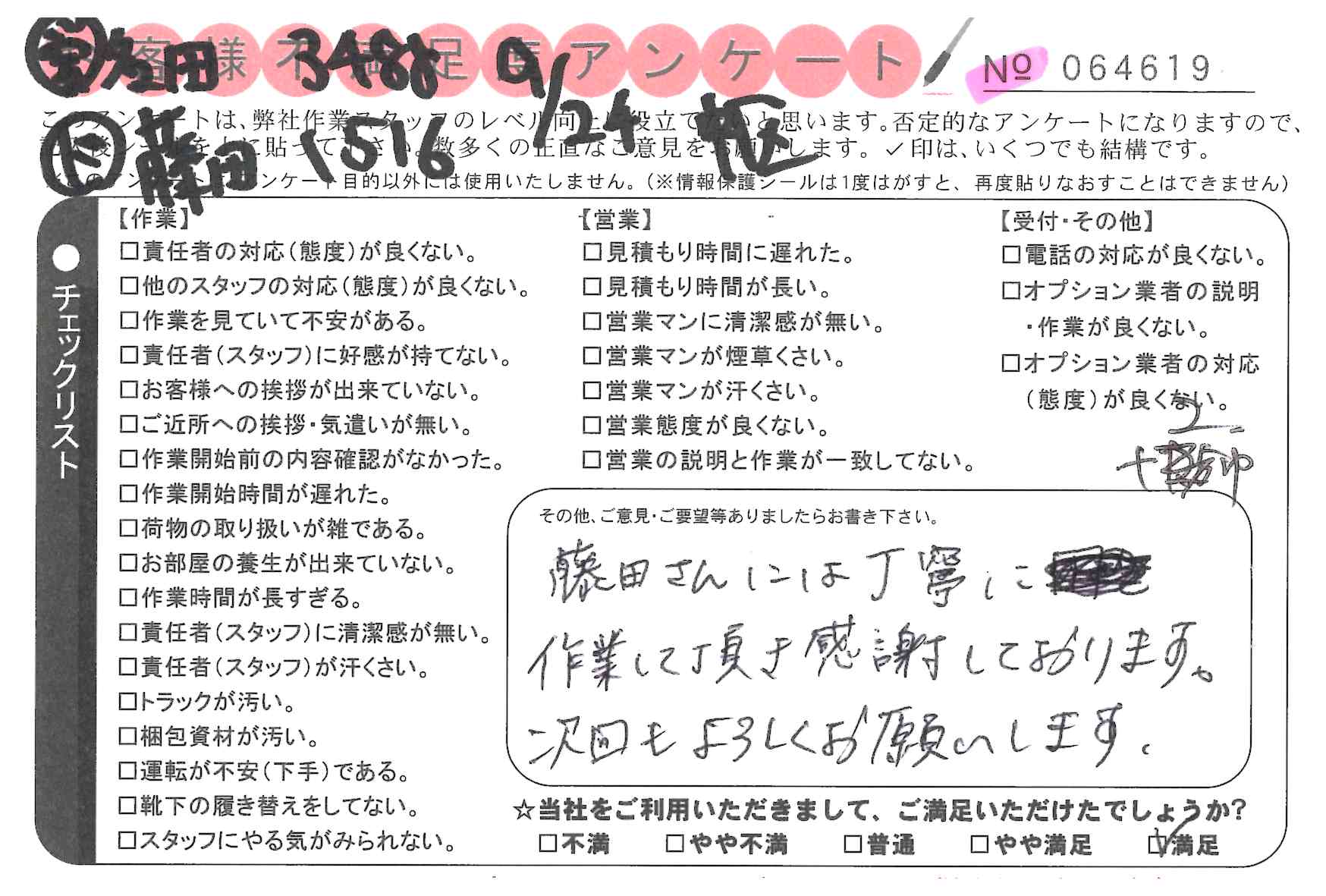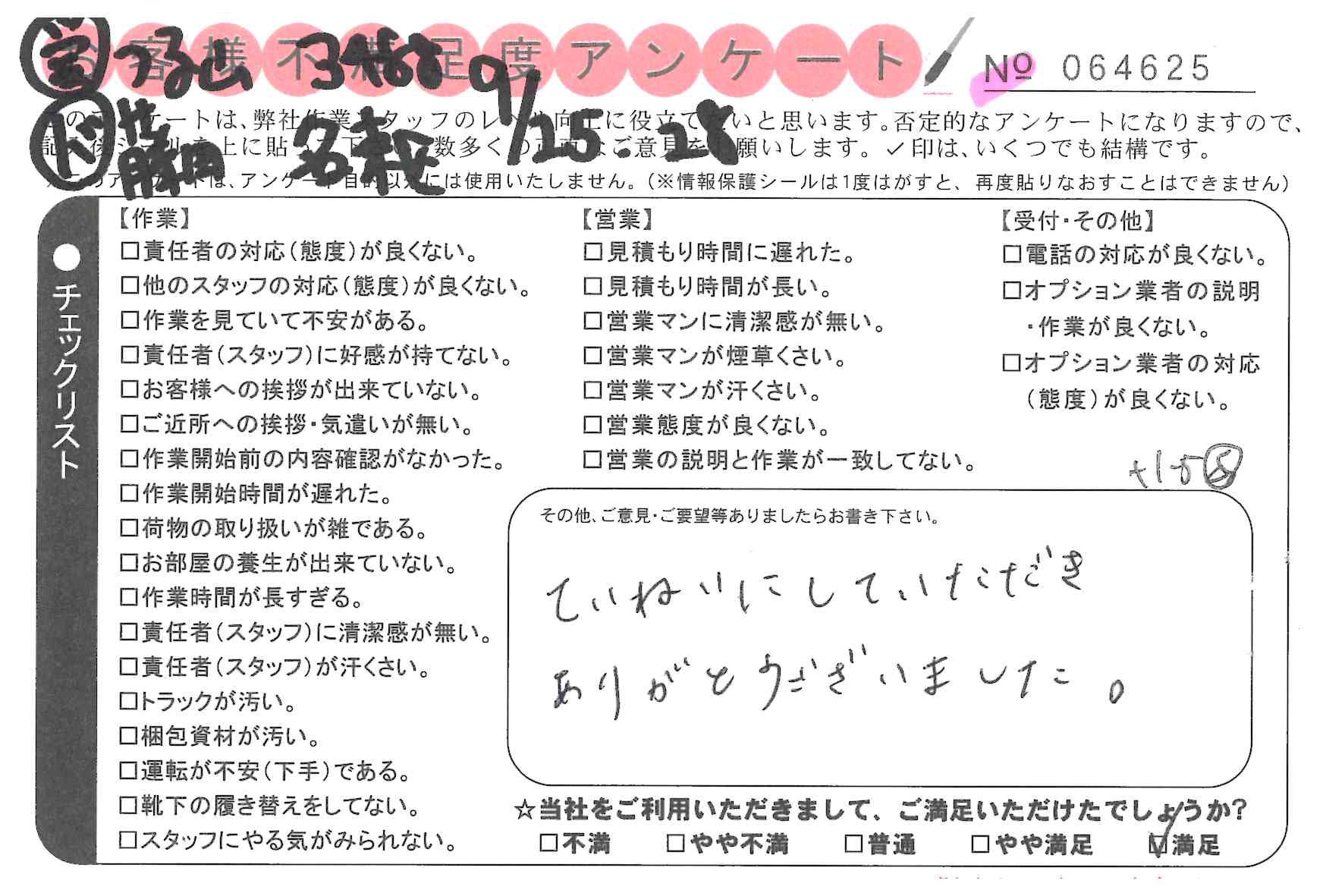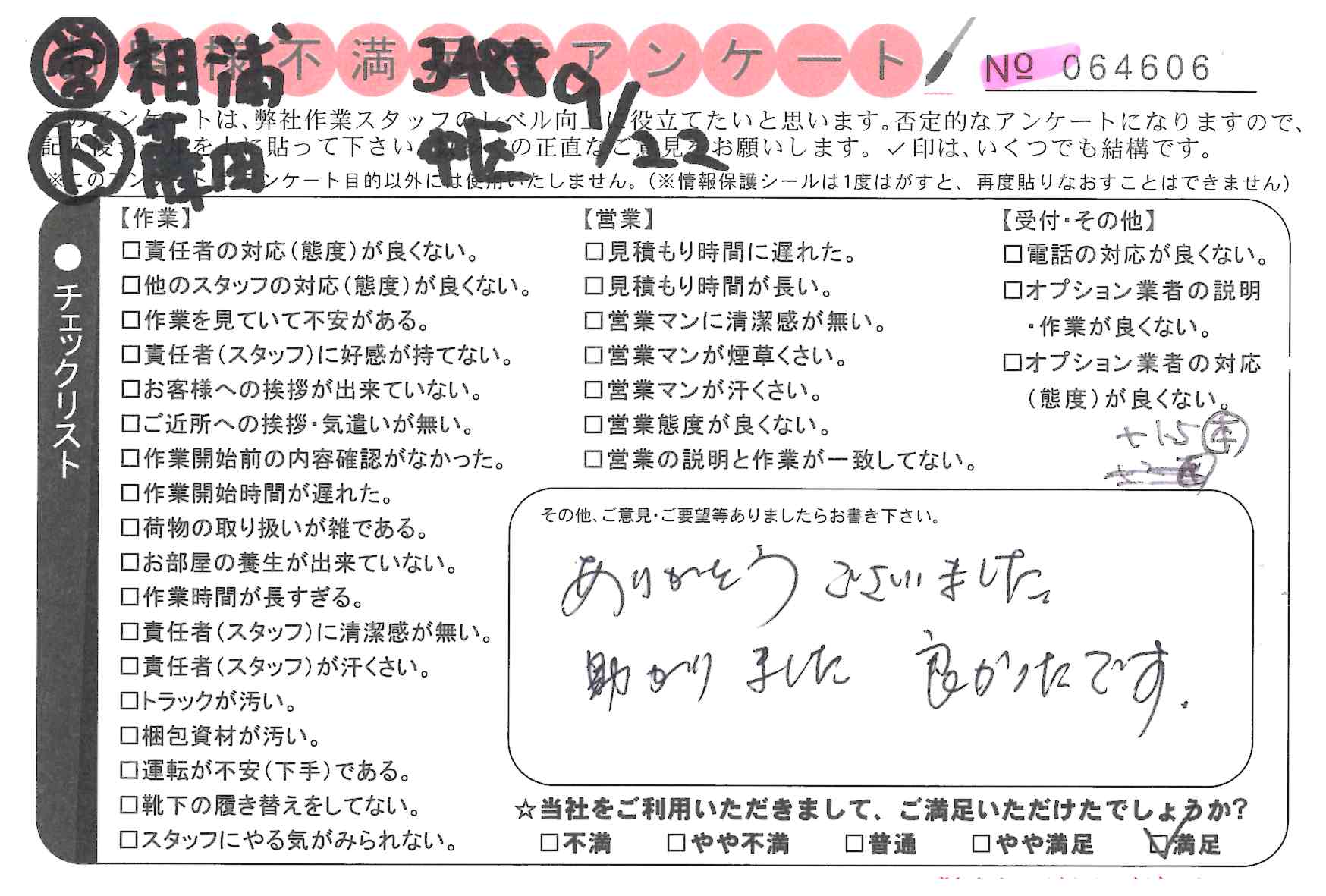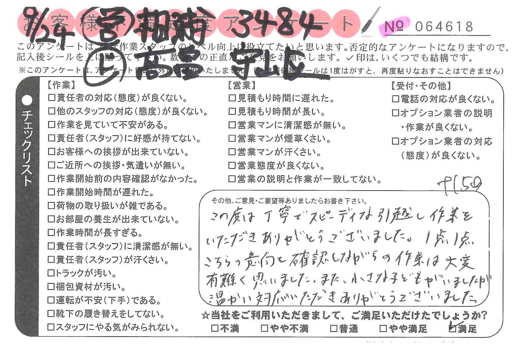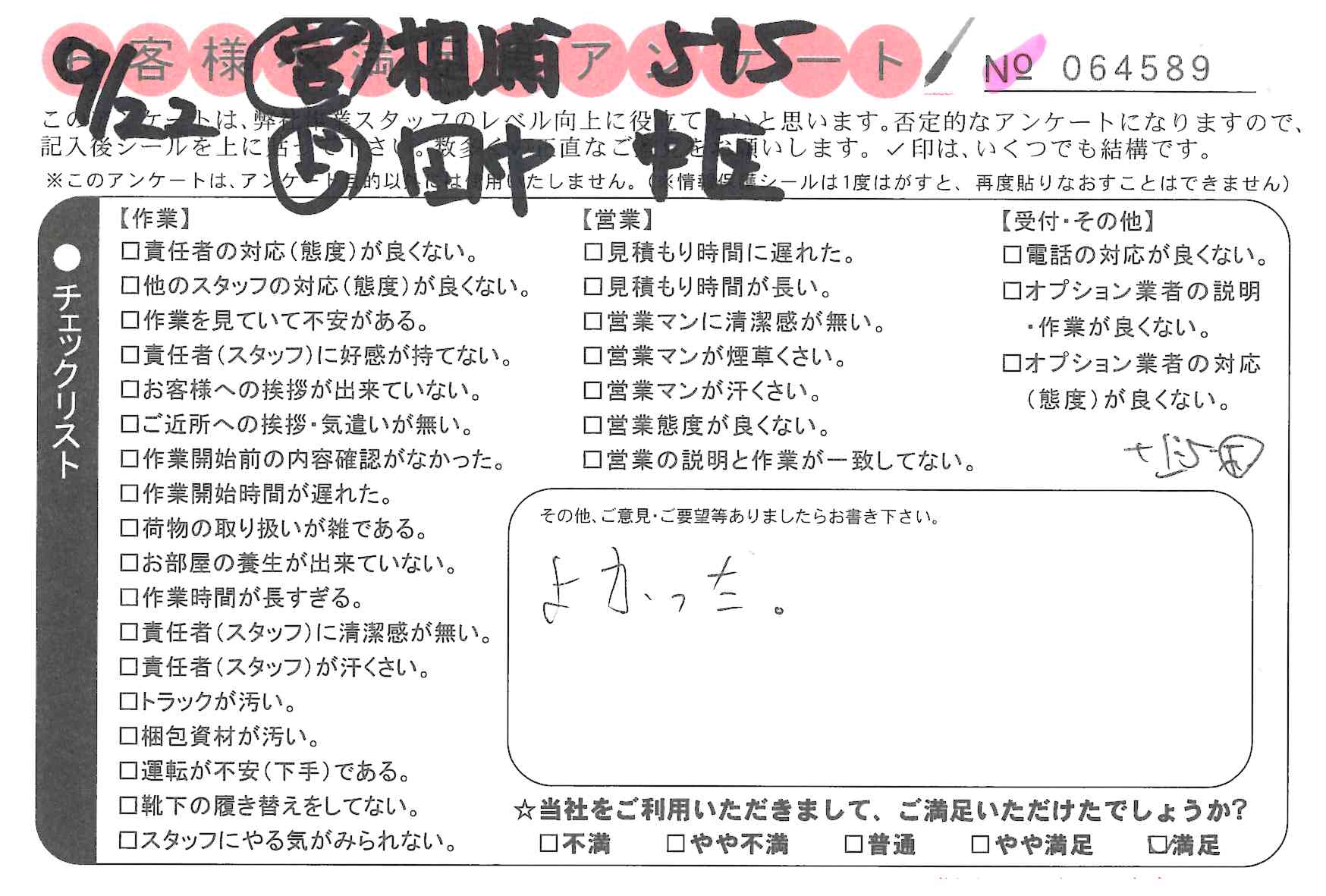 引越一番でお引越しをしていただいたお客様のうち、コメントいただいたアンケートを全て掲載しています。
