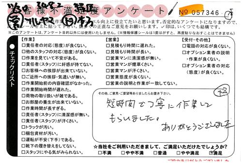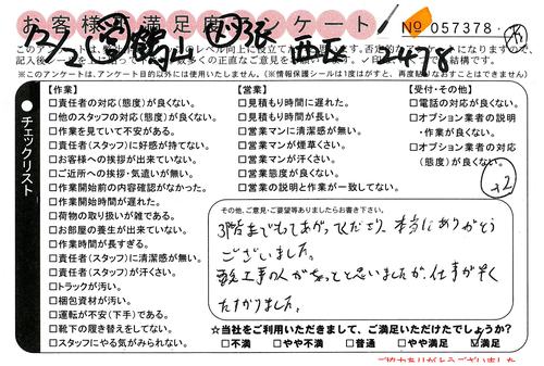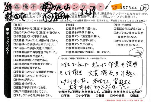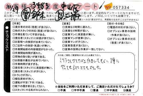 引越一番でお引越しをしていただいたお客様のうち、コメントいただいたアンケートを全て掲載しています。