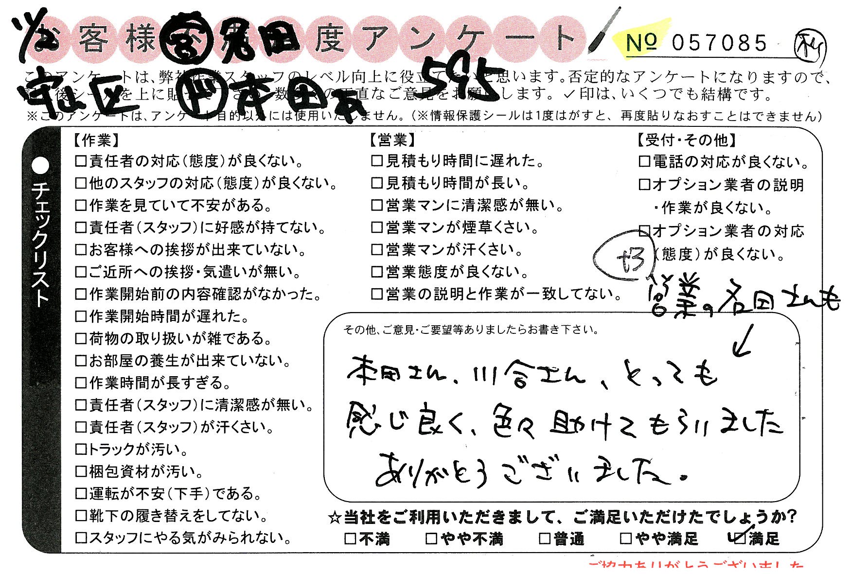 引越一番でお引越しをしていただいたお客様のうち、コメントいただいたアンケートを全て掲載しています。