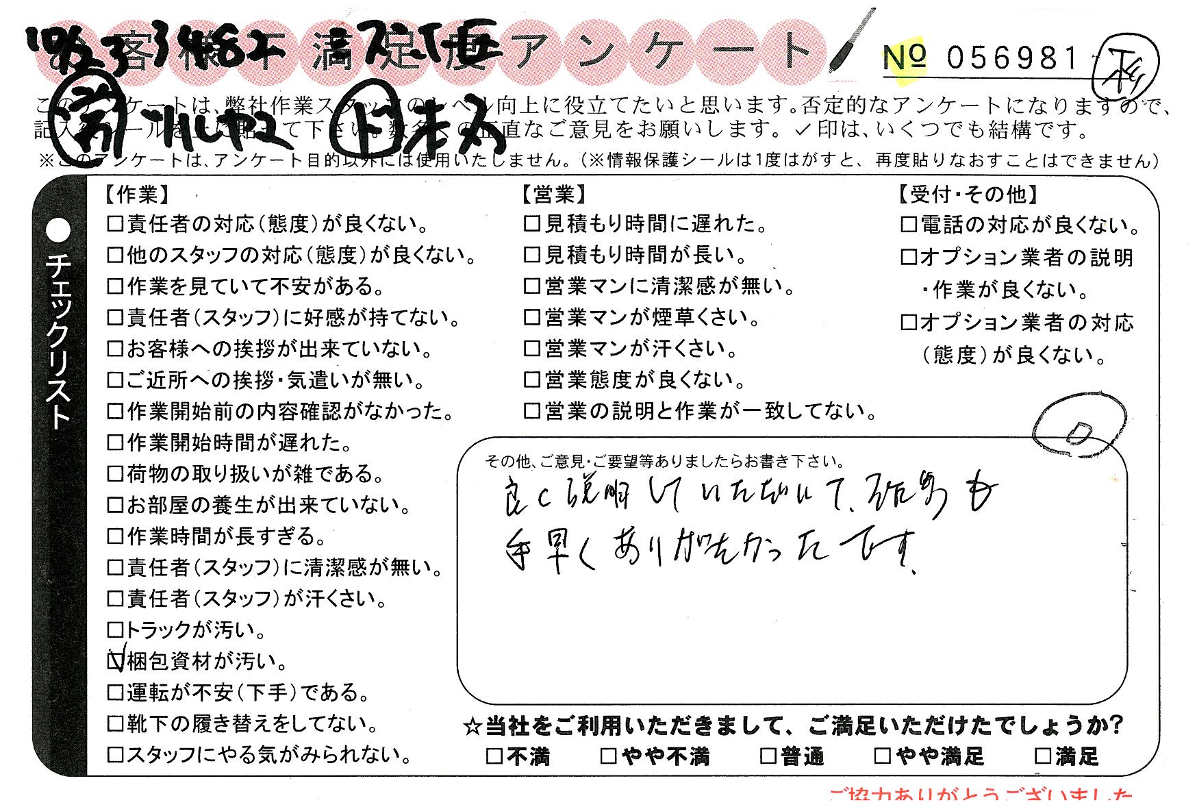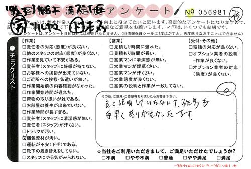 引越一番でお引越しをしていただいたお客様のうち、コメントいただいたアンケートを全て掲載しています。