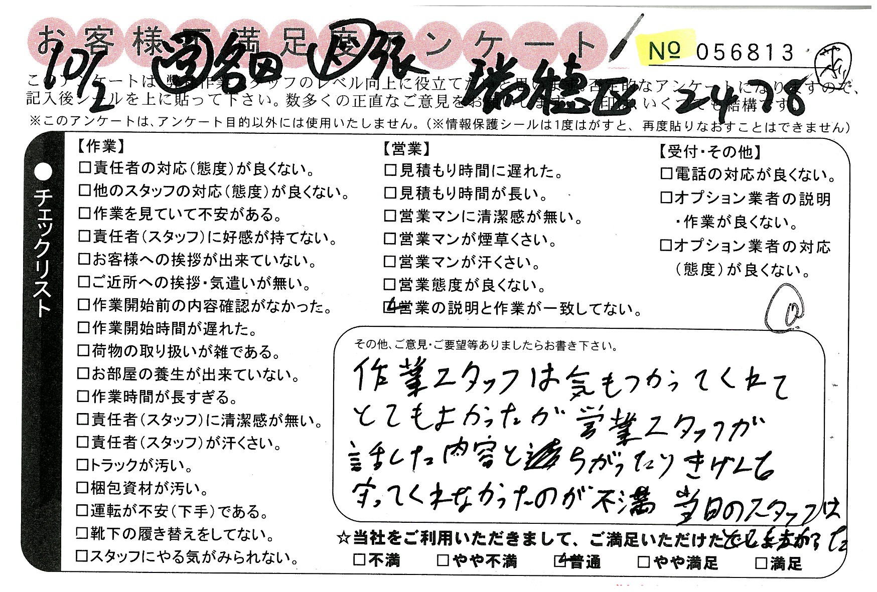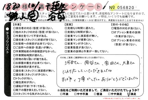 引越一番でお引越しをしていただいたお客様のうち、コメントいただいたアンケートを全て掲載しています。