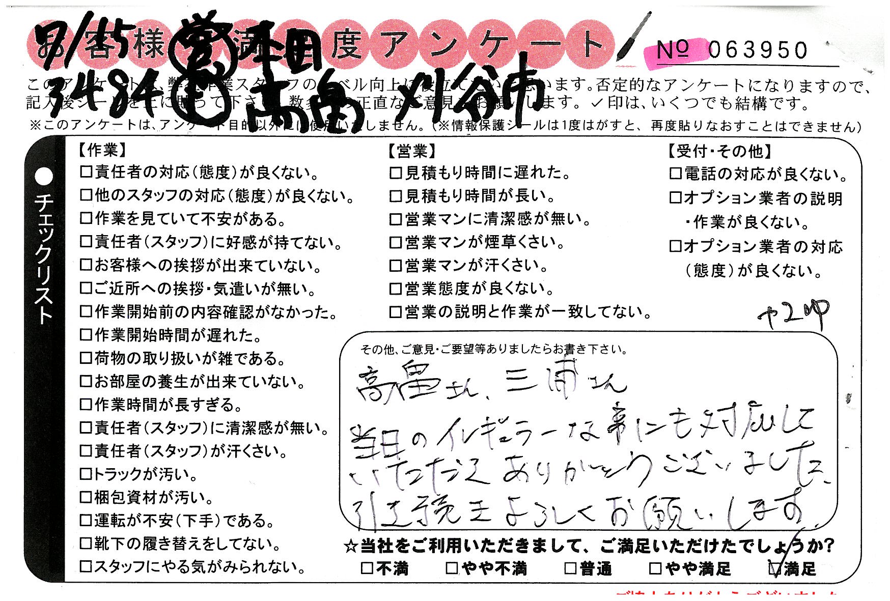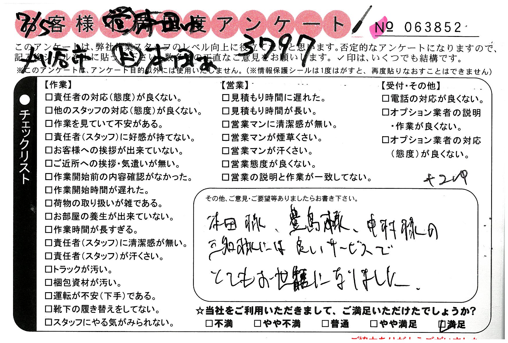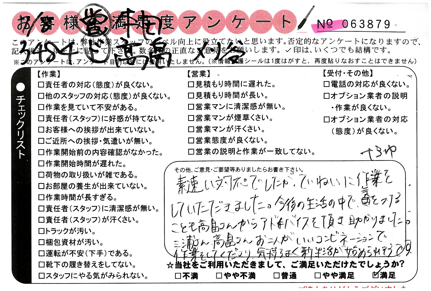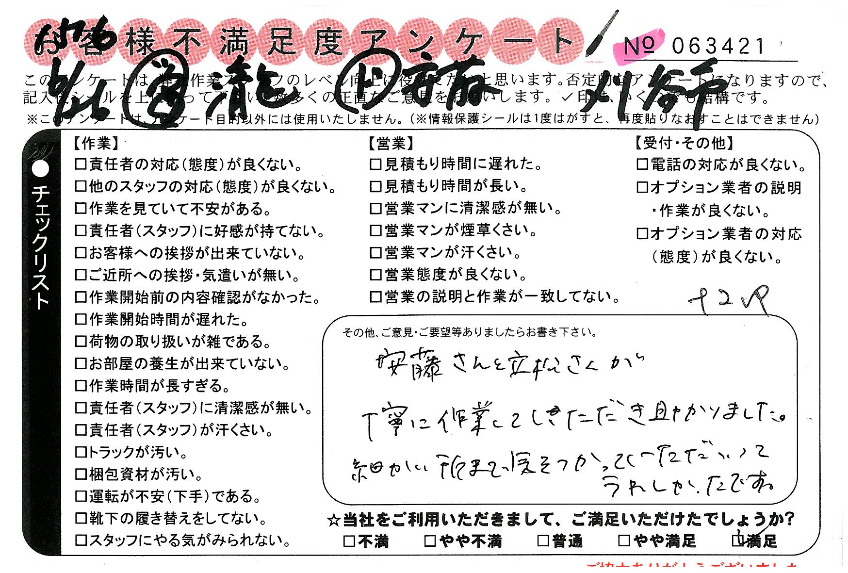 引越一番でお引越しをしていただいたお客様のうち、コメントいただいたアンケートを全て掲載しています。