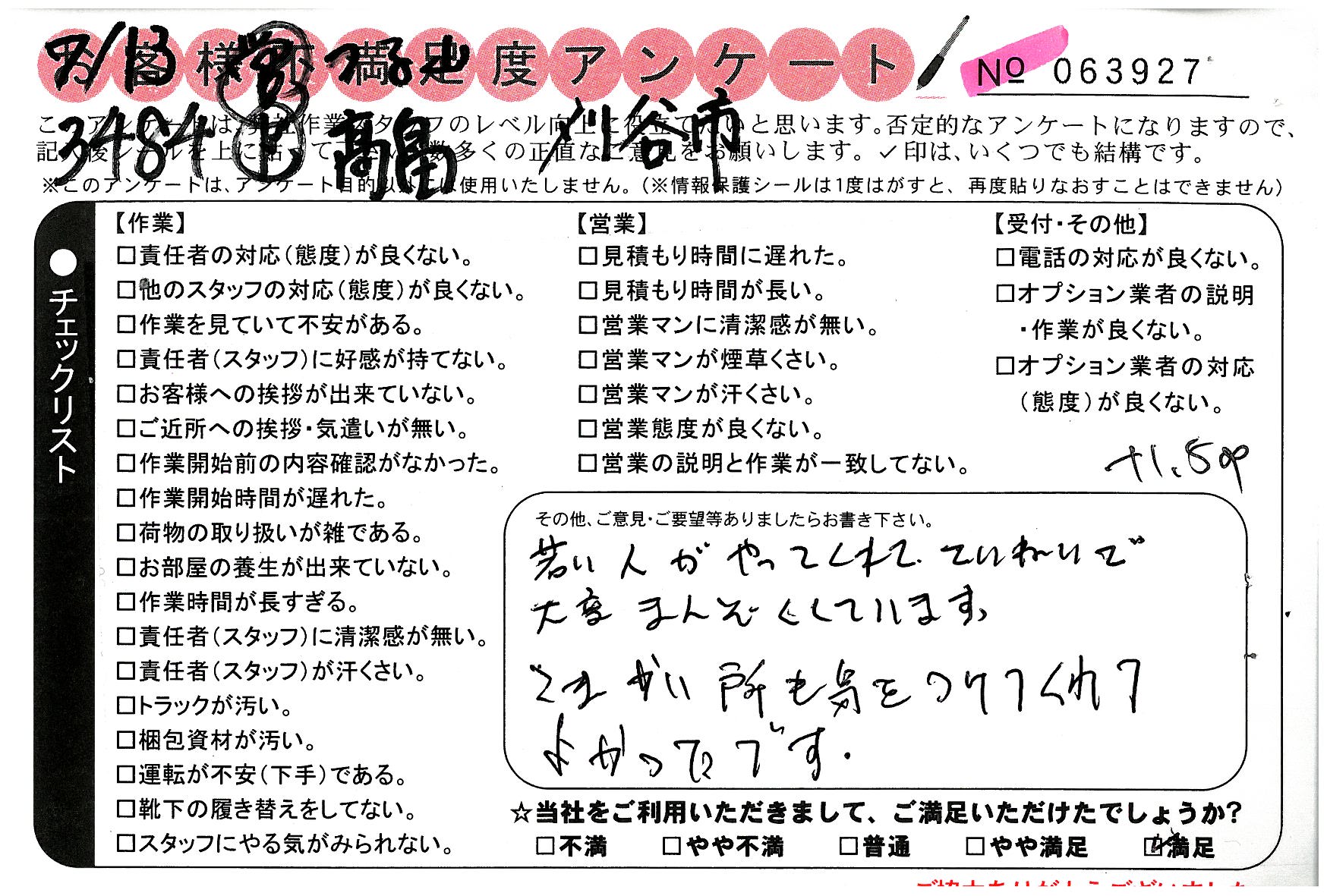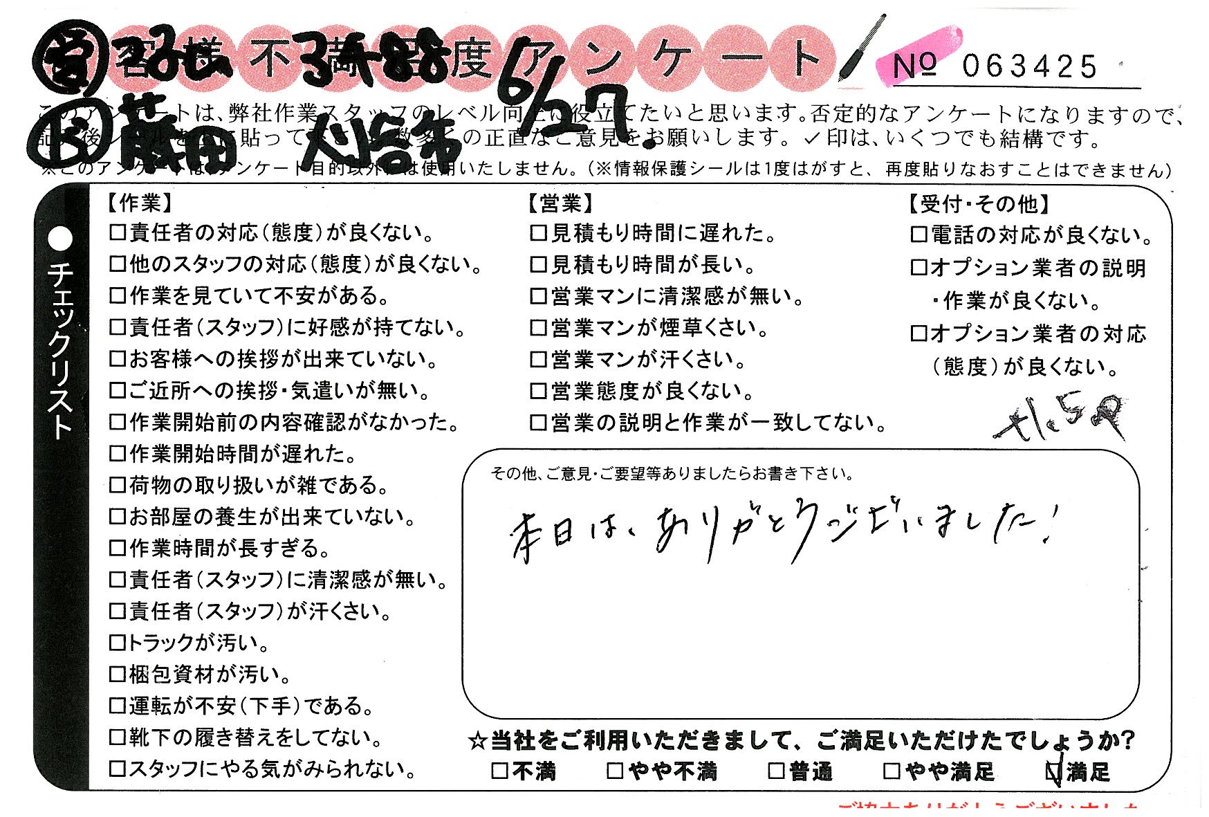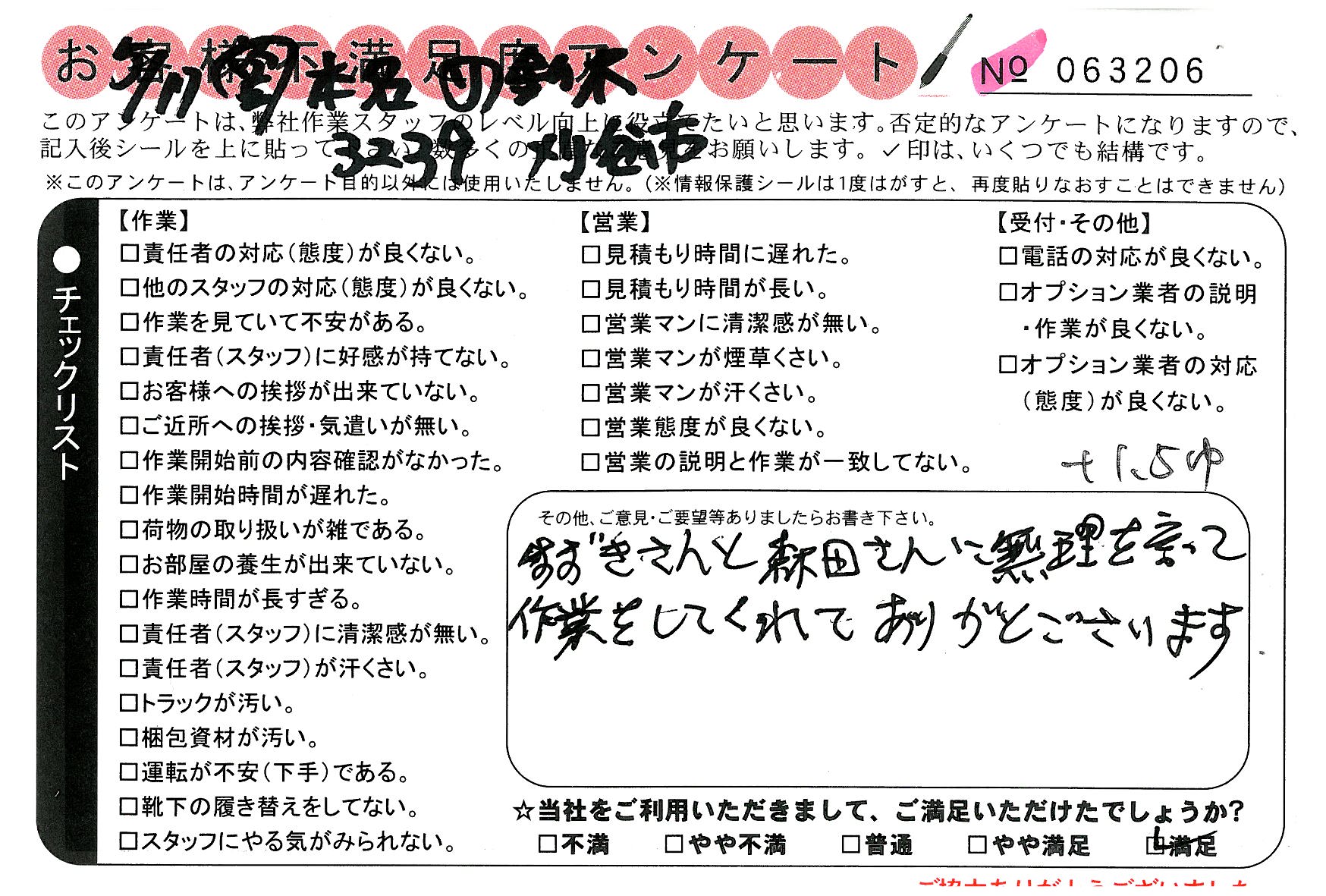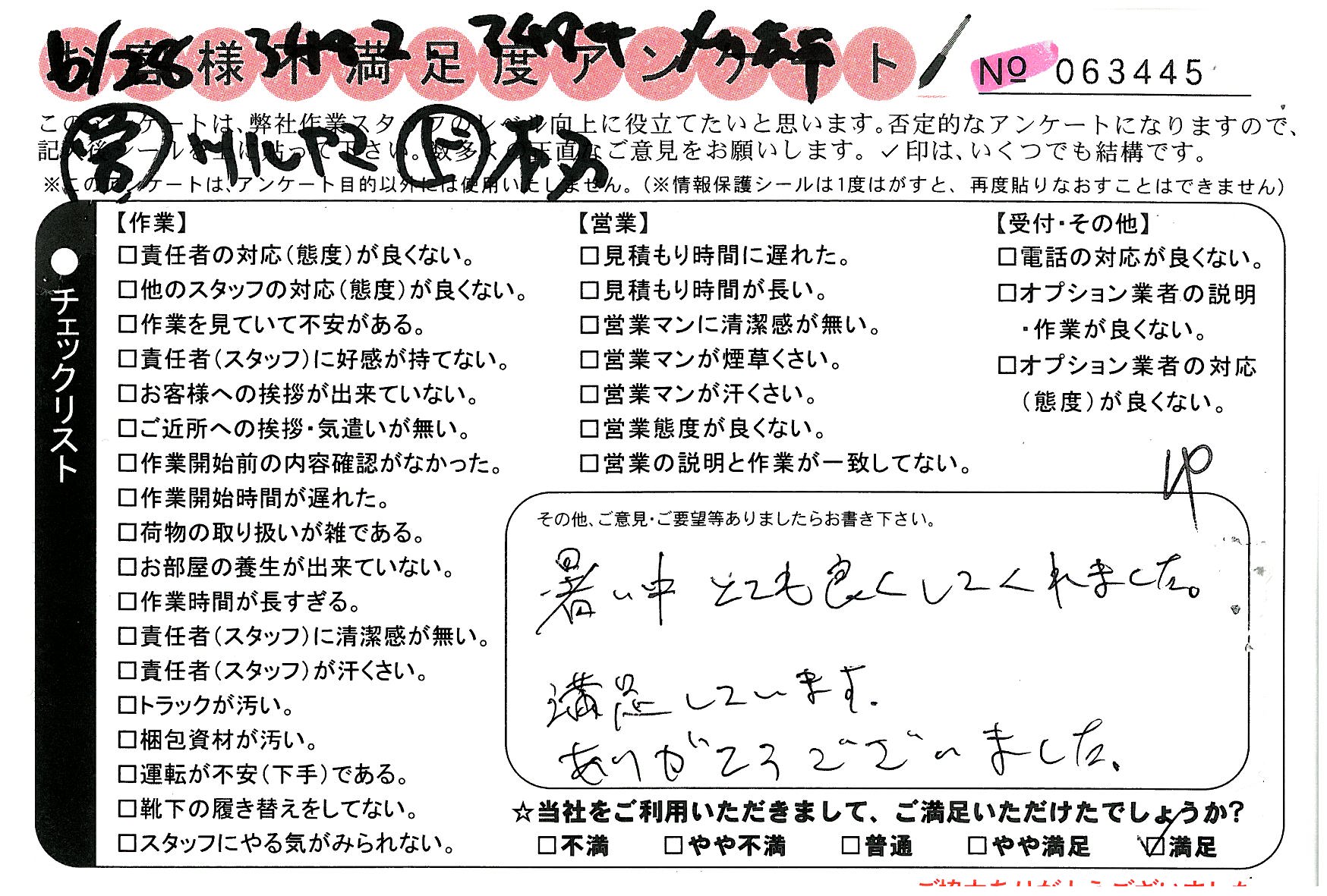 引越一番でお引越しをしていただいたお客様のうち、コメントいただいたアンケートを全て掲載しています。