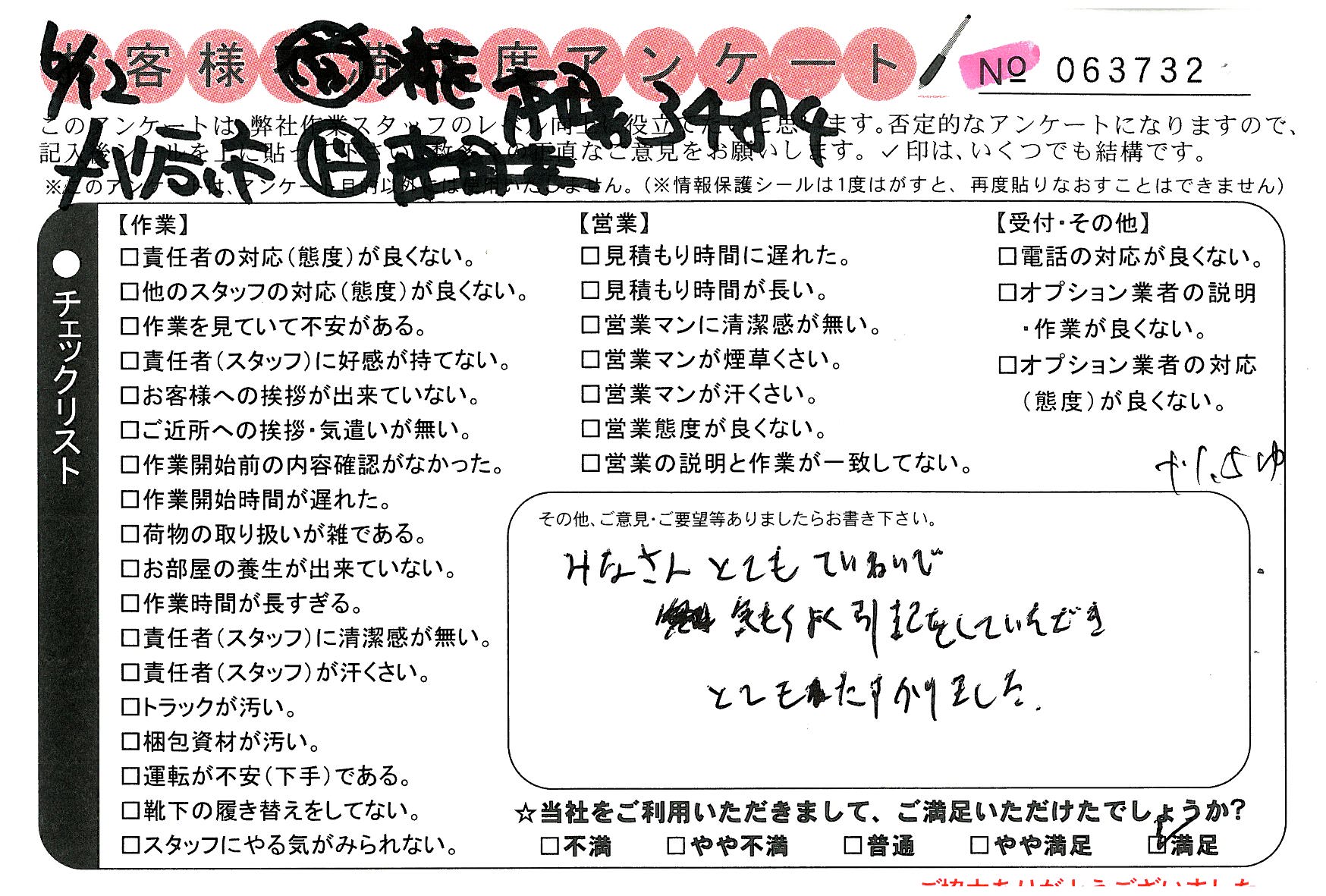 引越一番でお引越しをしていただいたお客様のうち、コメントいただいたアンケートを全て掲載しています。