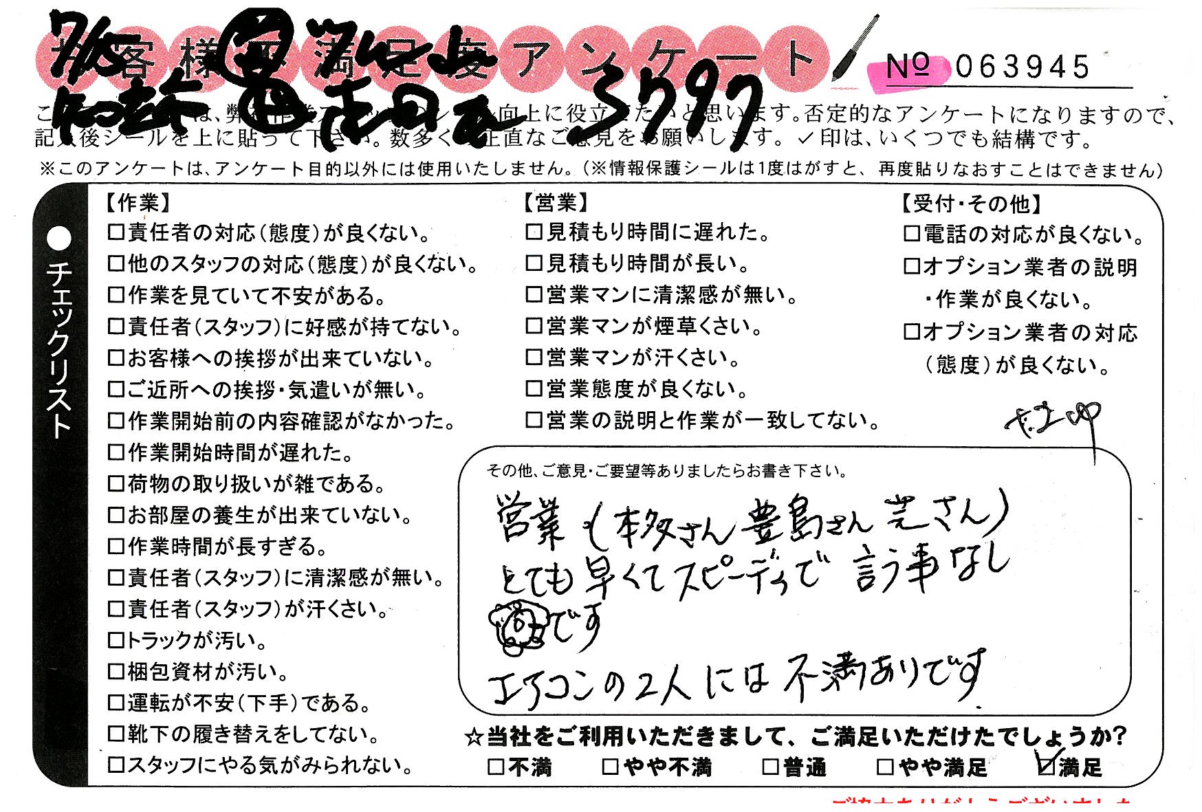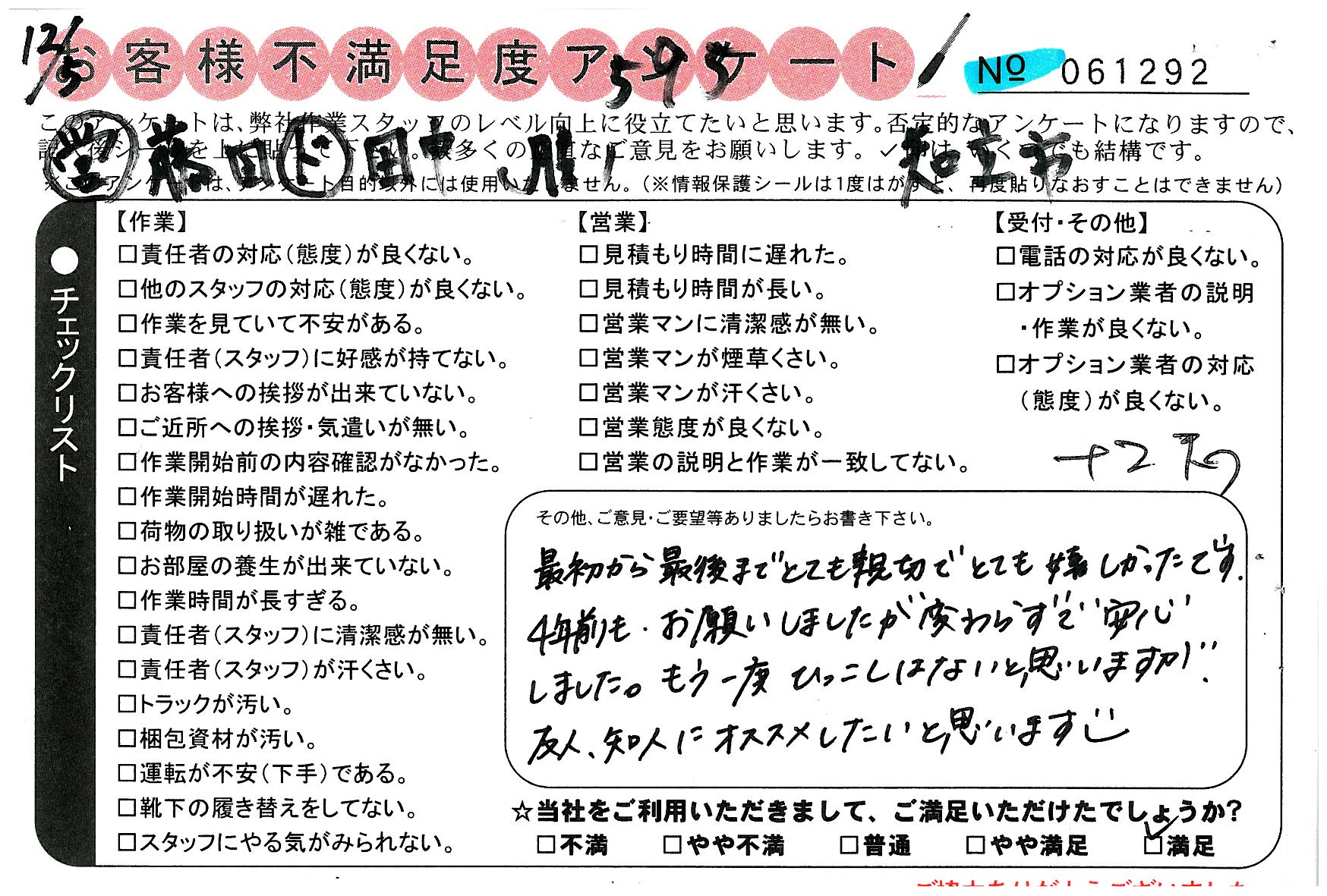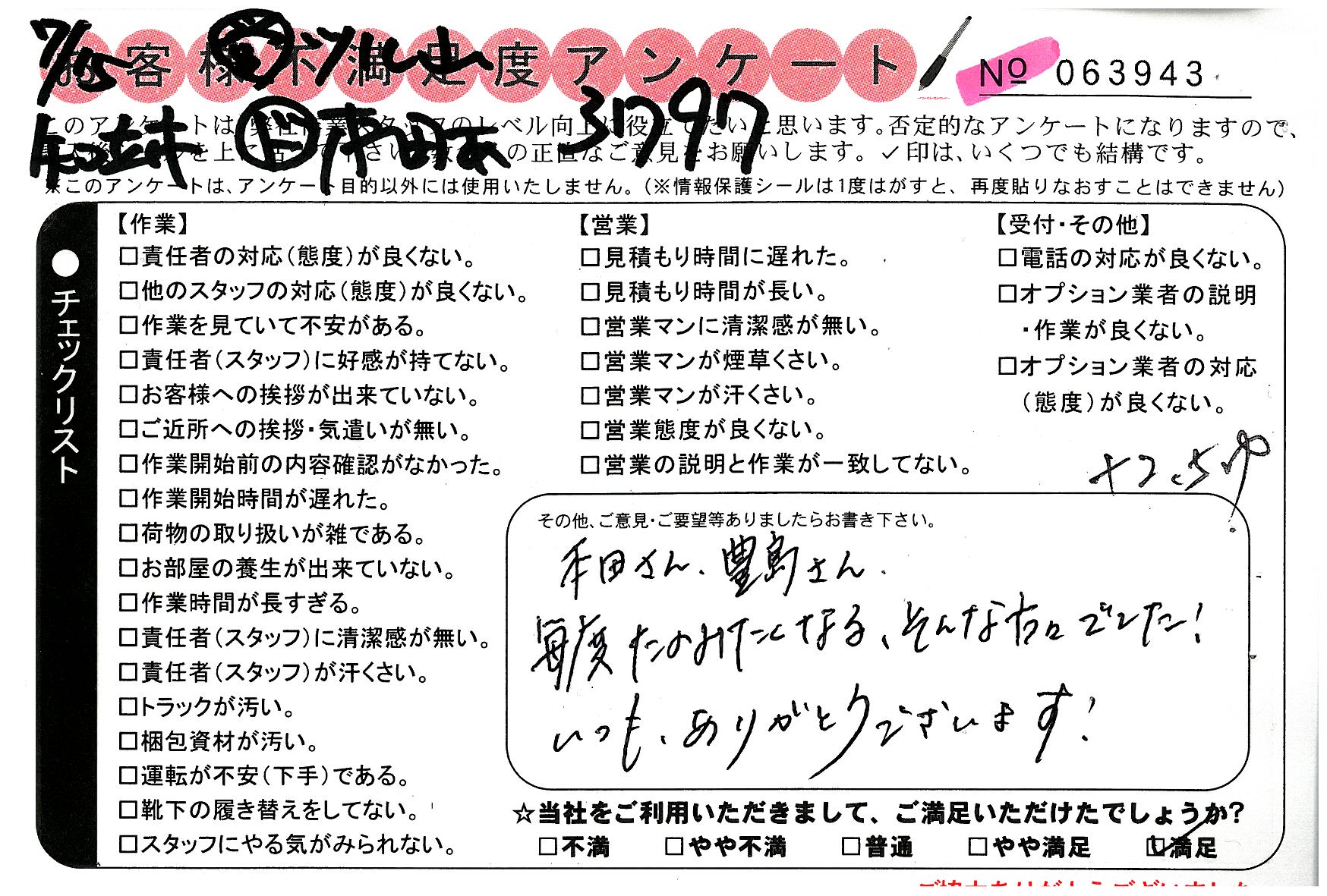 引越一番でお引越しをしていただいたお客様のうち、コメントいただいたアンケートを全て掲載しています。