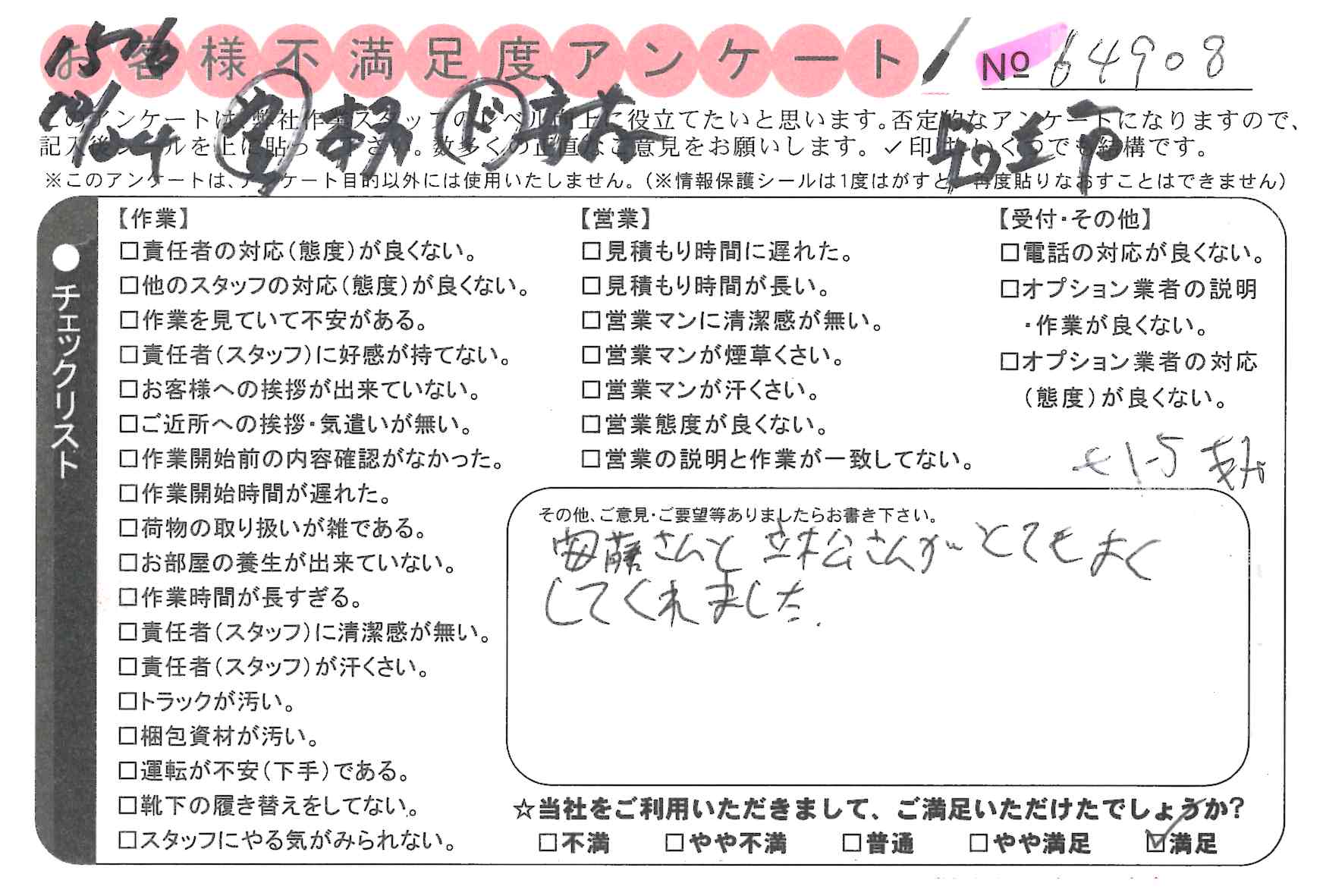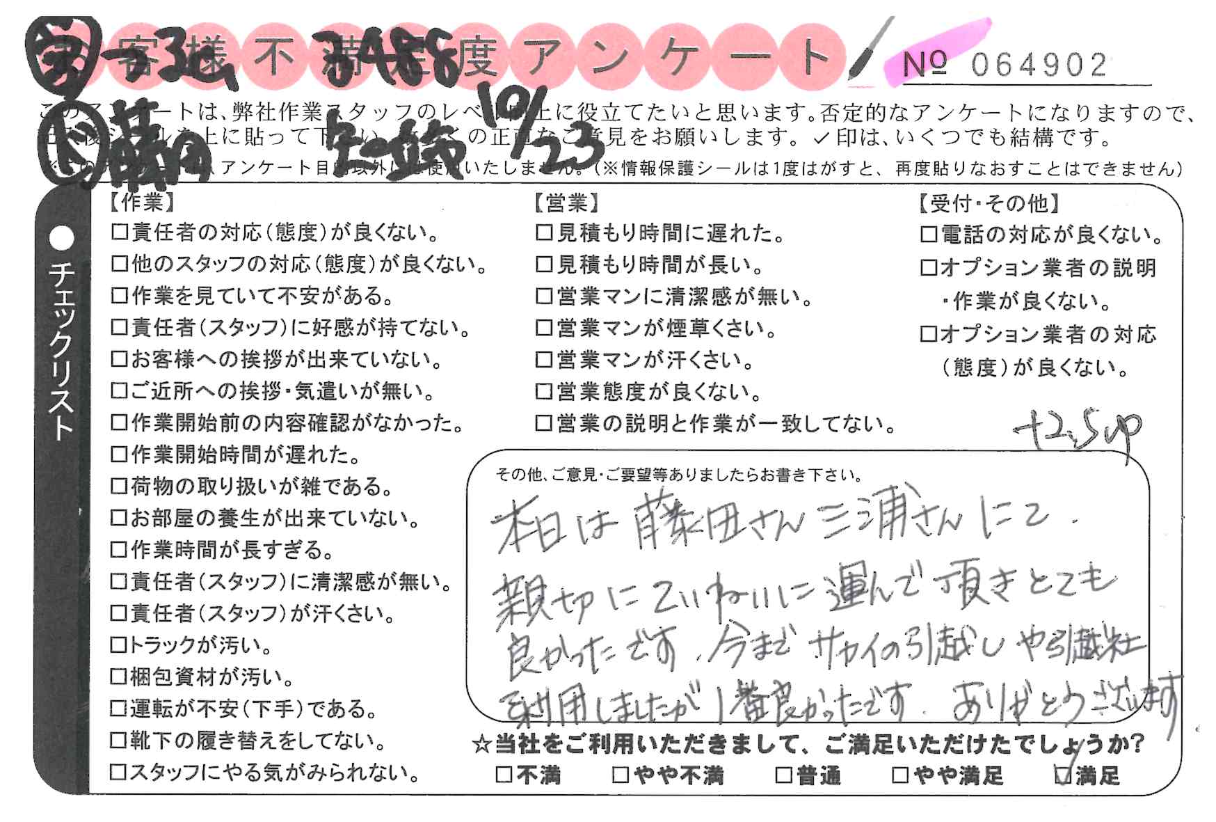引越一番でお引越しをしていただいたお客様のうち、コメントいただいたアンケートを全て掲載しています。