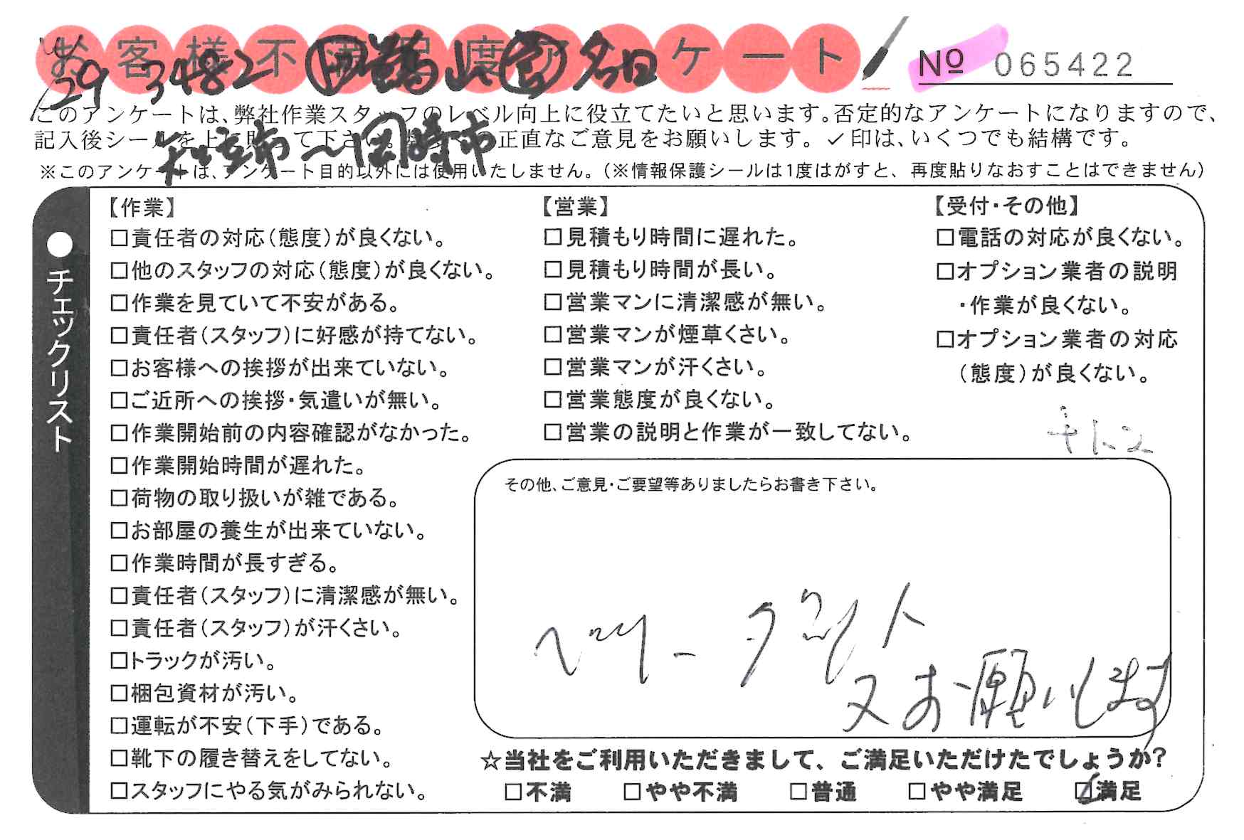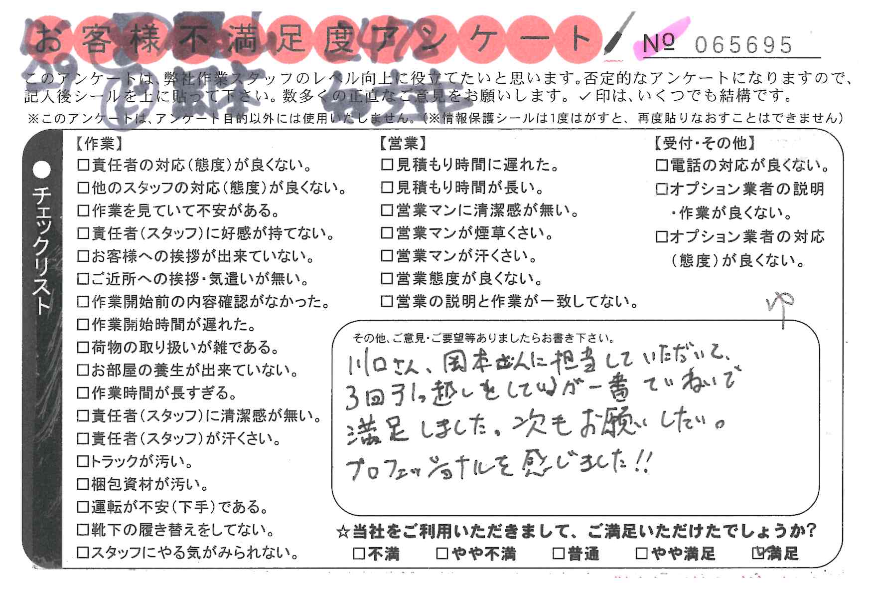 3回引っ越しをしているが一番ていねいで満足しました。