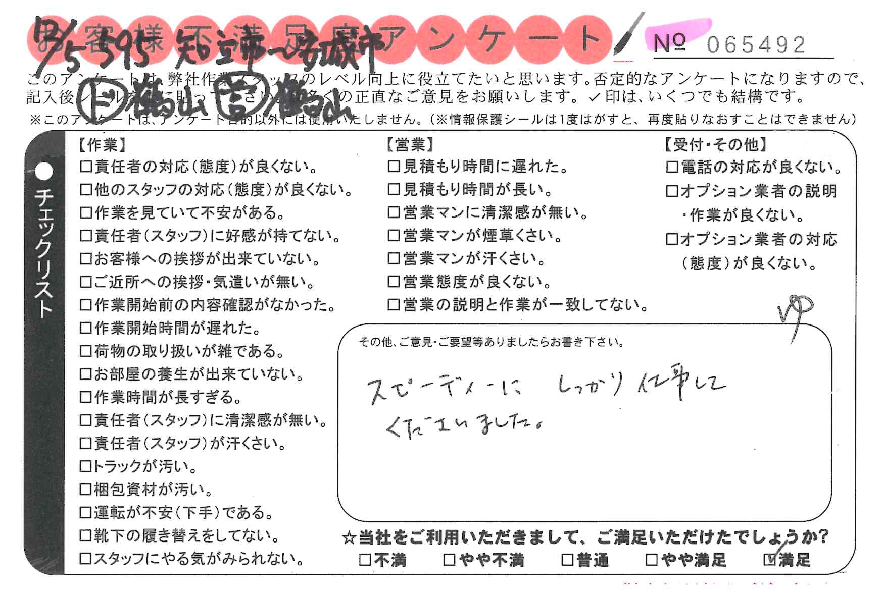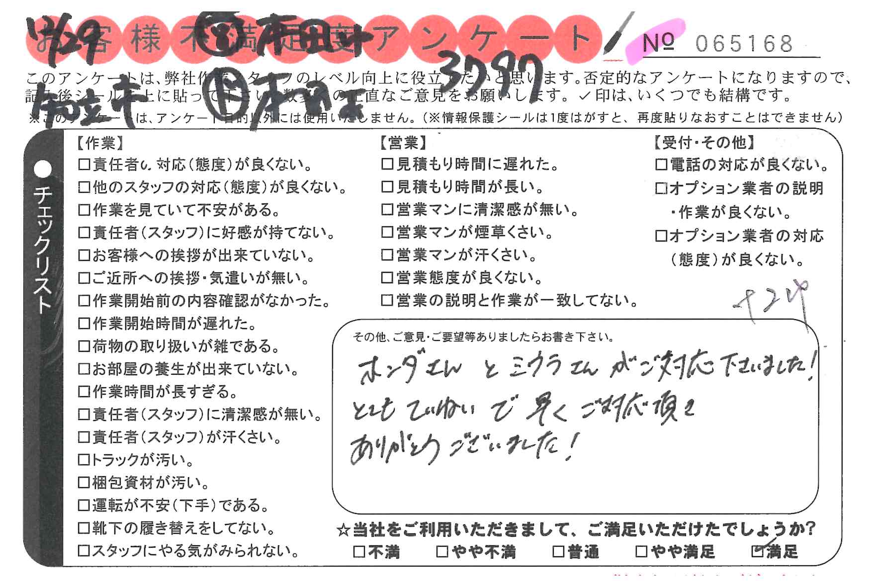 鈴木さん 対応が良かった