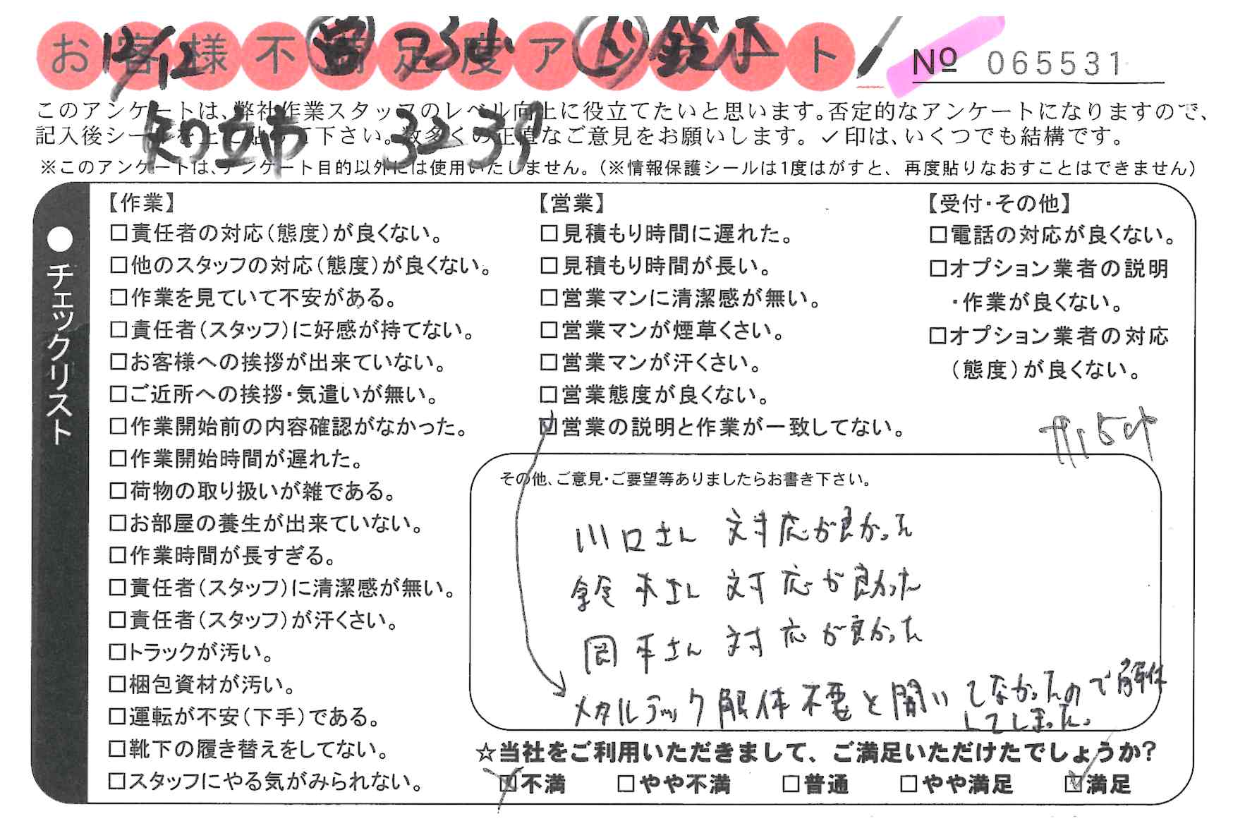 * 川口さん 対応が良かった