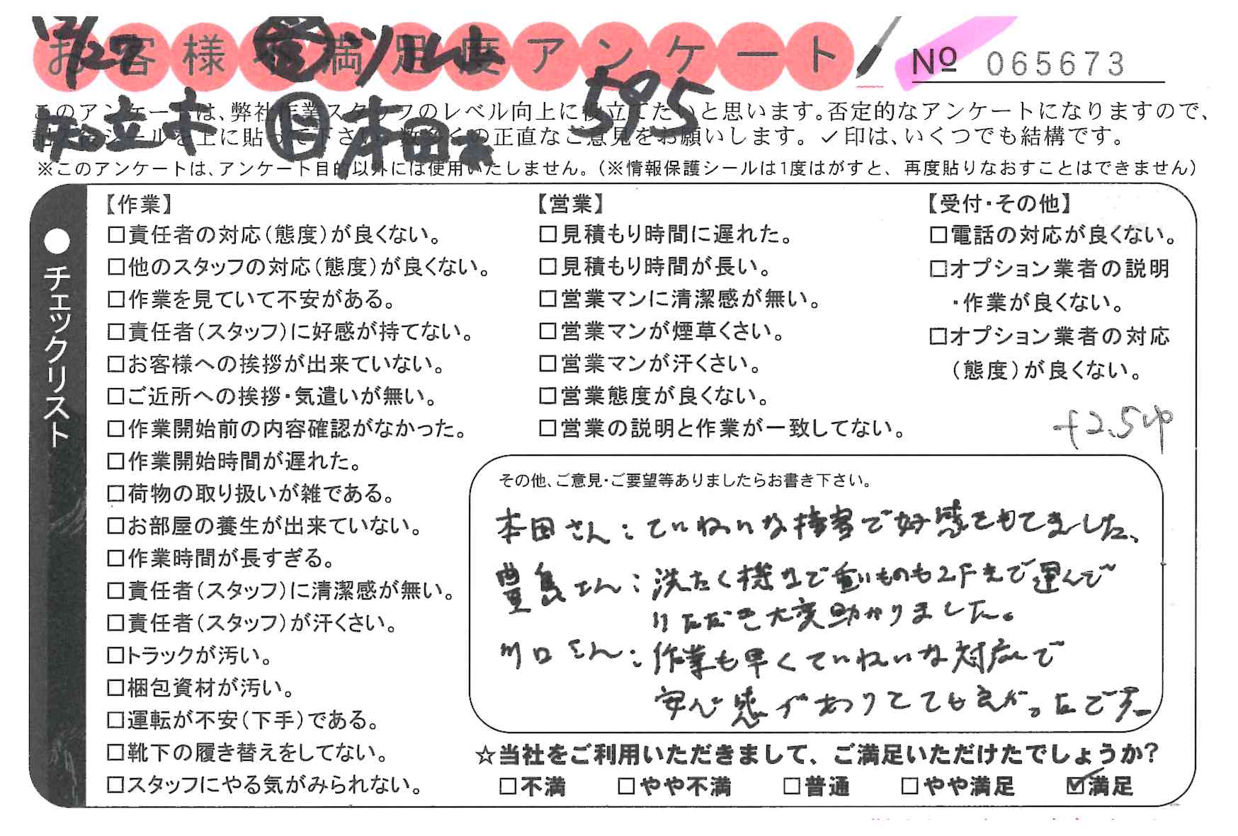 * 本田さん:ていねいな接客で好感をもてました。