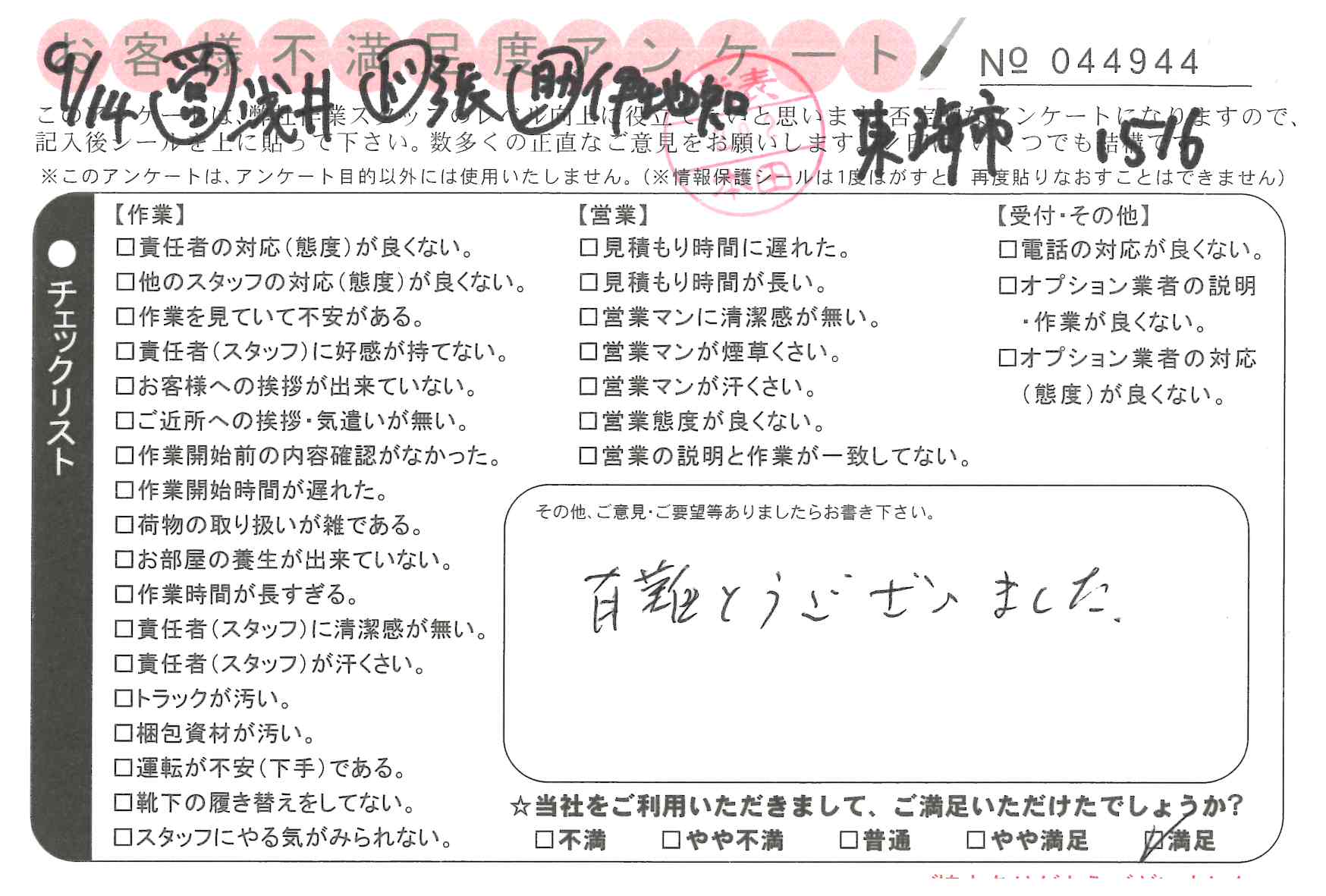 不満足度アンケートを行っている引越一番では、不評なアンケートも、好評なアンケートも全て掲載しています。